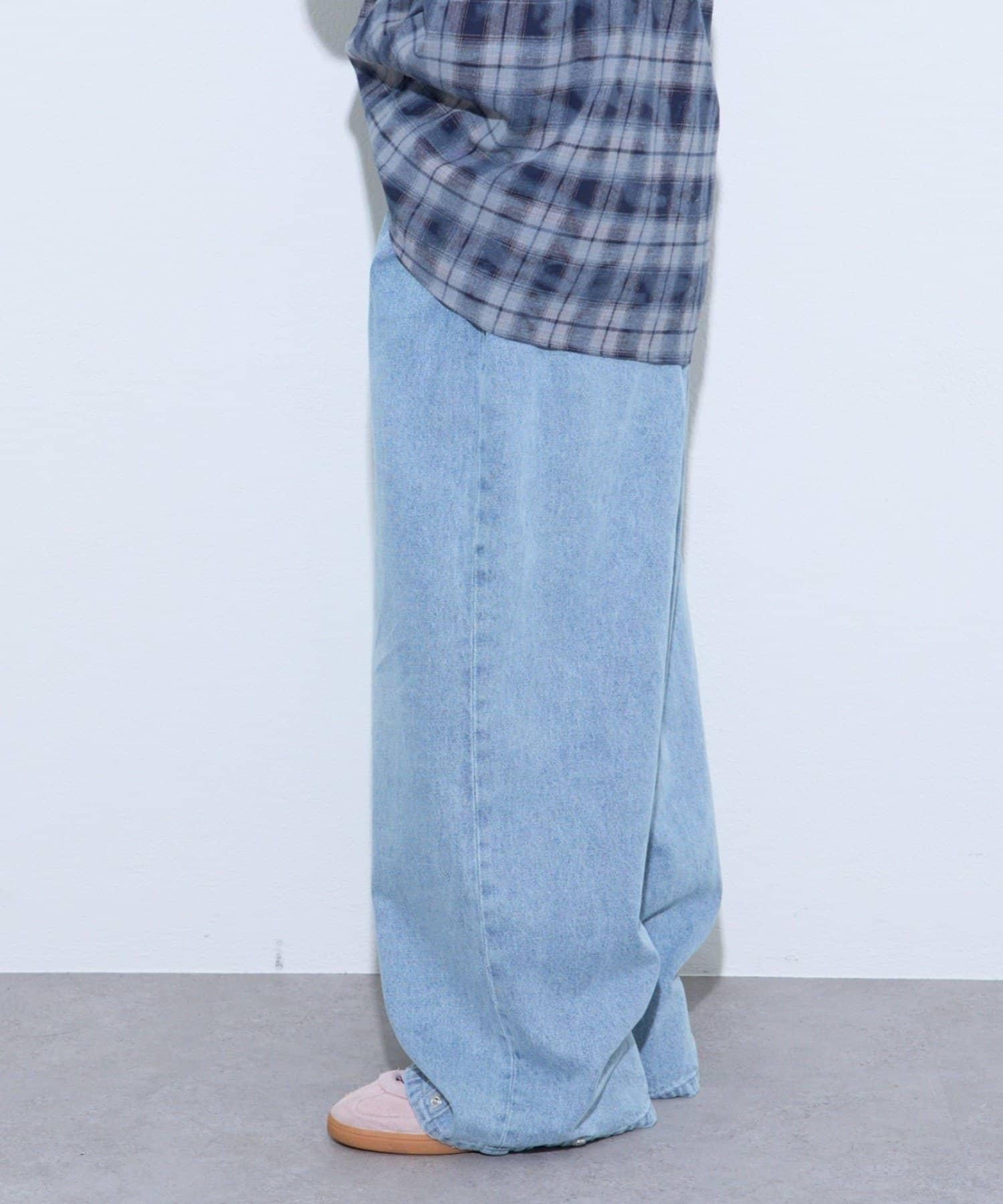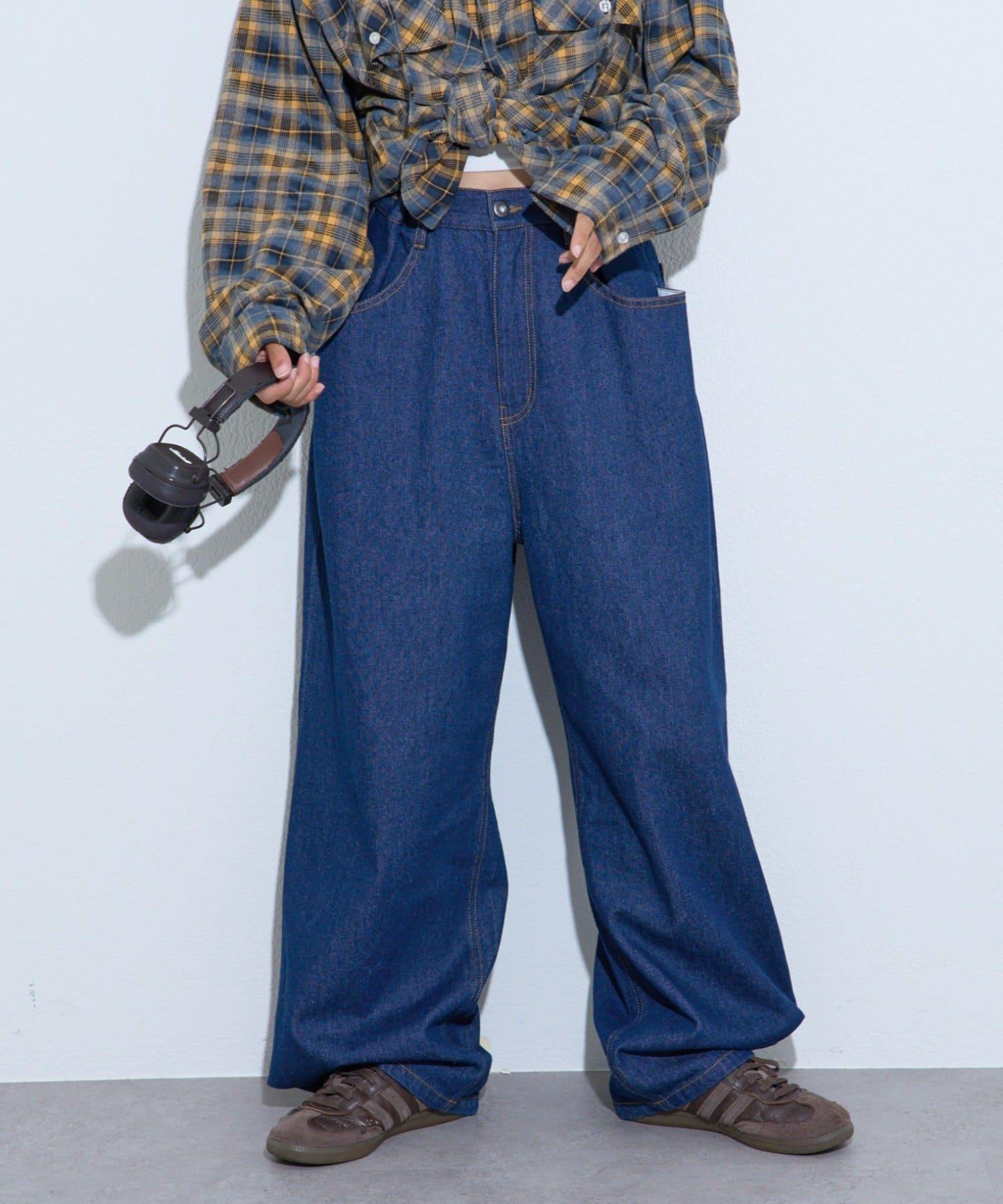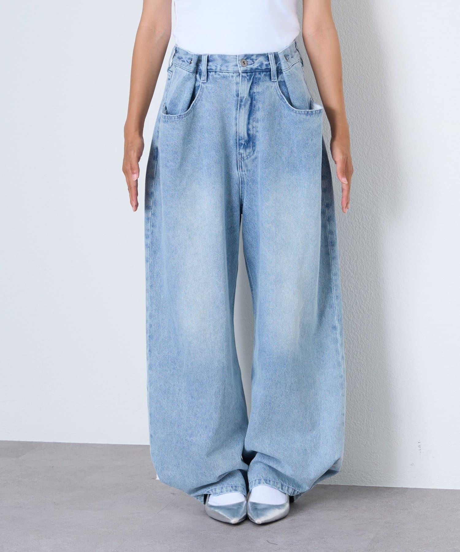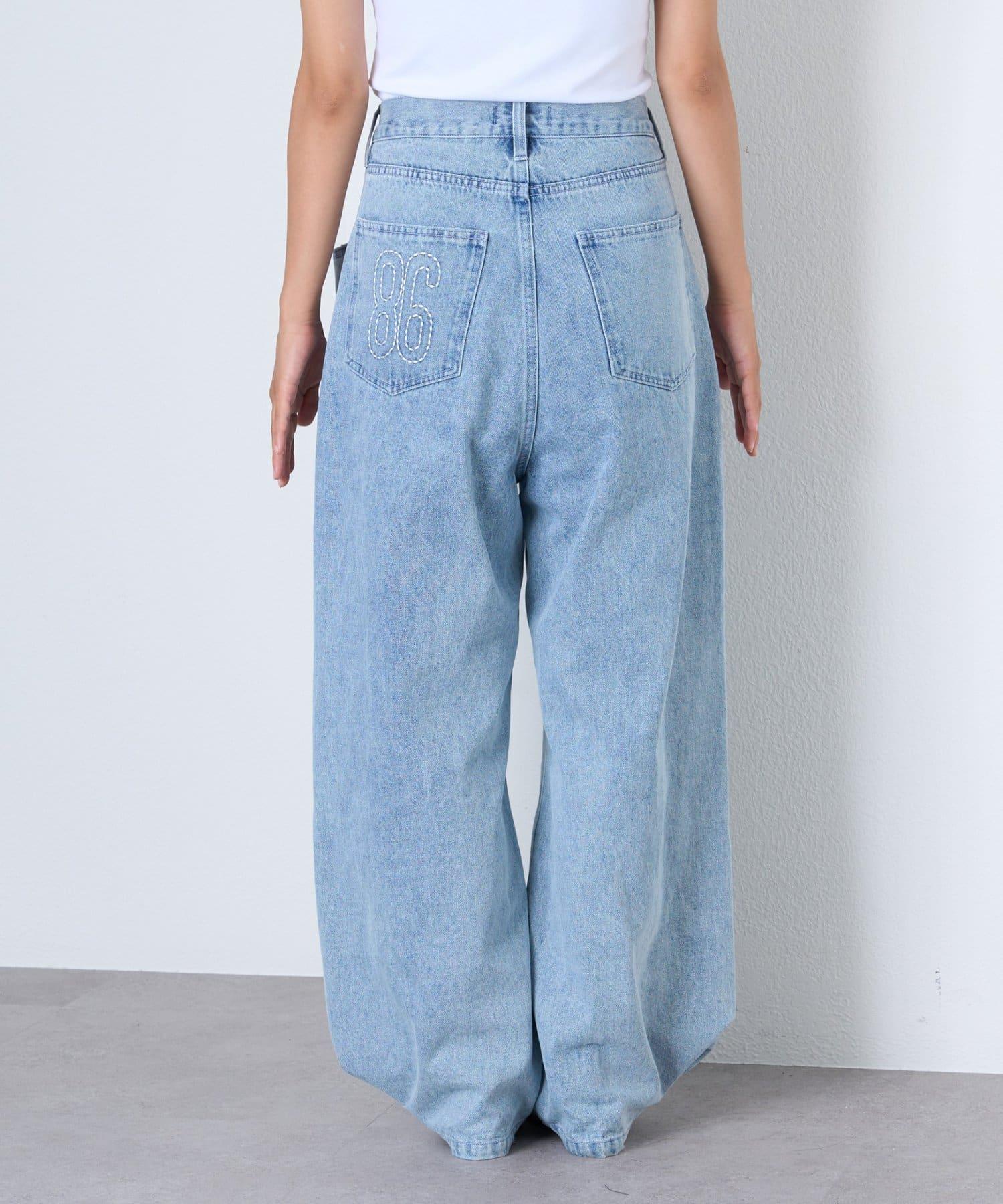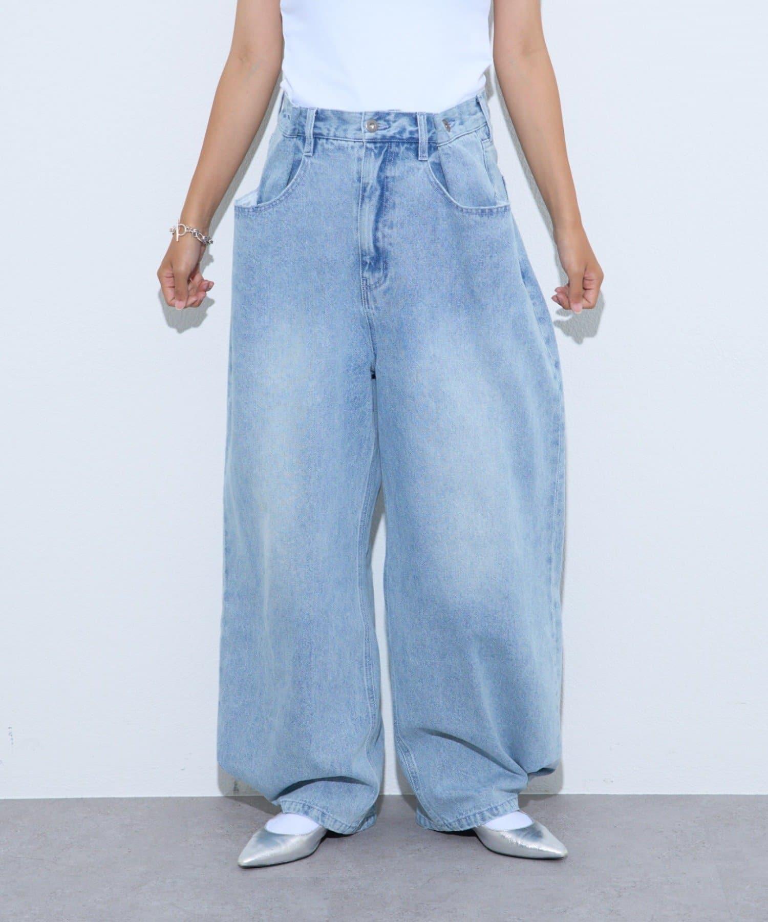 這款牛仔褲是全場的主角,可搭配簡單的上衣,完成協調的造型!