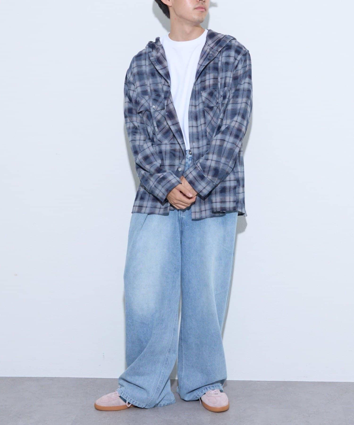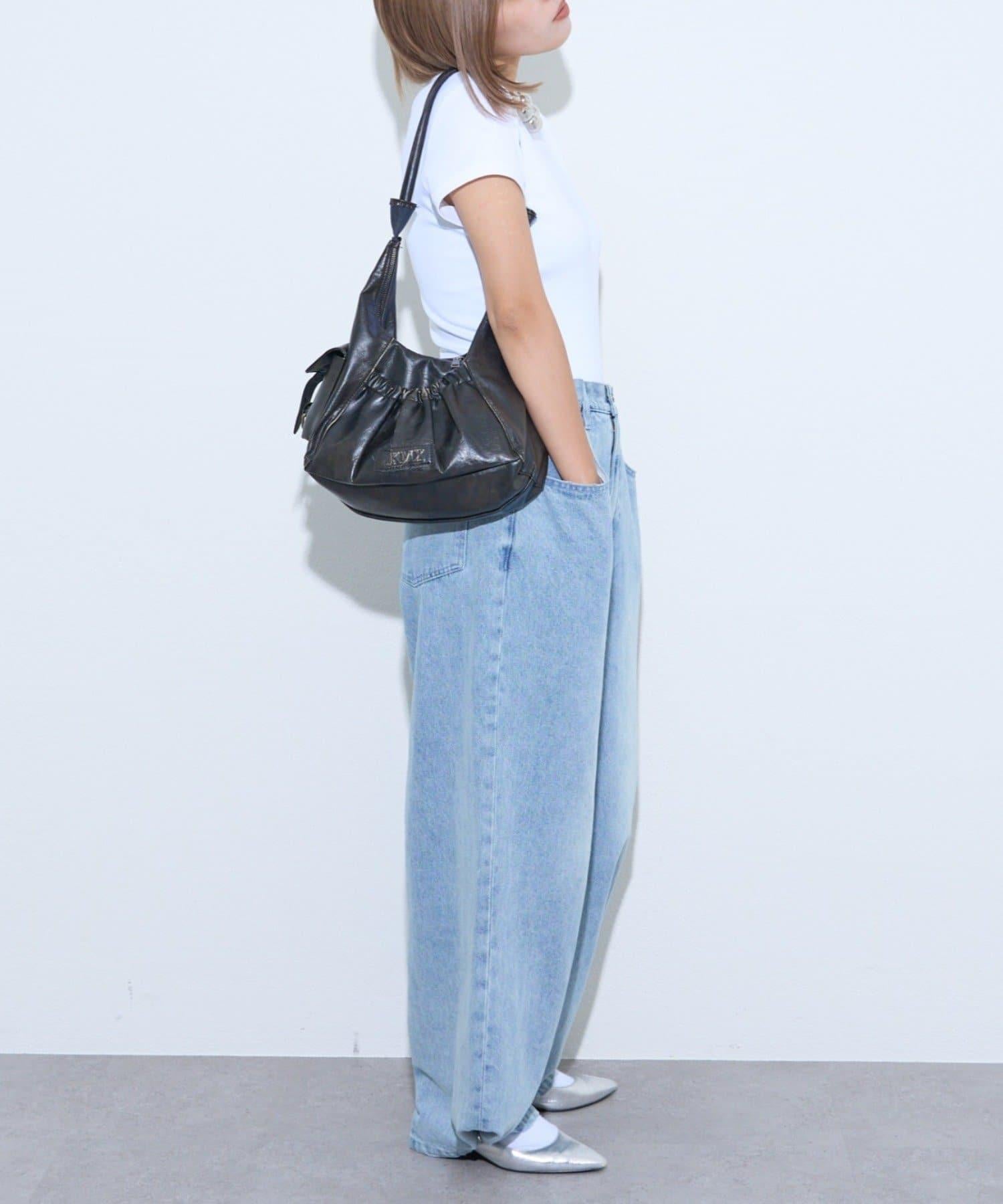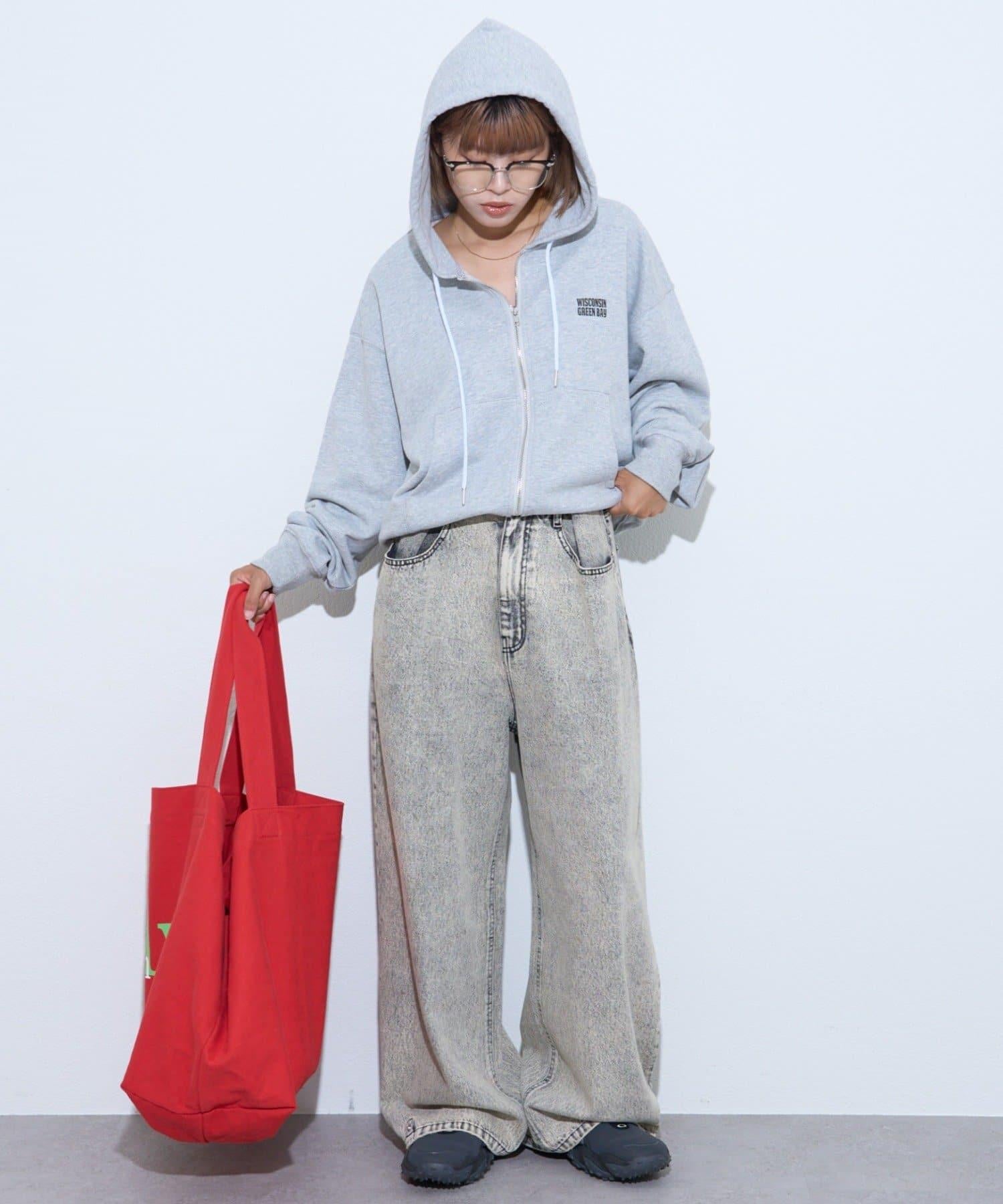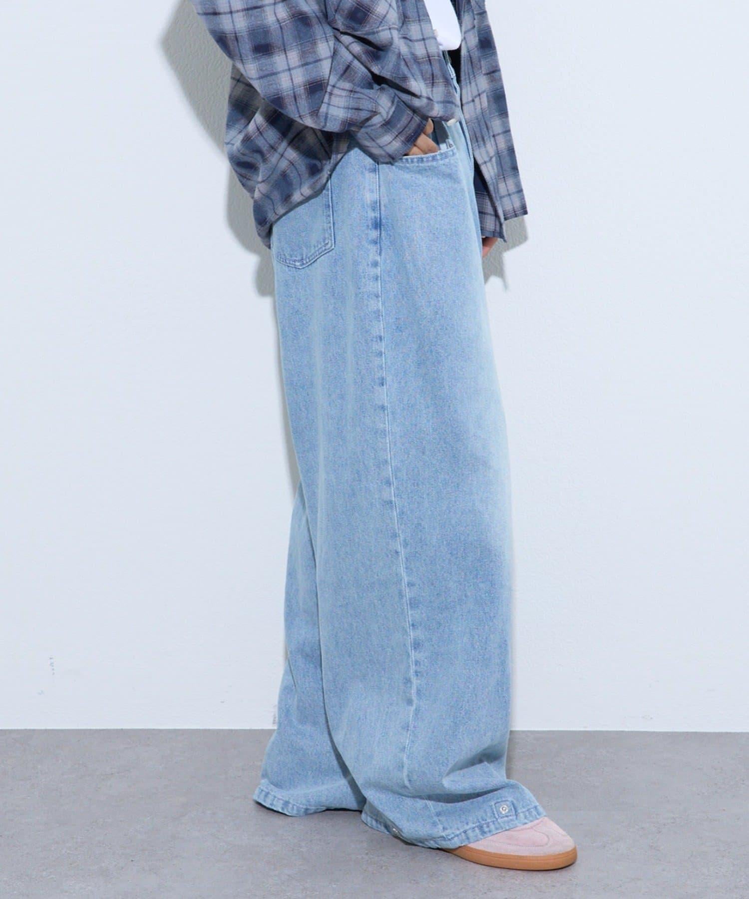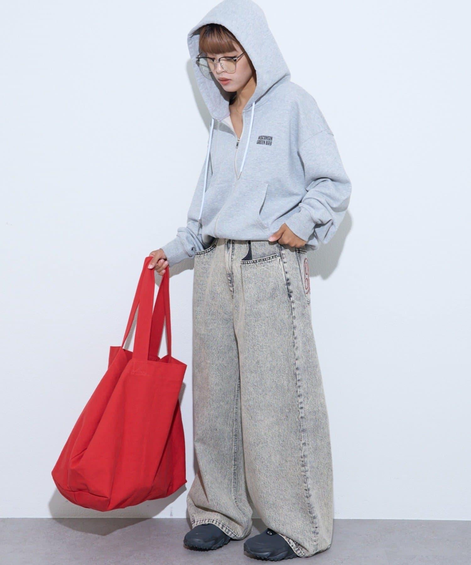 這款牛仔褲是全場的主角,可搭配簡單的上衣,完成協調的造型!