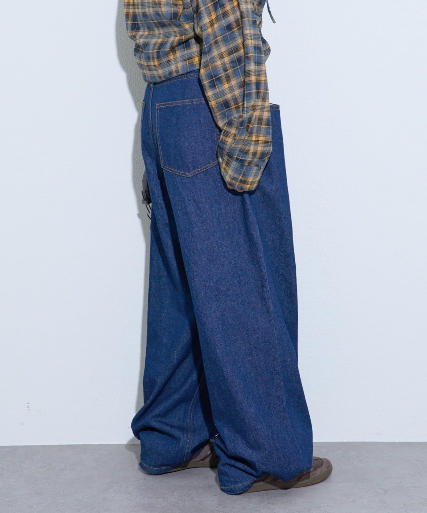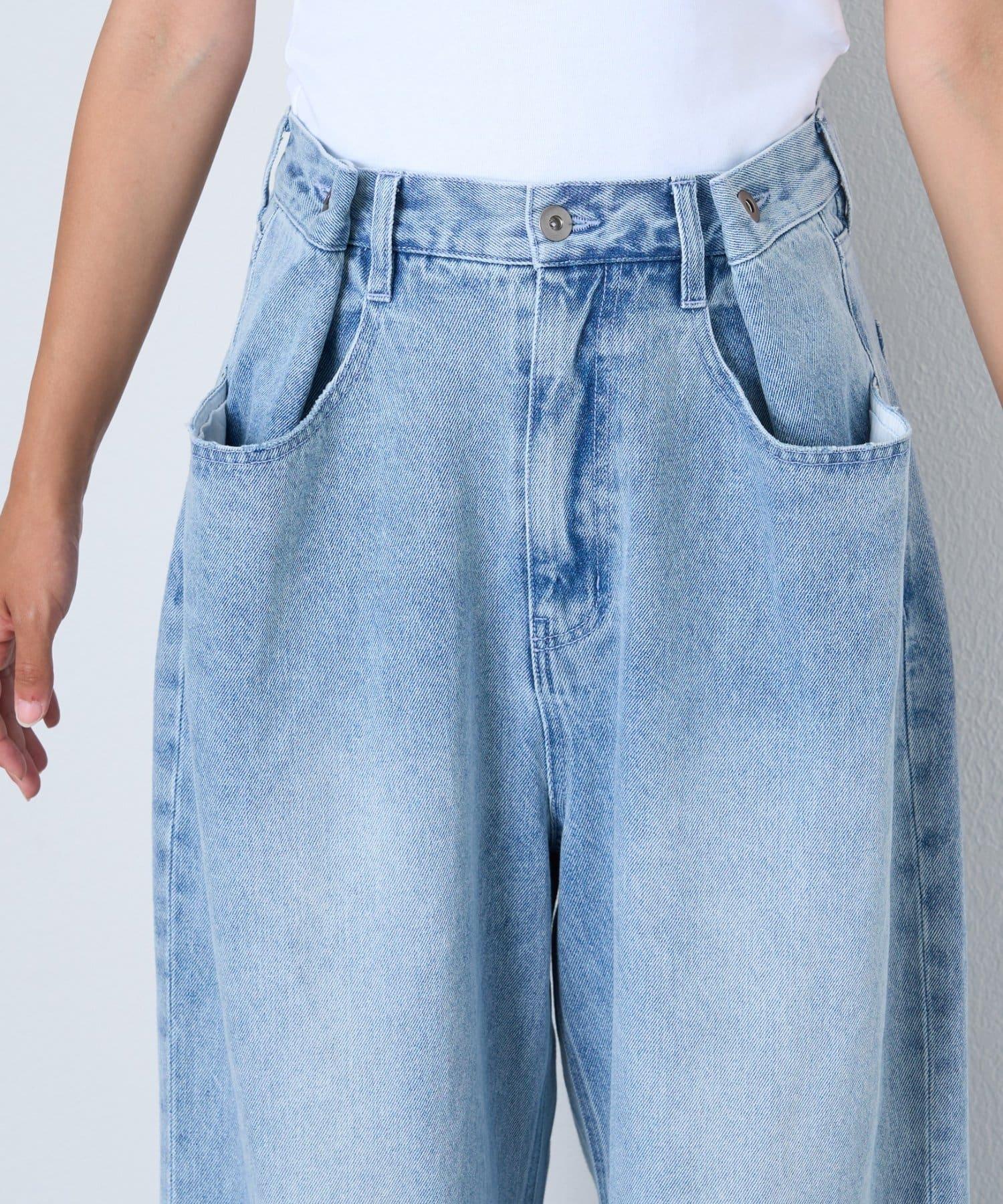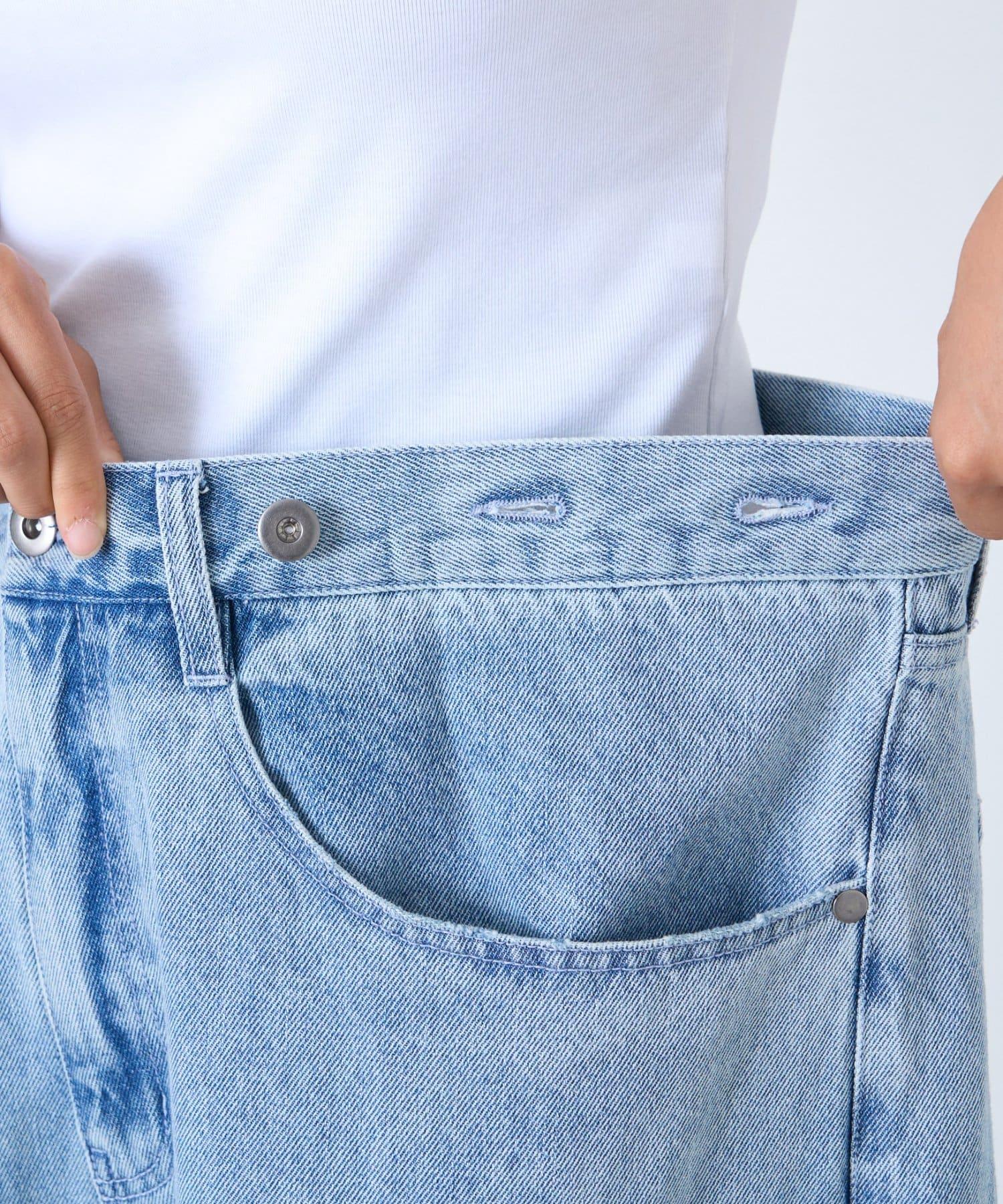 【薩基企劃】【可調節腰圍】超染褶皺設計牛仔褲