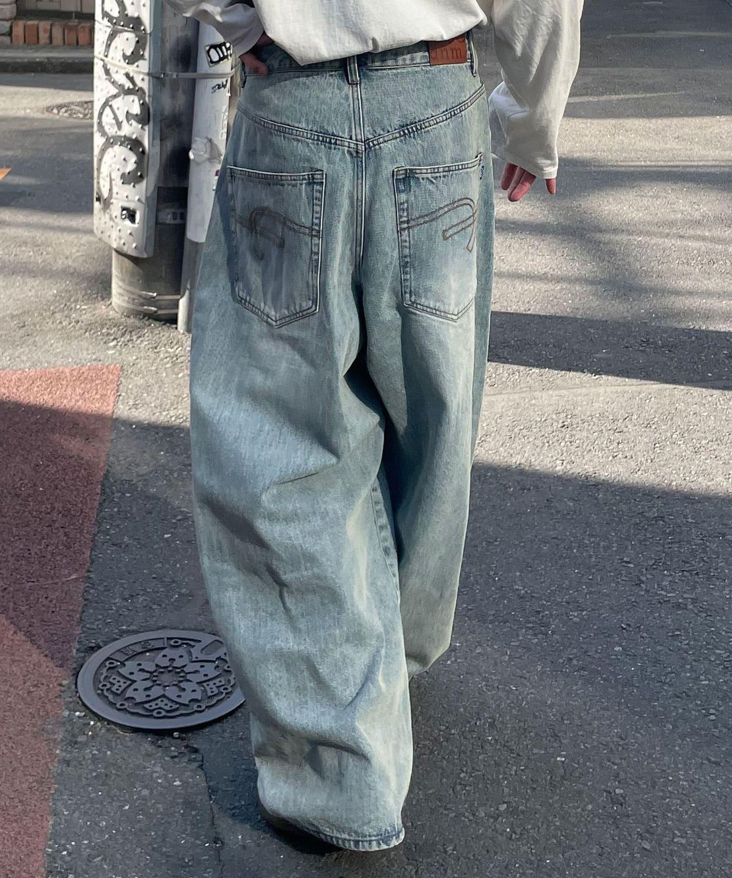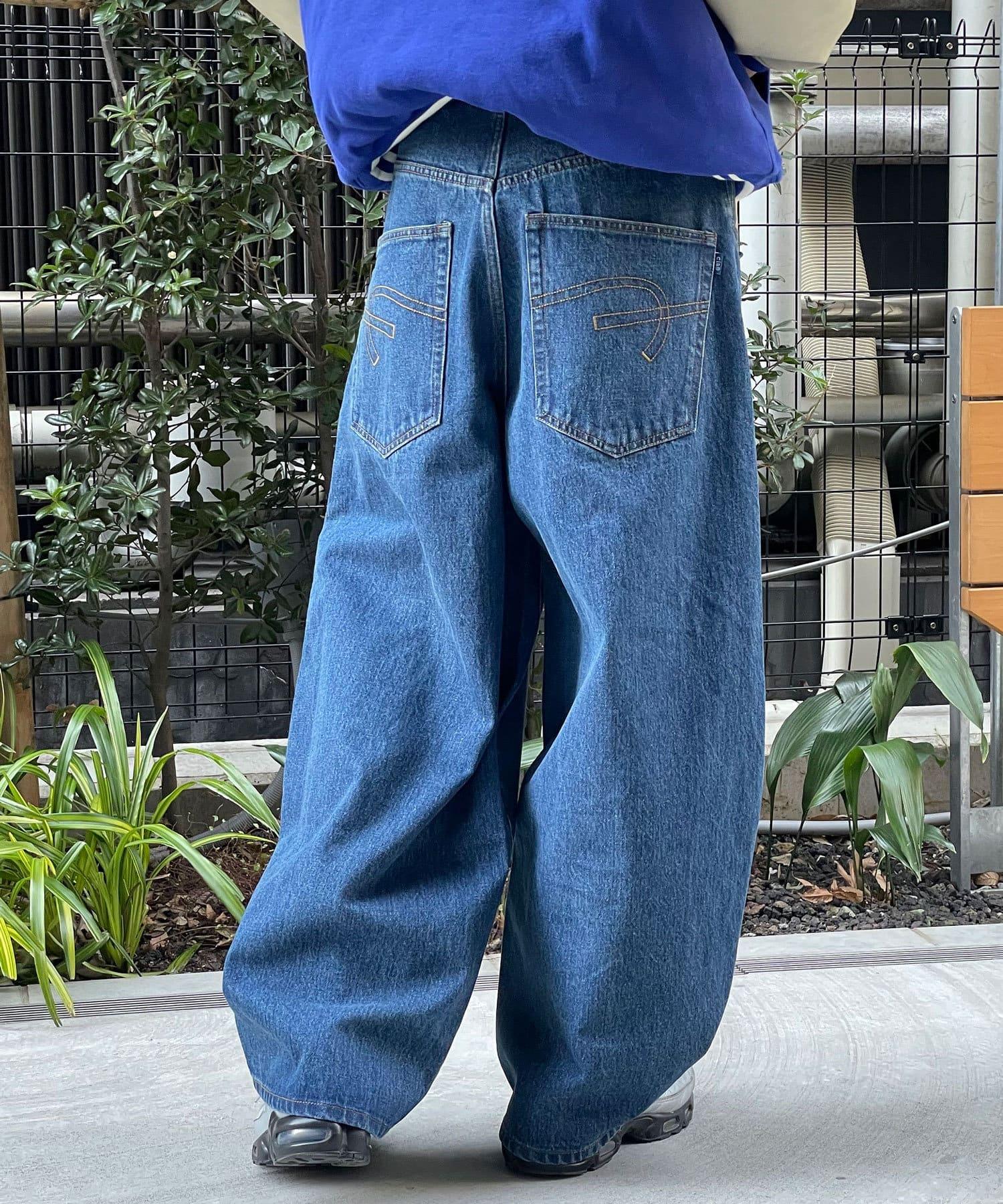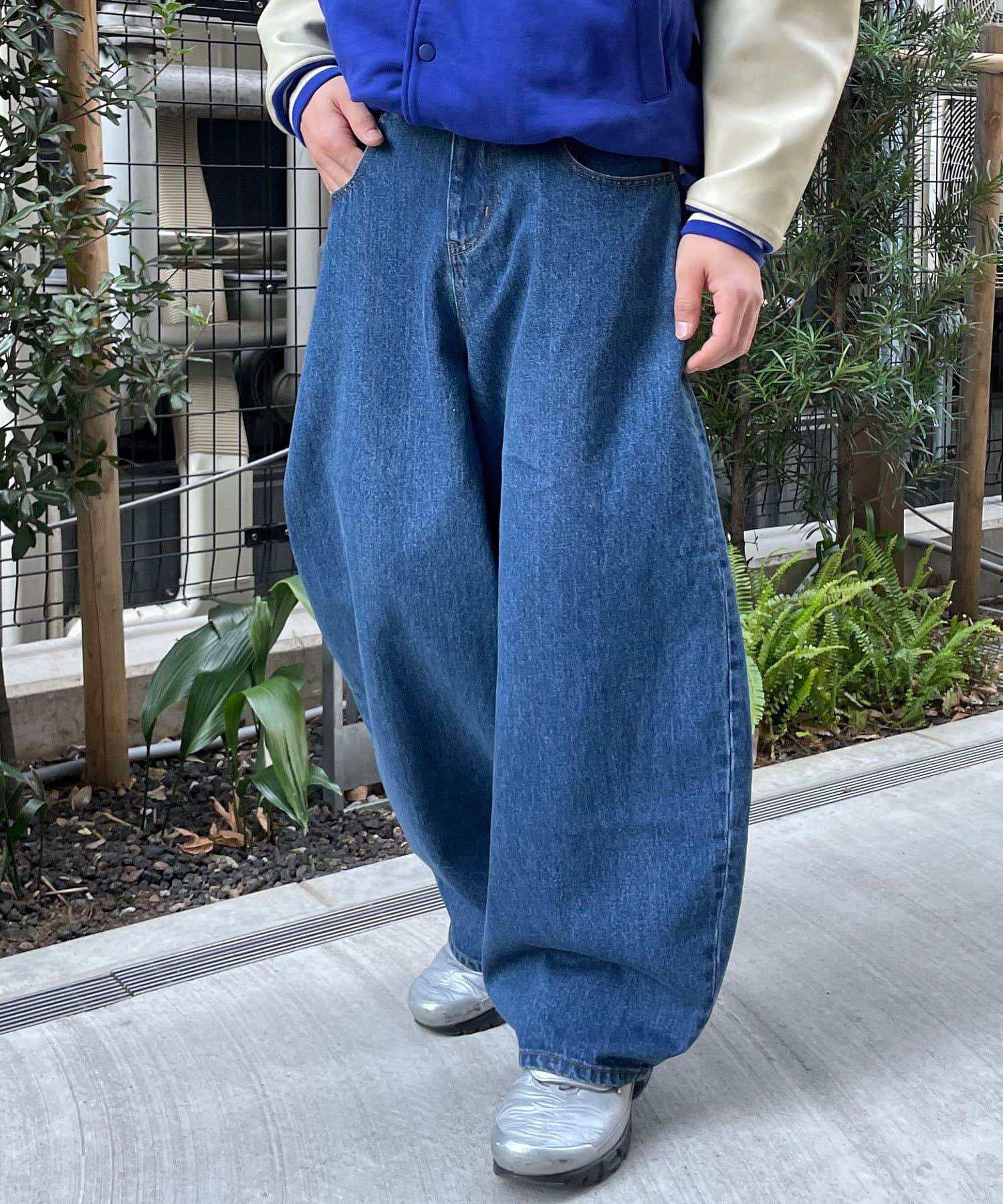 【藍色牛仔布/藍色牛仔布】寬鬆牛仔褲