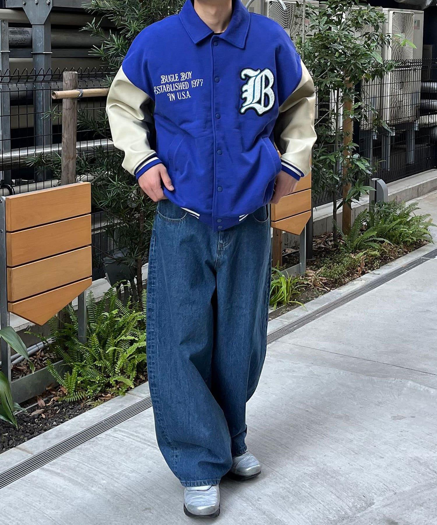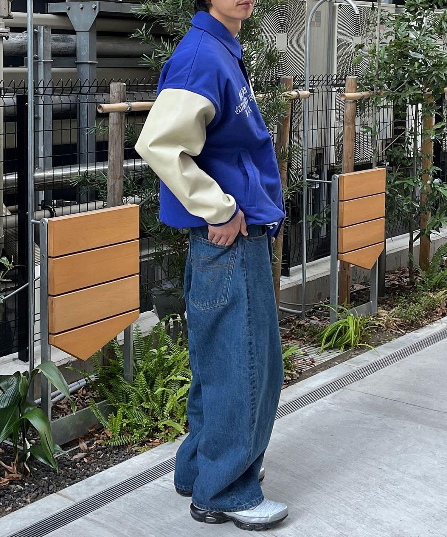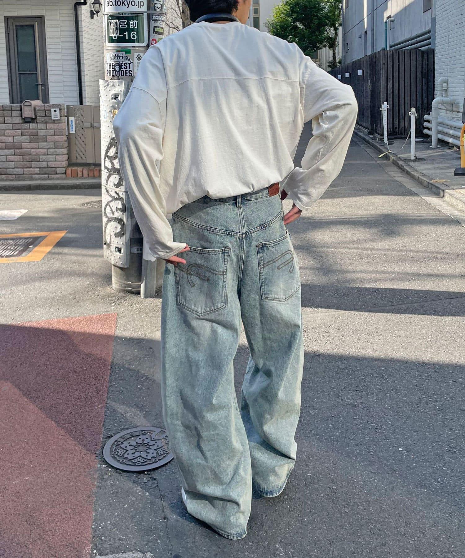 【藍色牛仔布/藍色牛仔布】寬鬆牛仔褲