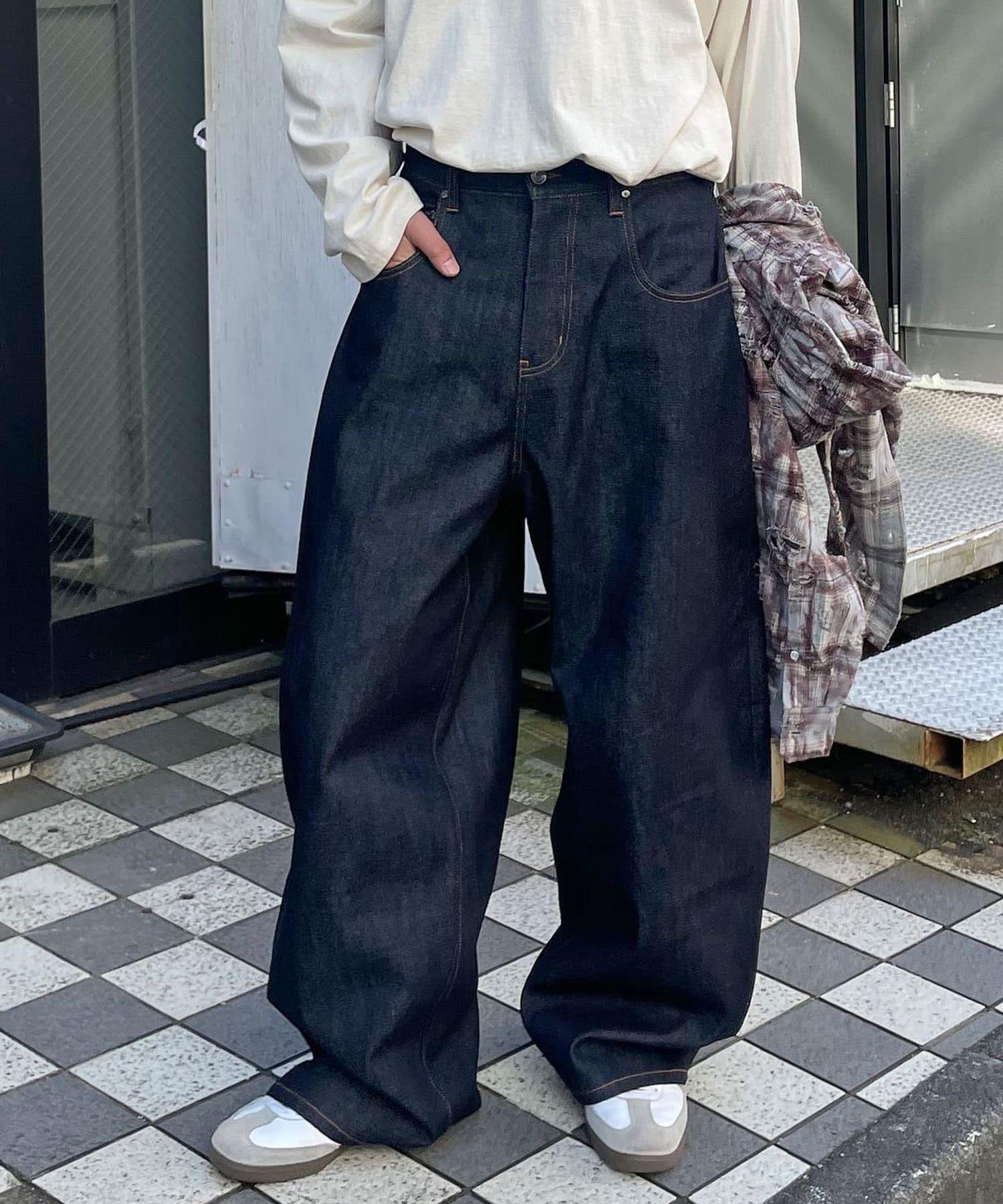 通過將傳統寬幅牛仔布磨圓,增加了體積感,營造出適度寬鬆的感覺。