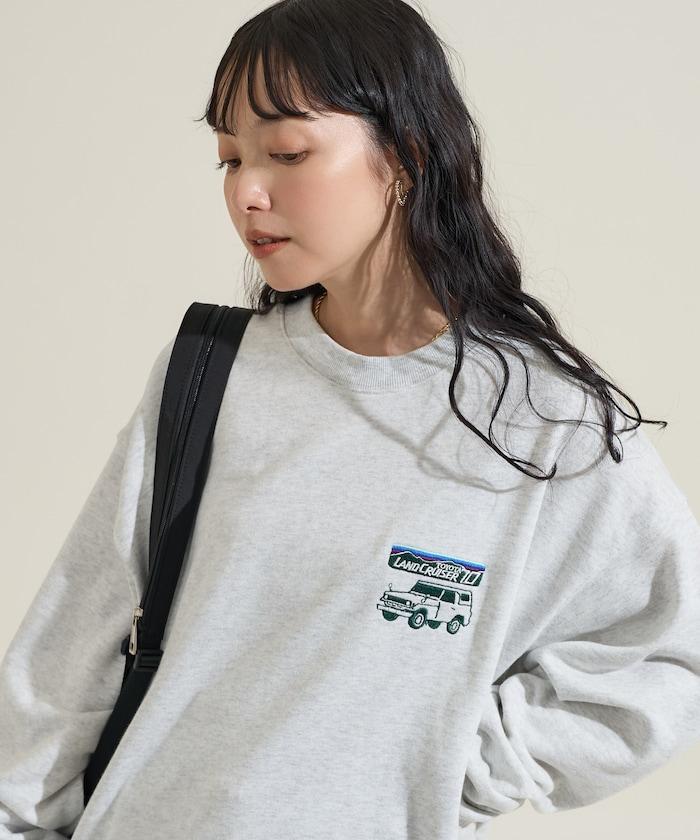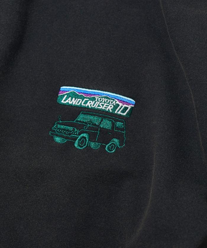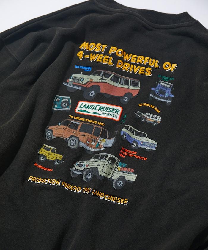 這款圓領運動衫的貼布設計以豐田歷史悠久的👍陸地巡洋艦為主題。