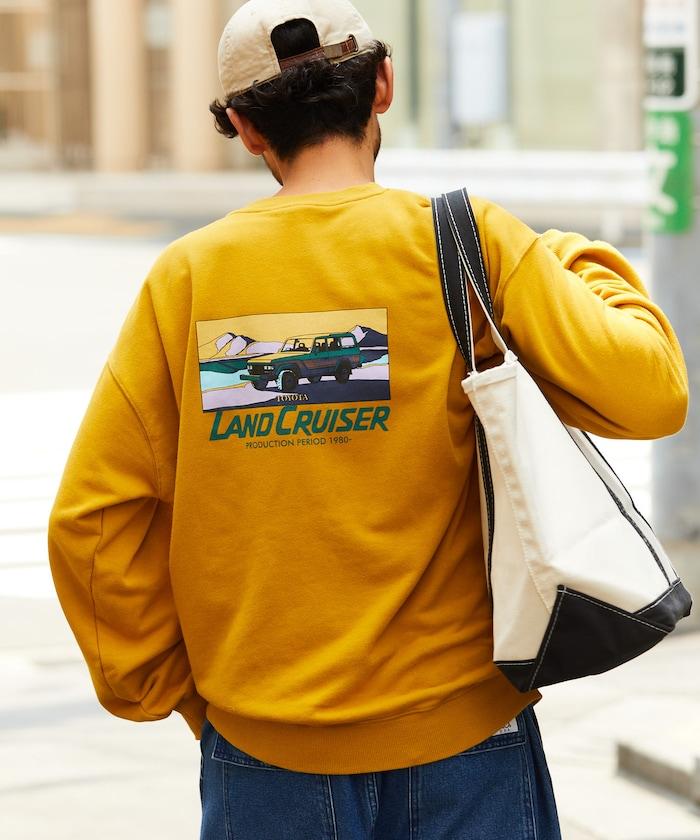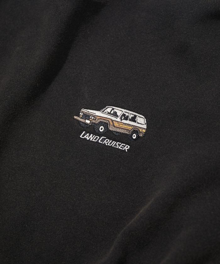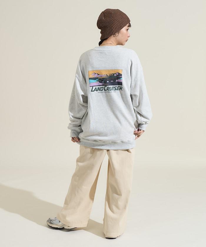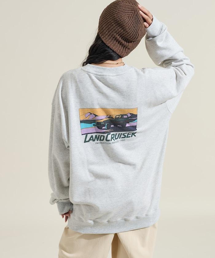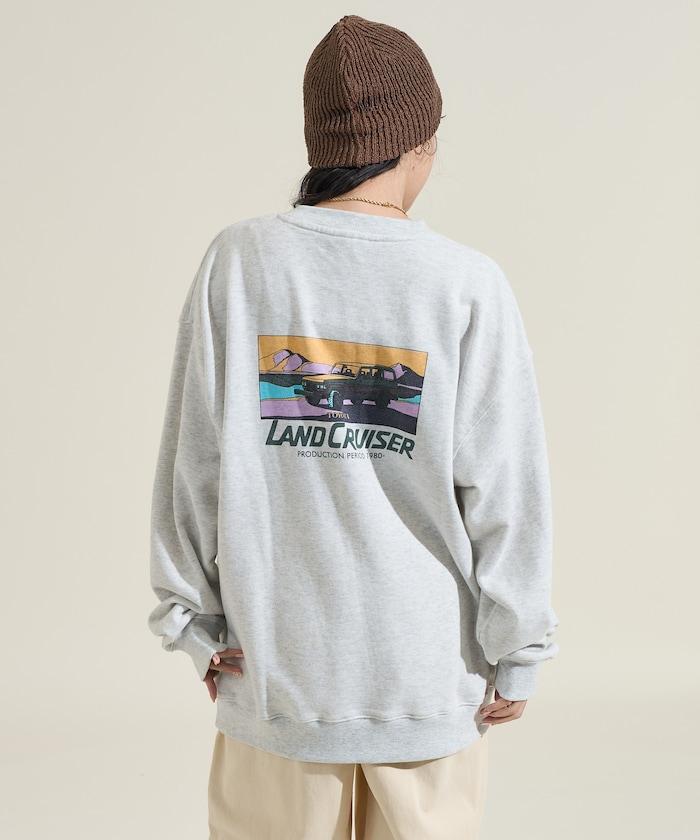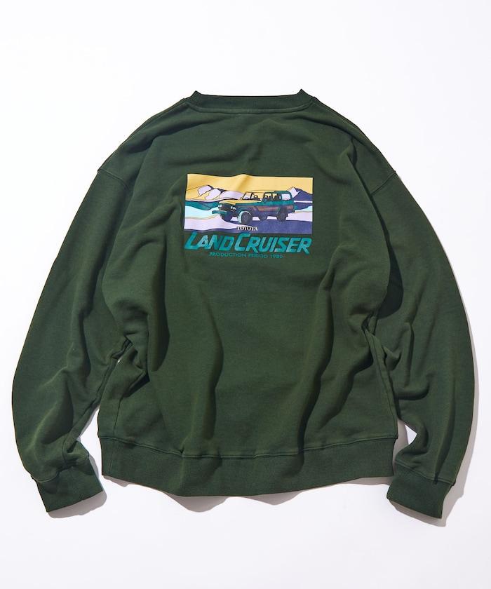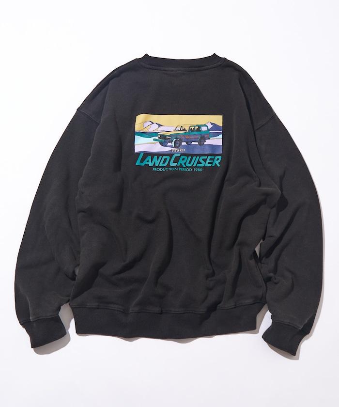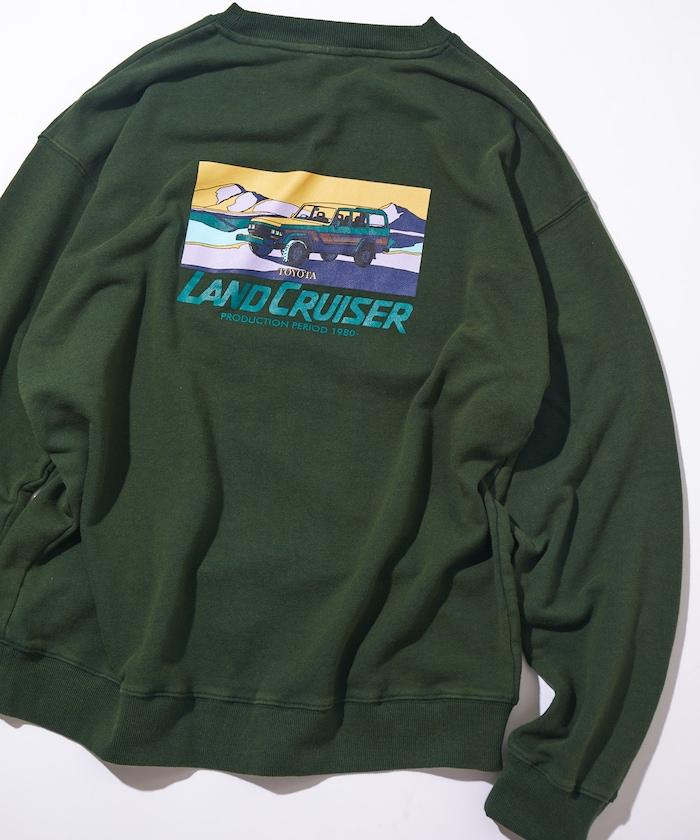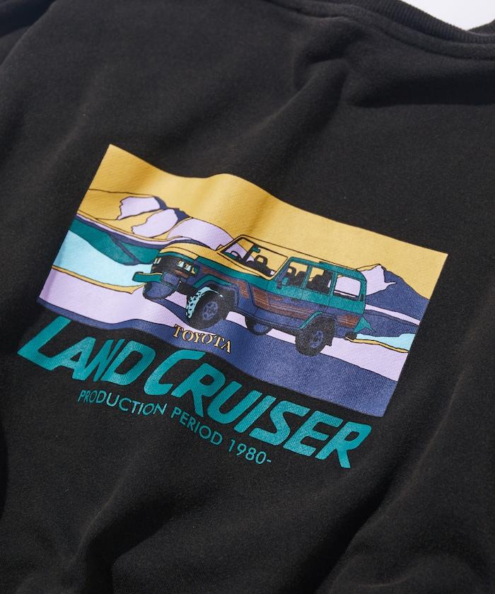 背面印花圓領運動衫,以歷史悠久的👍豐田陸地巡洋艦為主題。