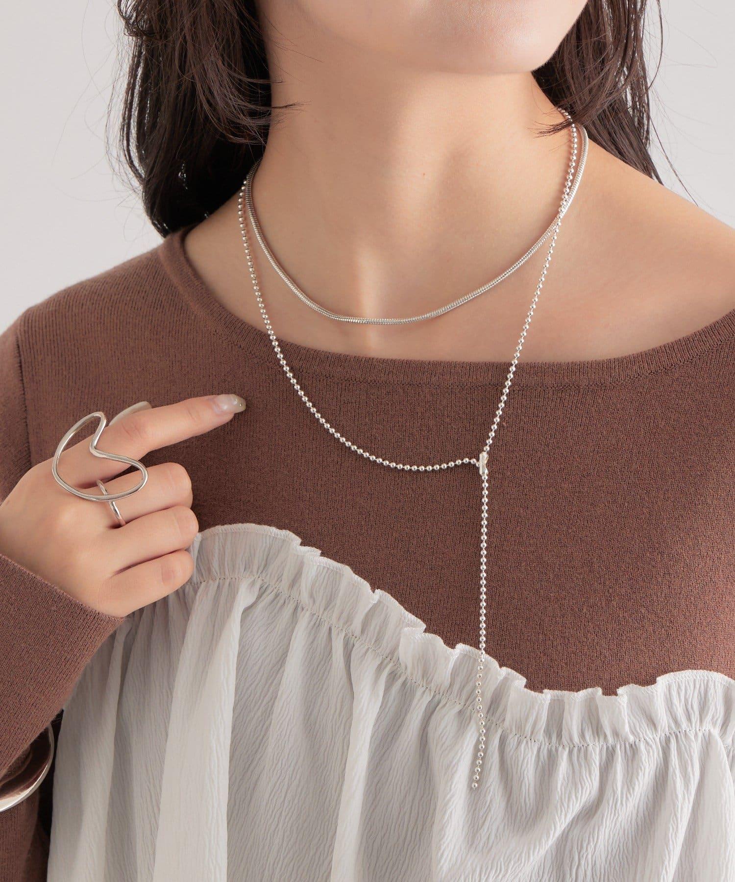 這條項鍊將長長的球形鏈和優雅的蛇形鏈完美地結合在一起。