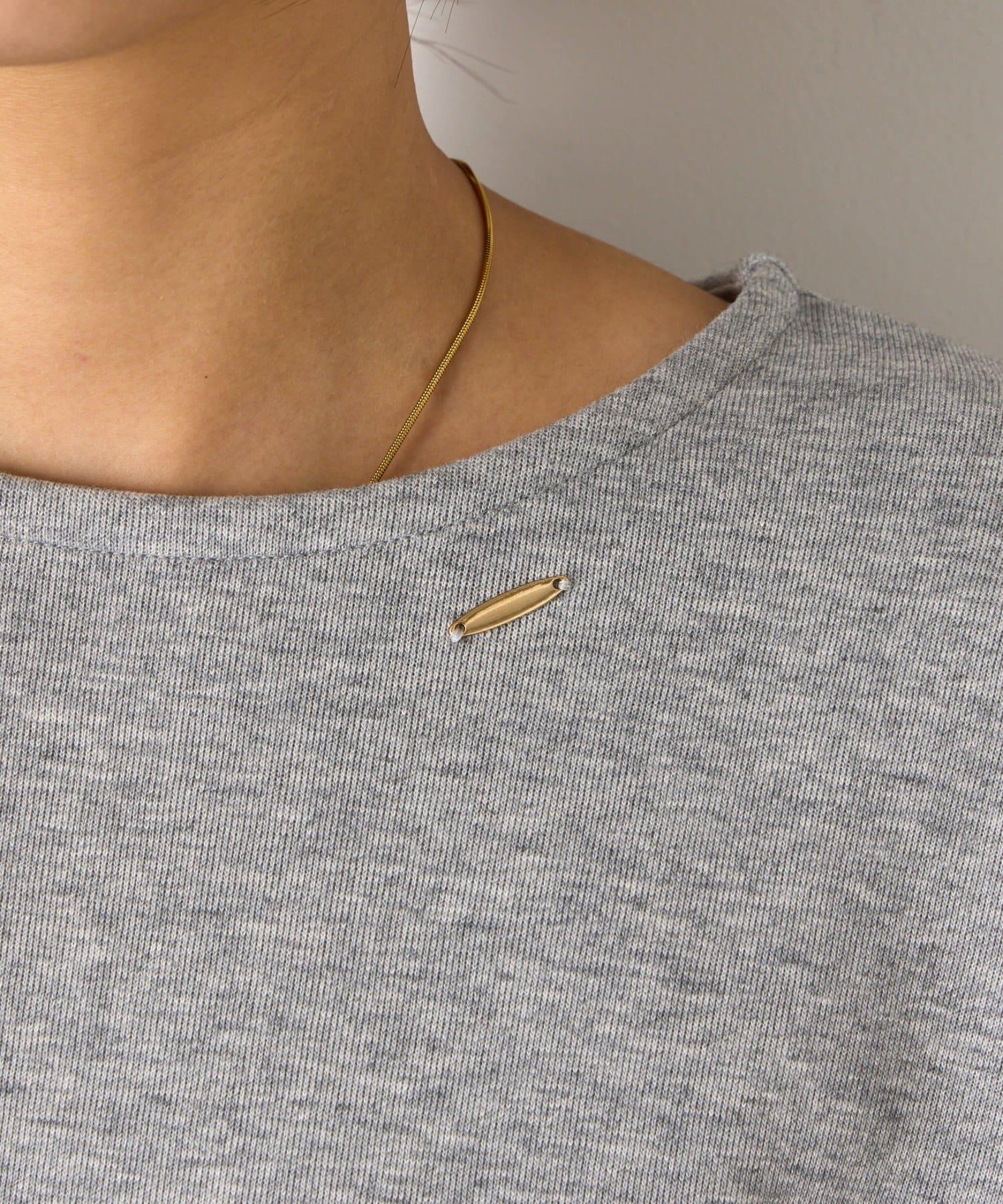 胸前的小金盤無需任何配飾,單看就很時尚。