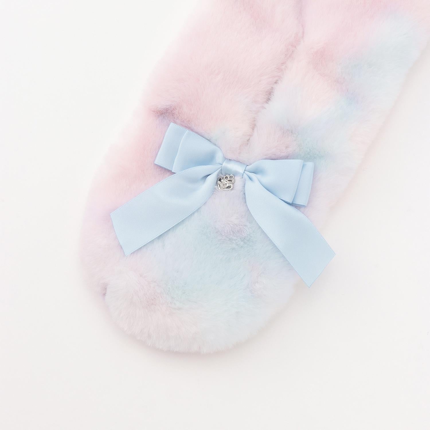 圍巾有三種顏色可供選擇--米色、淺粉色和粉色漸變色,上面鑲嵌著長長的緞帶和大塊的極光色飾片,非常符合季節主題。