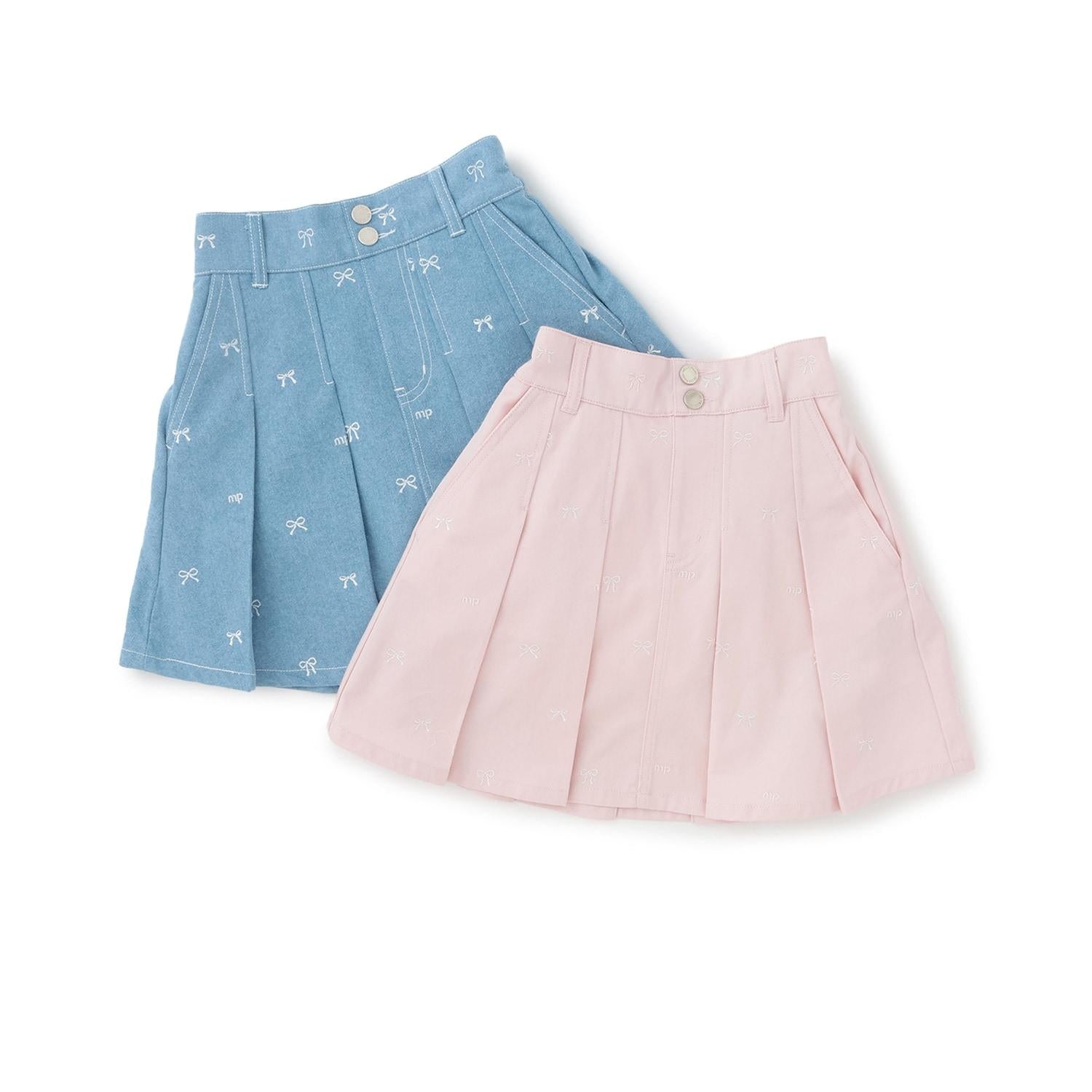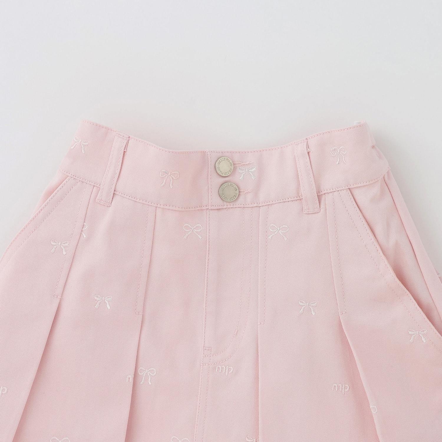 蝴蝶結刺繡花卉圖案 折褶 裙褲