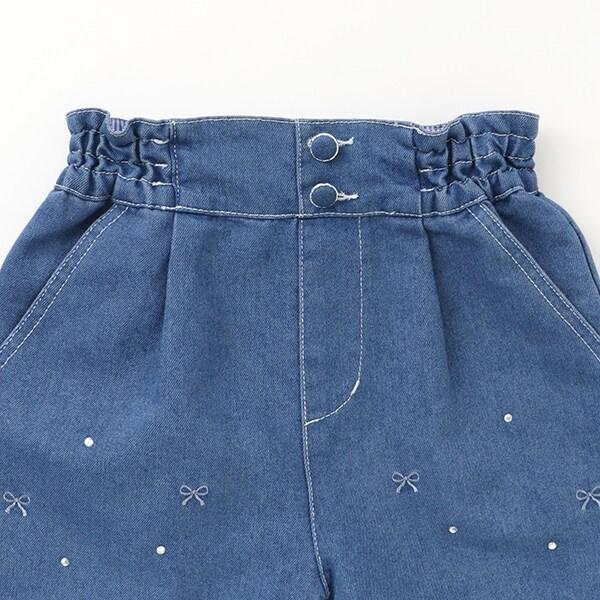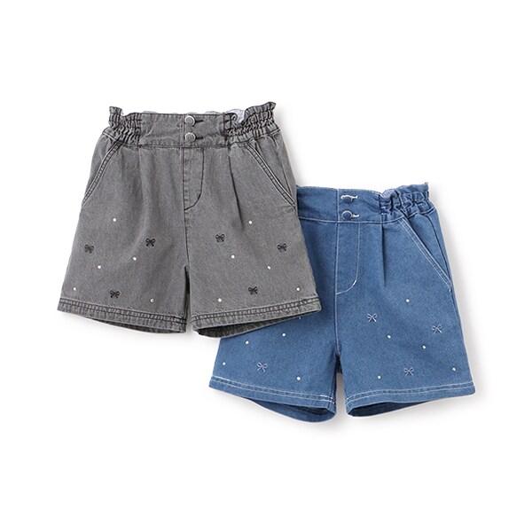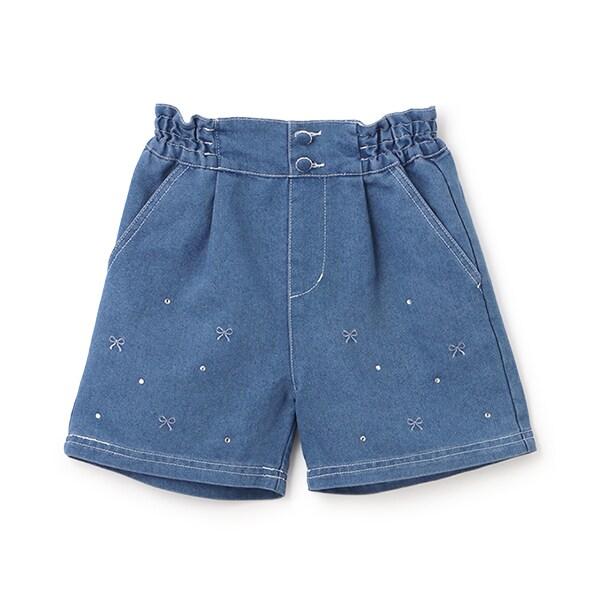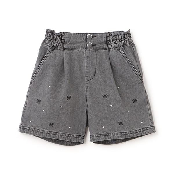 蝴蝶結刺繡鑲鑽短褲