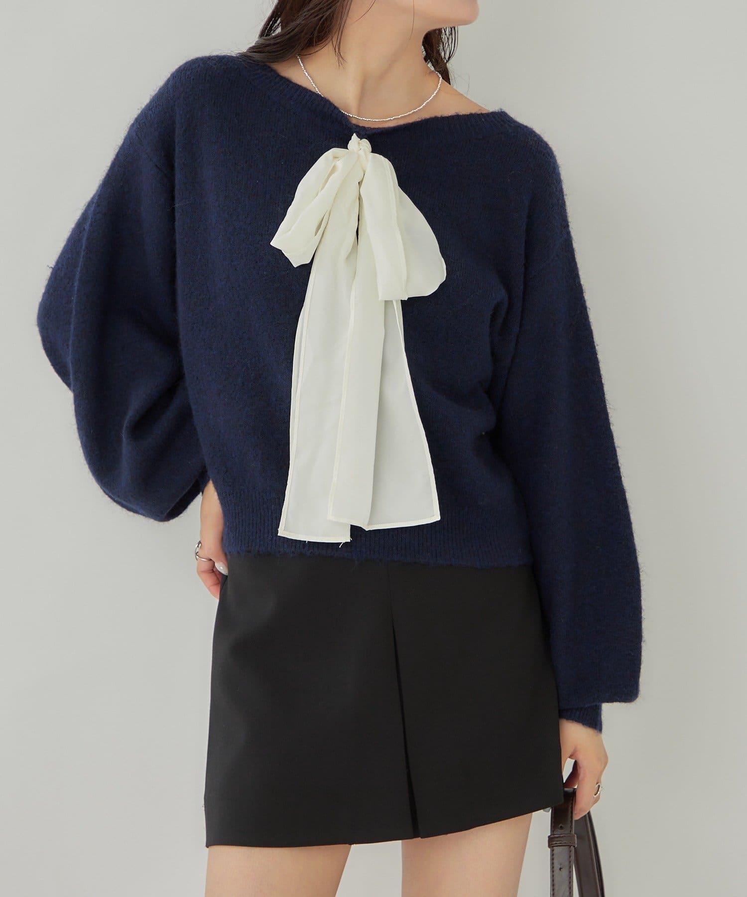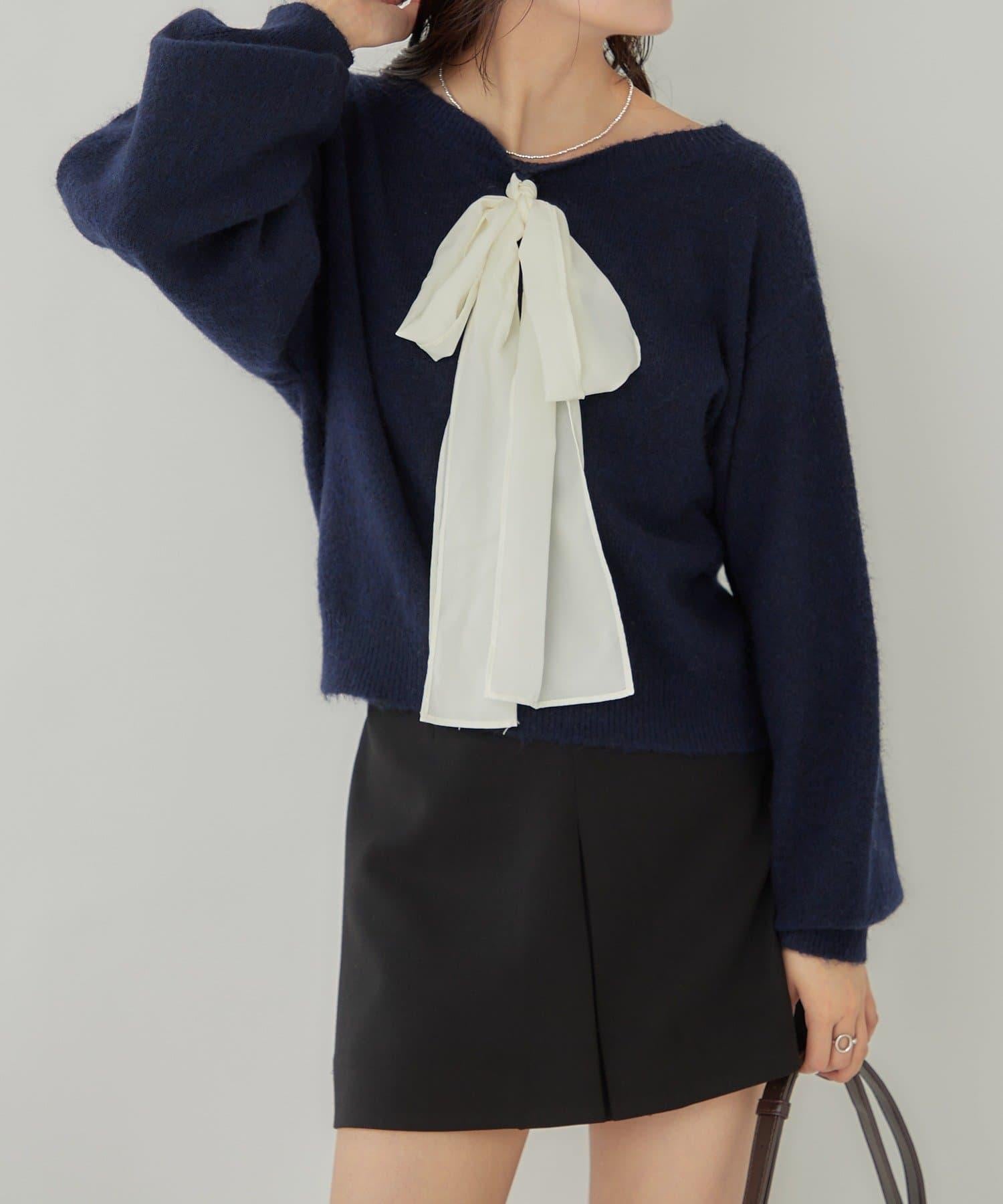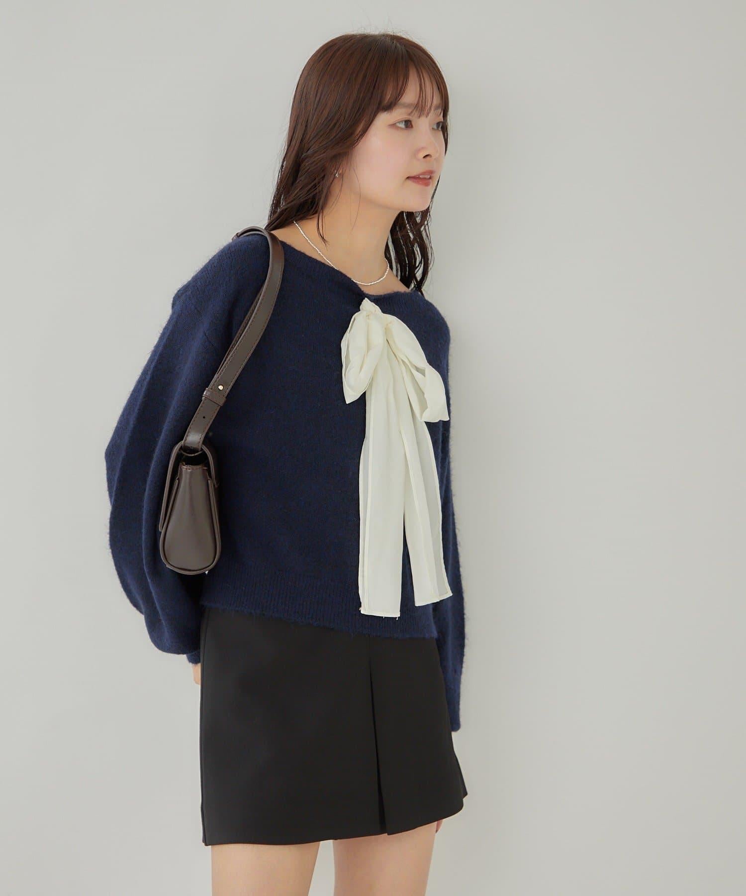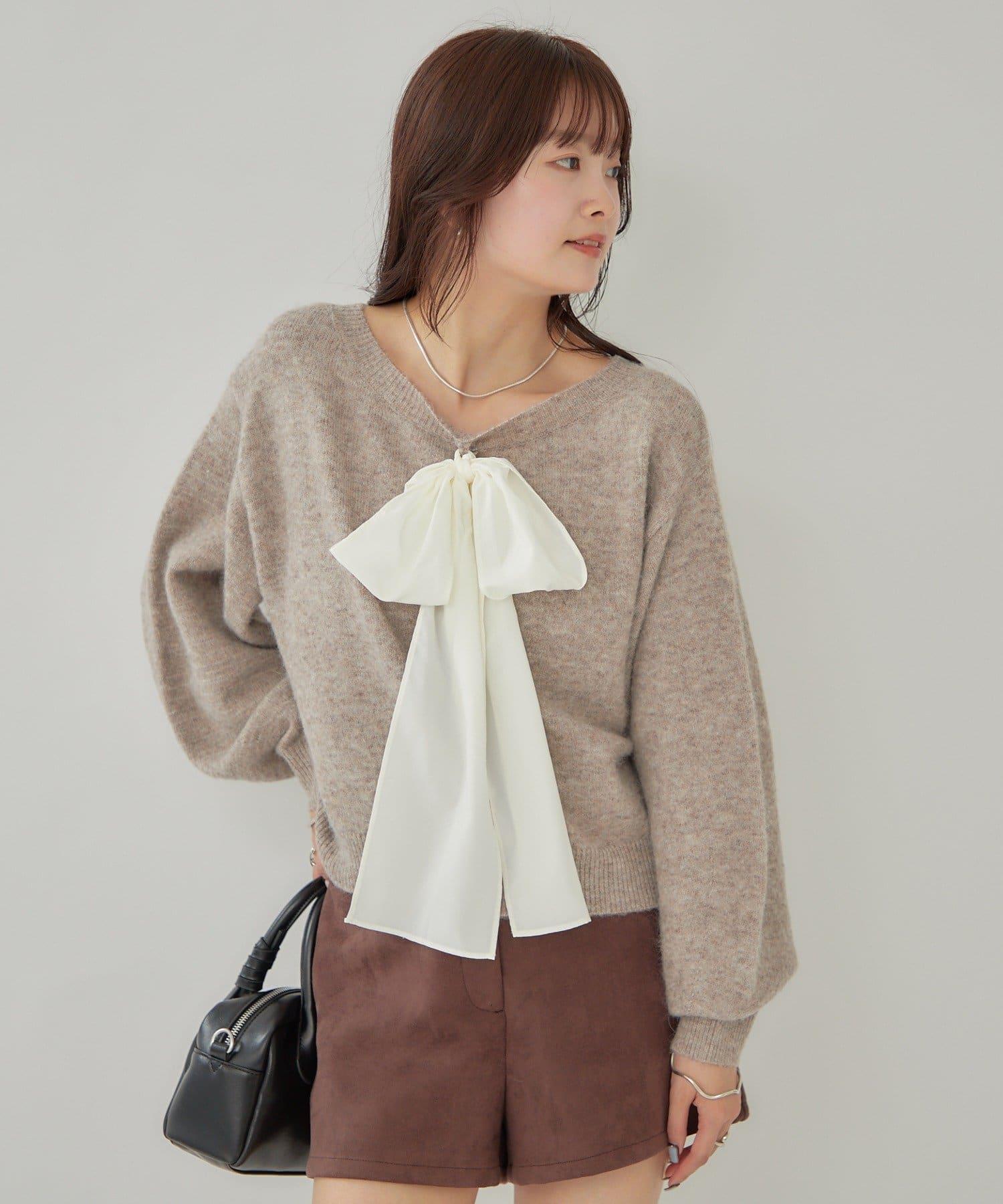 【蝴蝶結可拆卸】蝴蝶結裝飾針織套頭衫