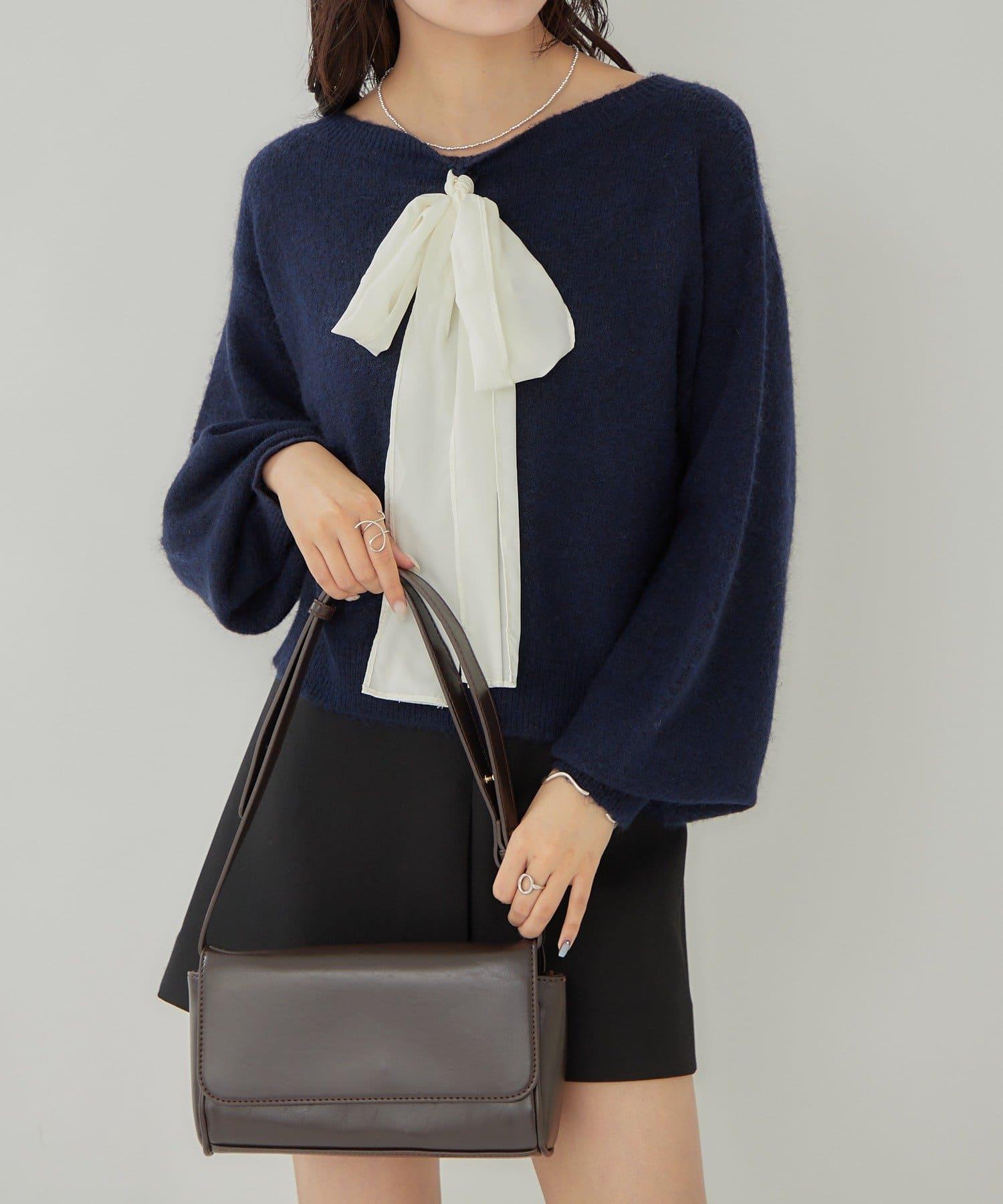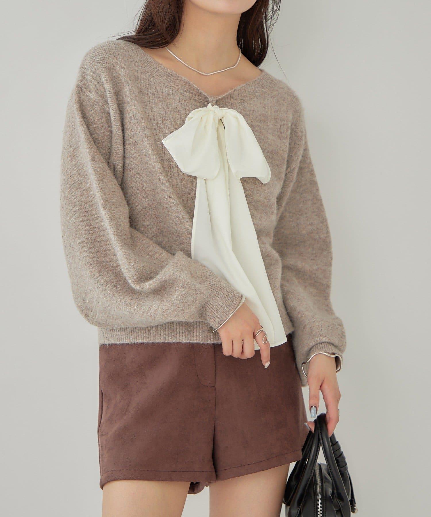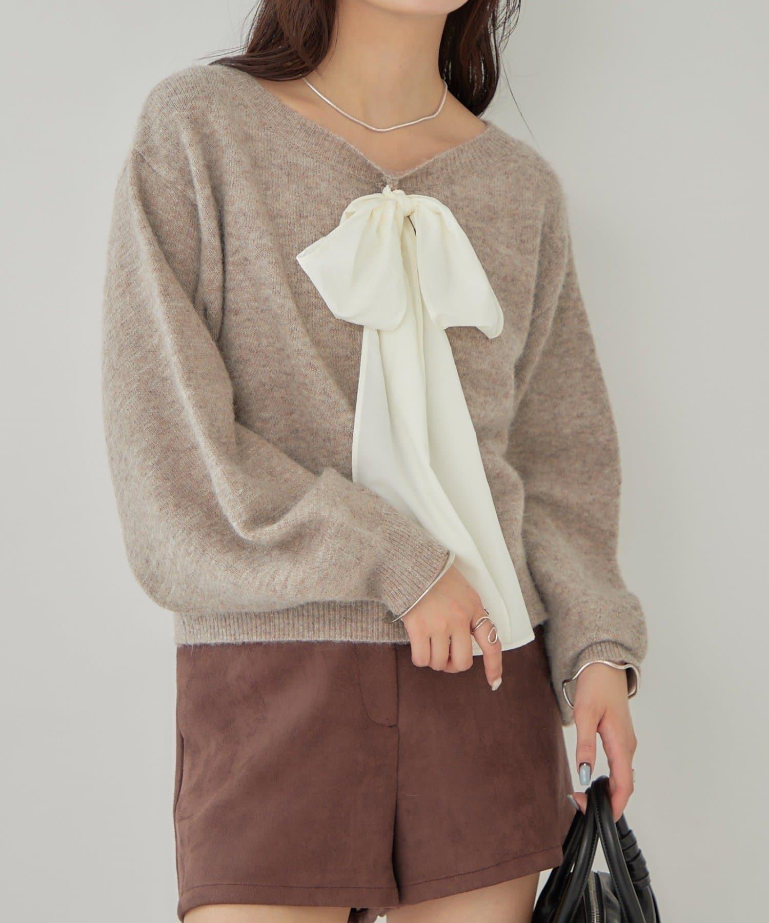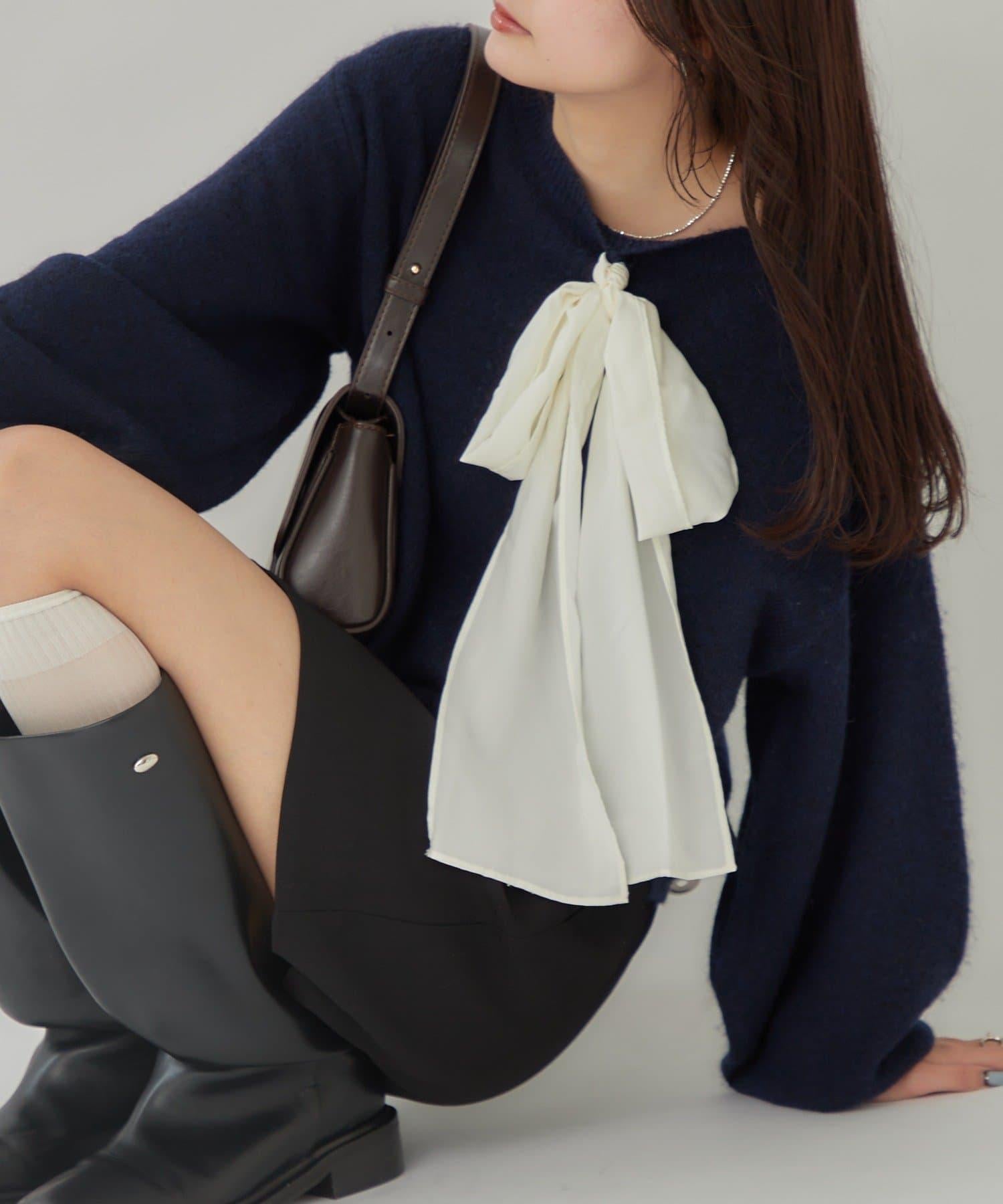 【蝴蝶結可拆卸】蝴蝶結裝飾針織套頭衫