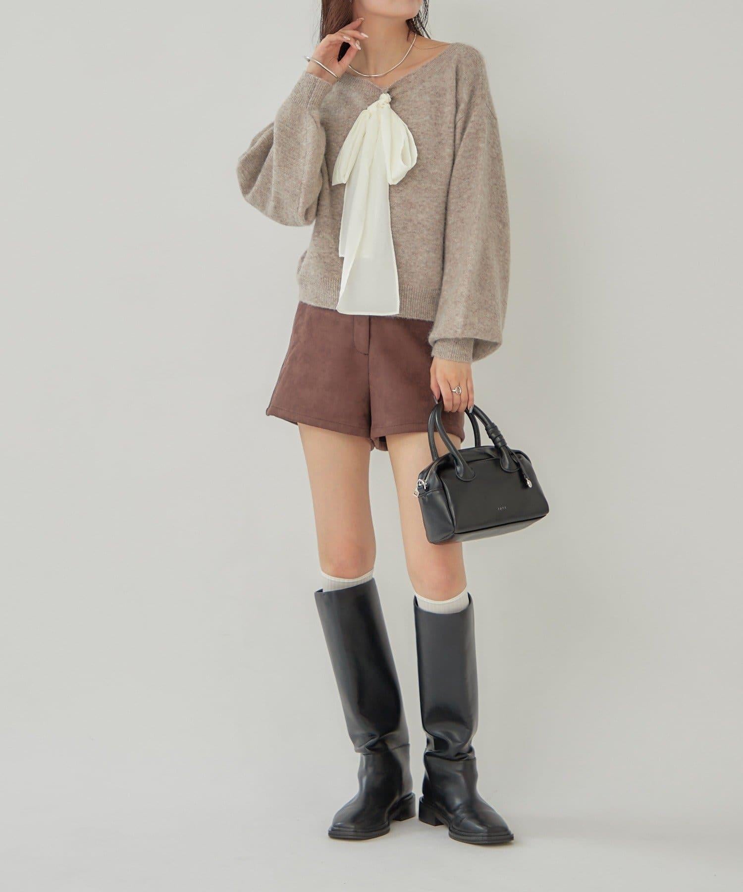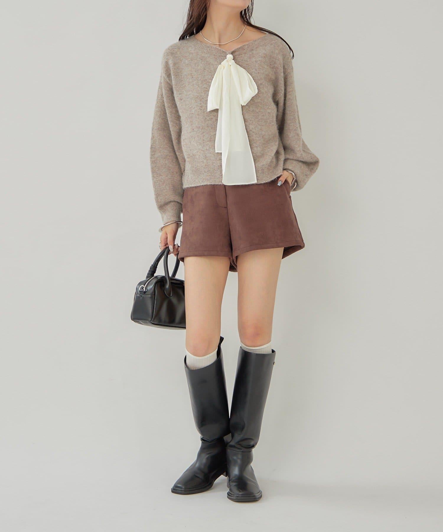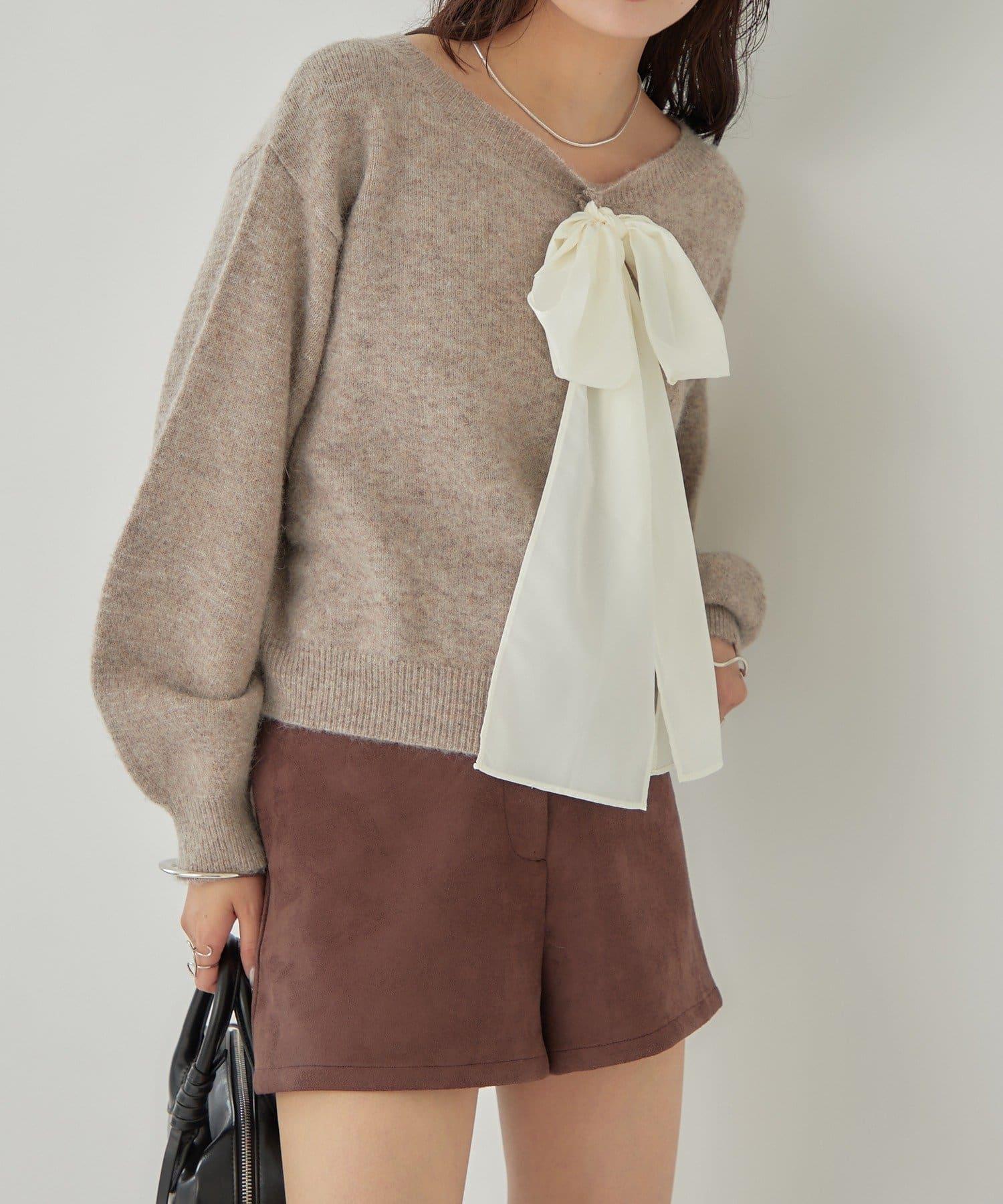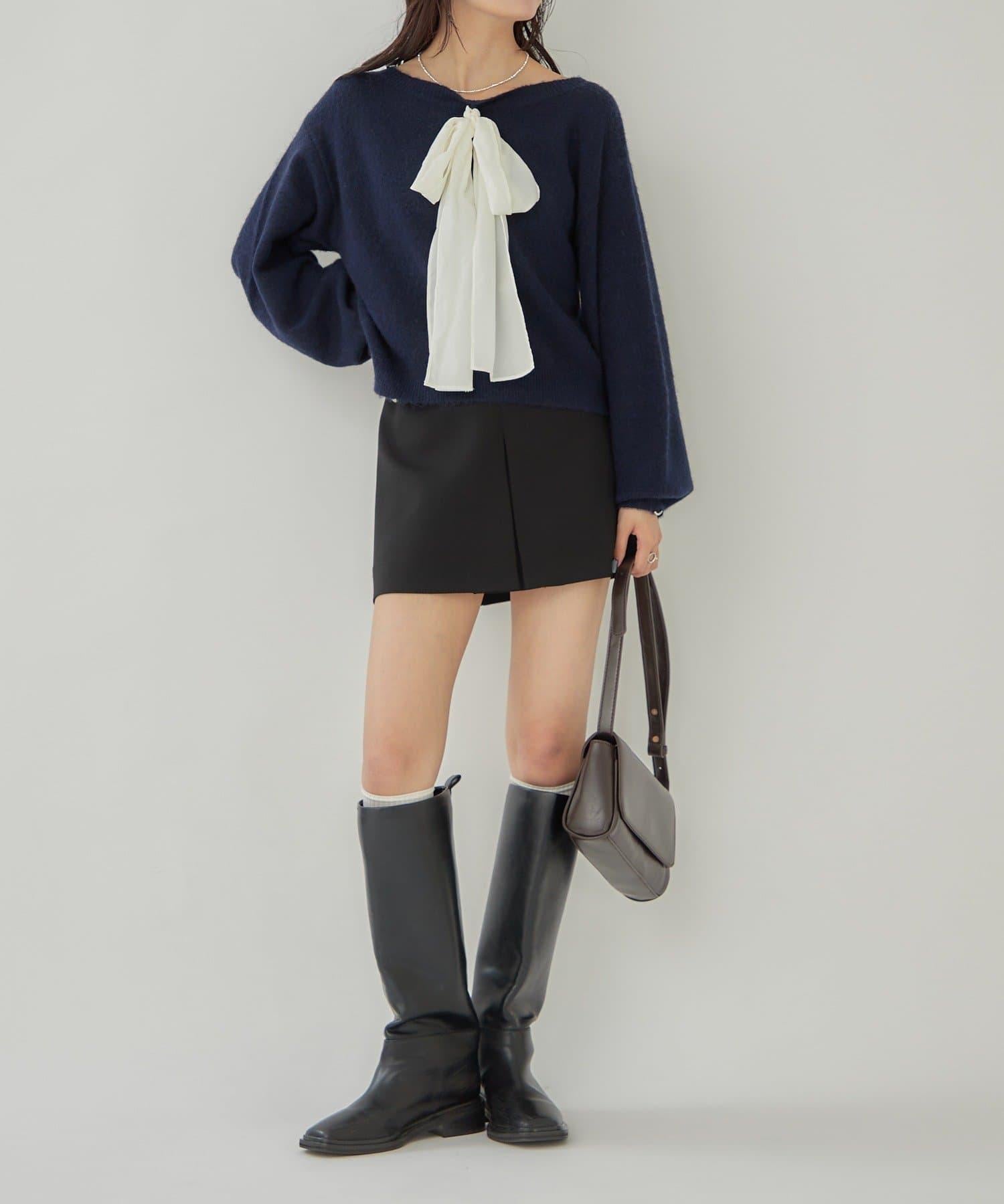 【蝴蝶結可拆卸】蝴蝶結裝飾針織套頭衫