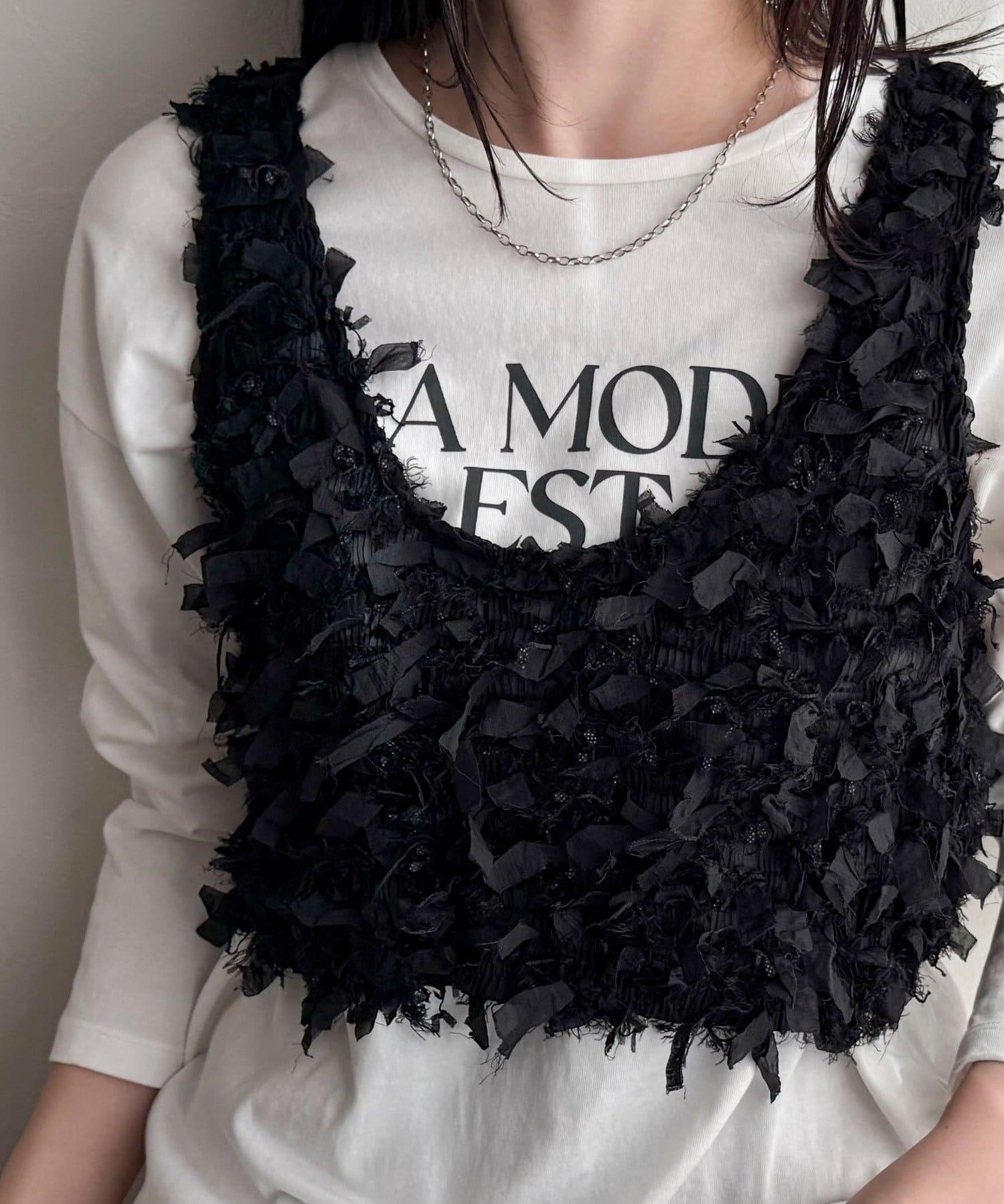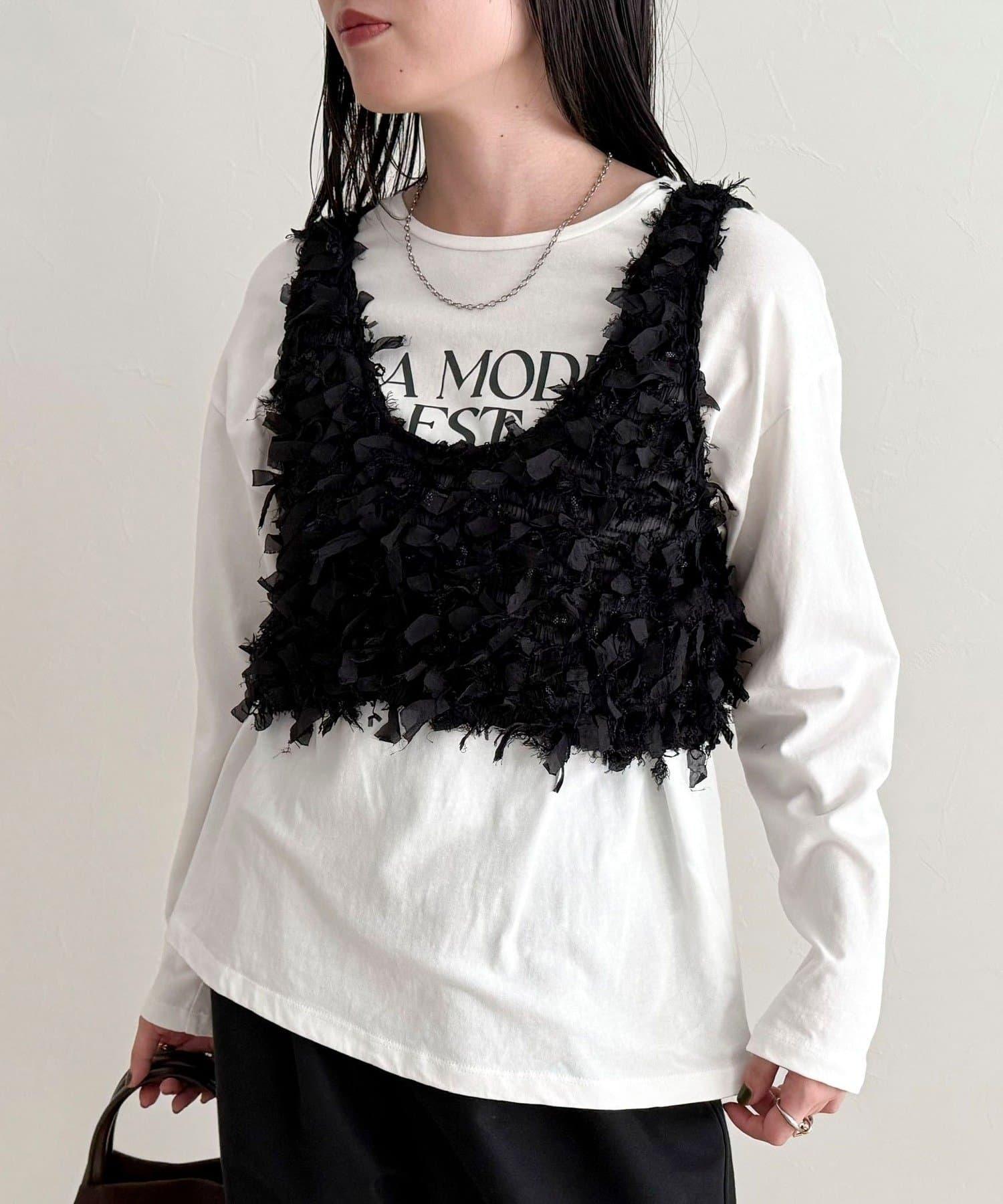 帶有絲帶的上衣吸引眼球。