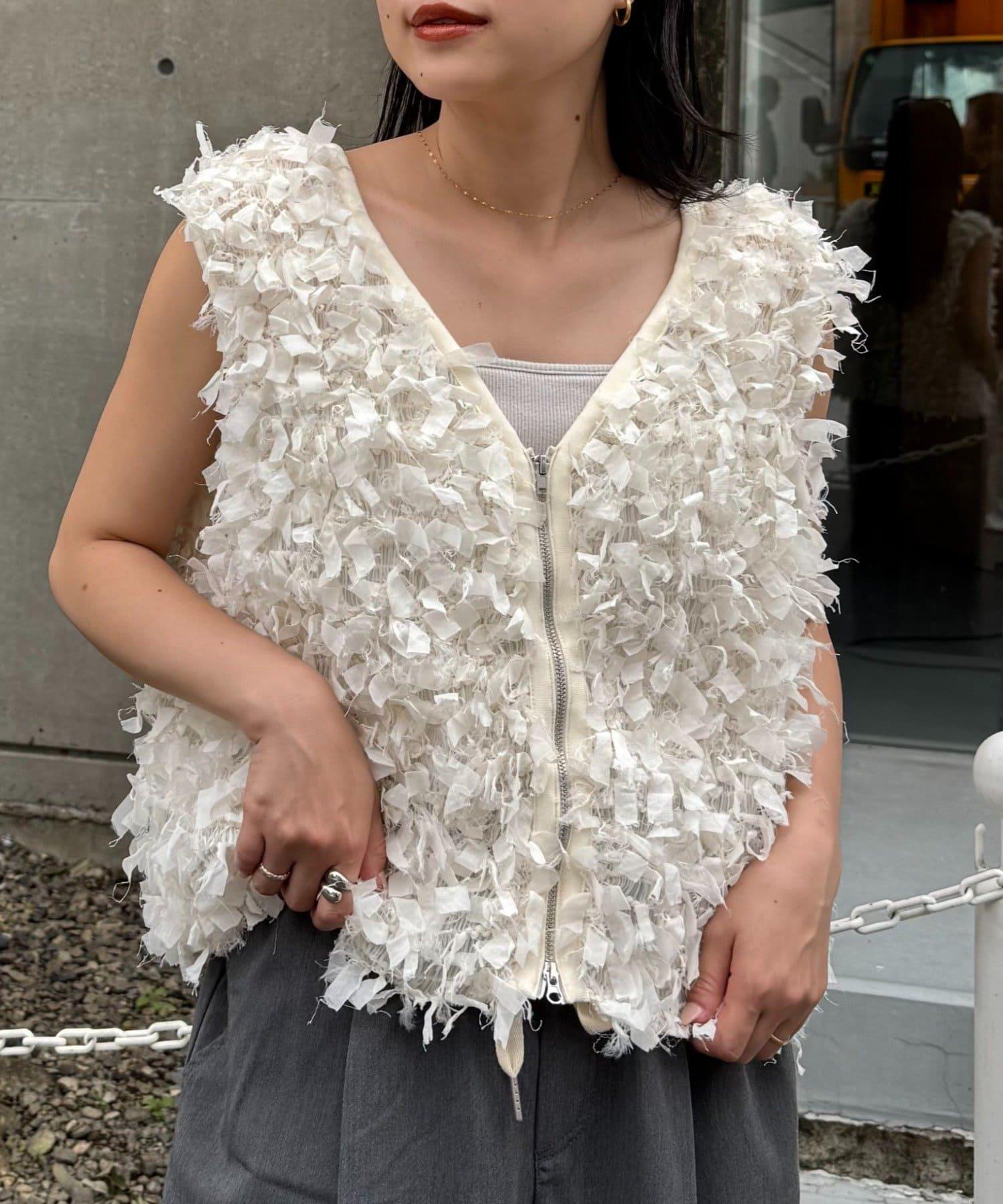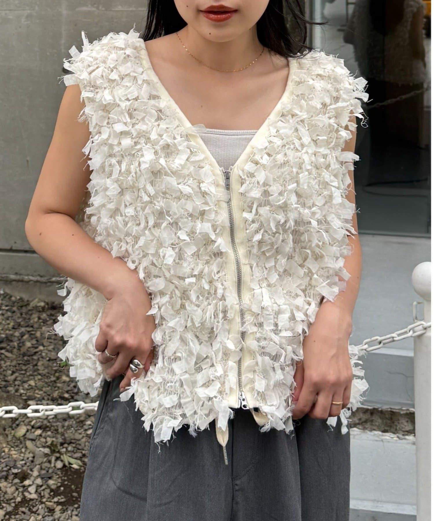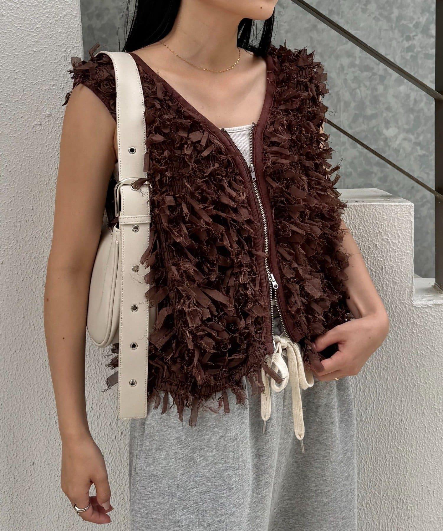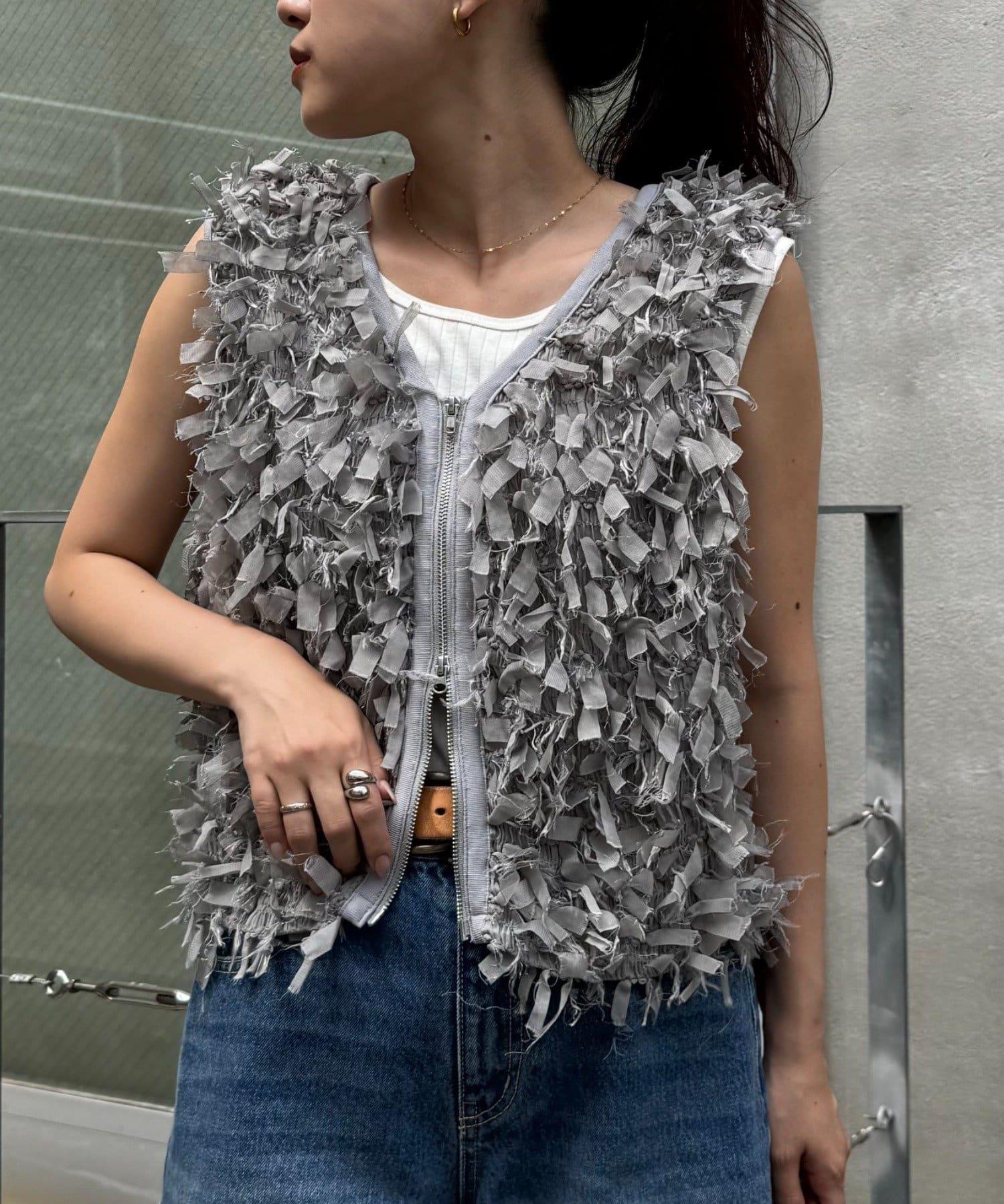 帶有蓬鬆絲帶流蘇的馬甲引人注目。