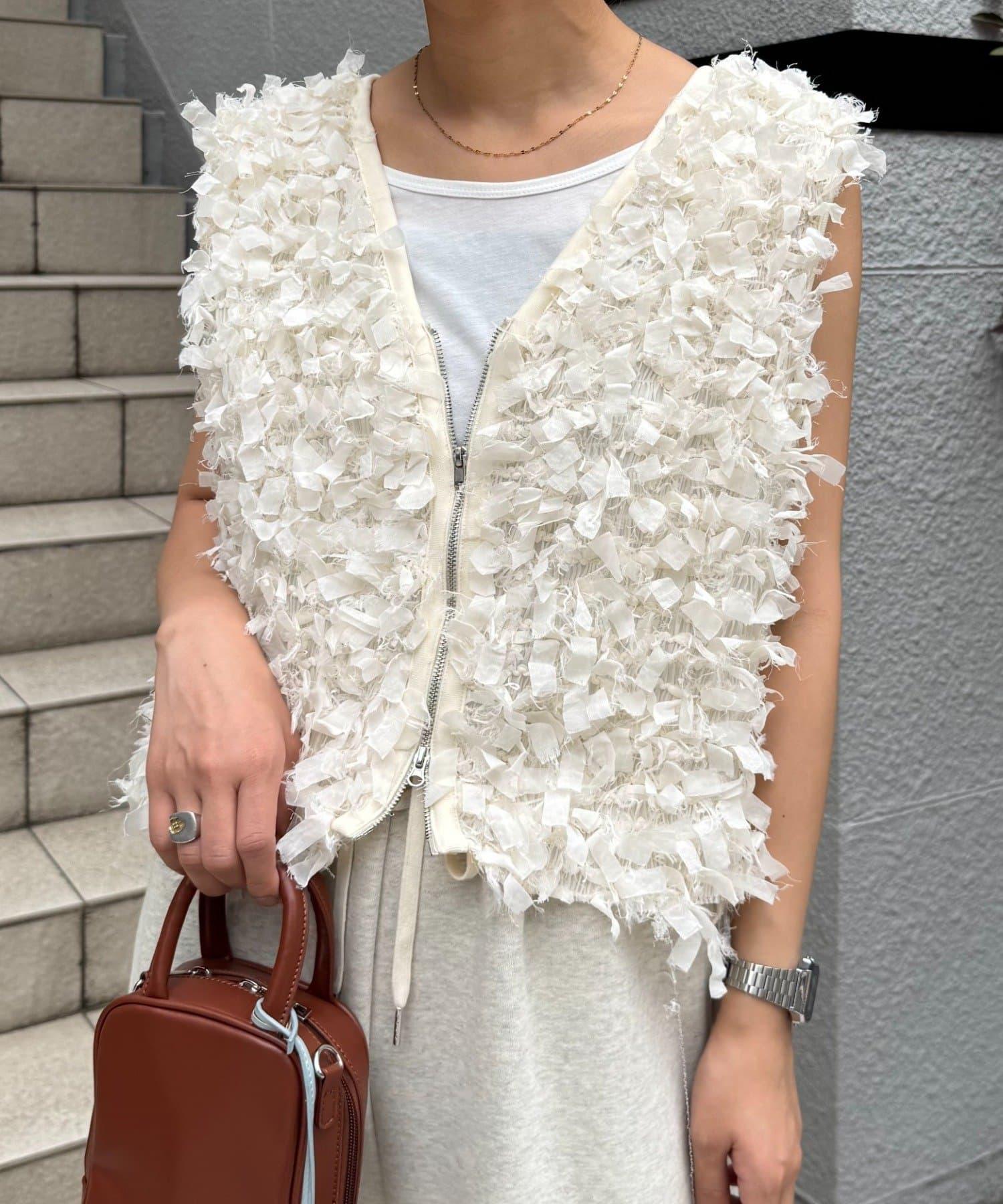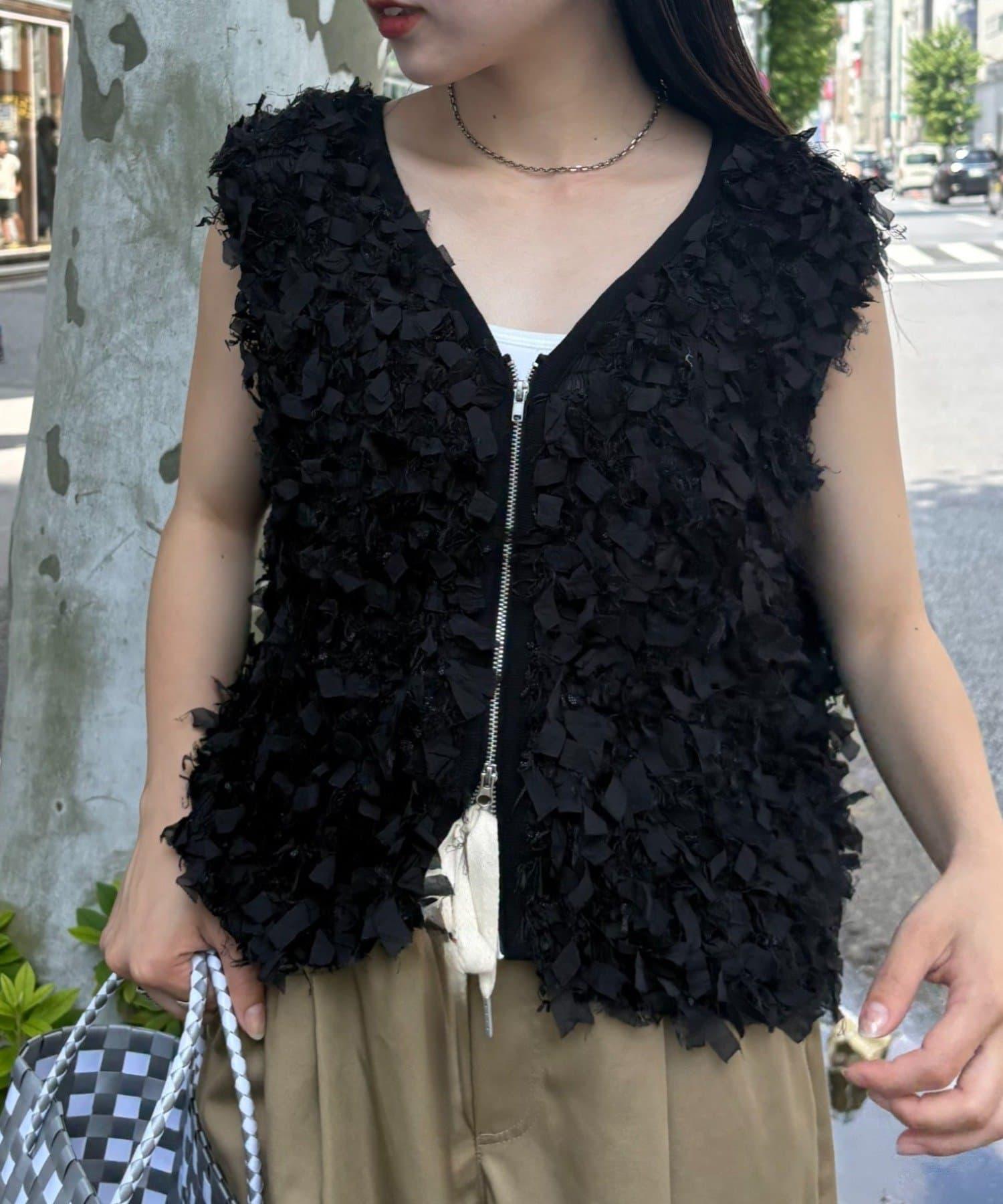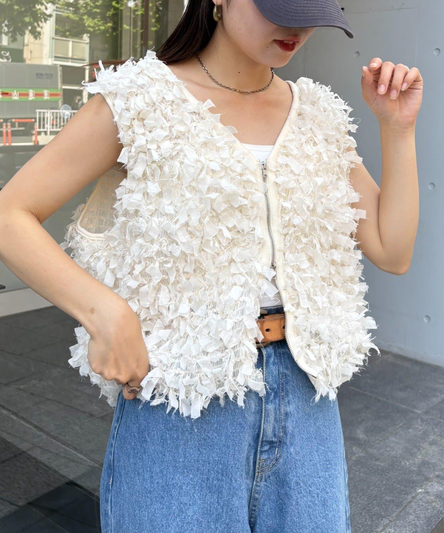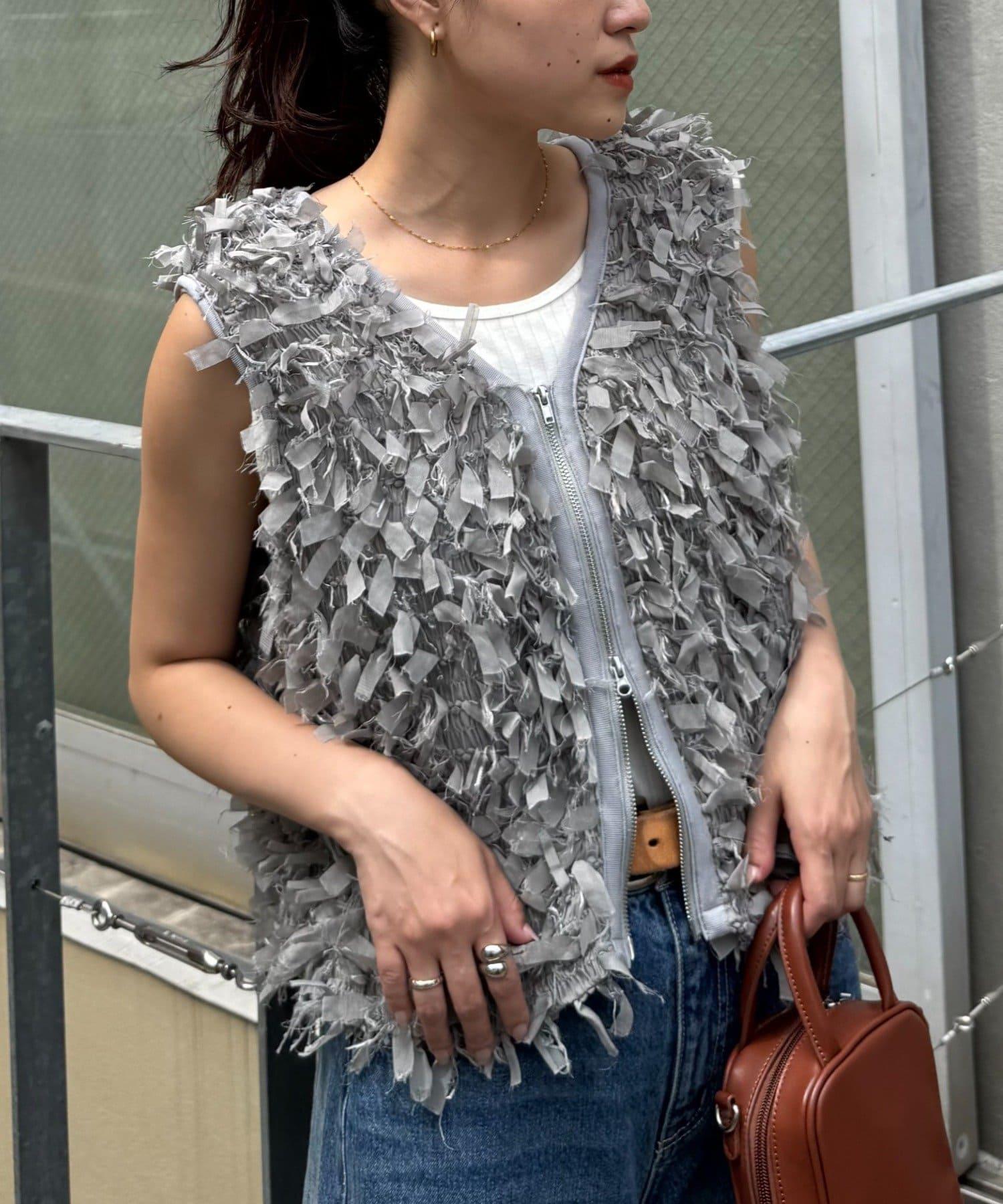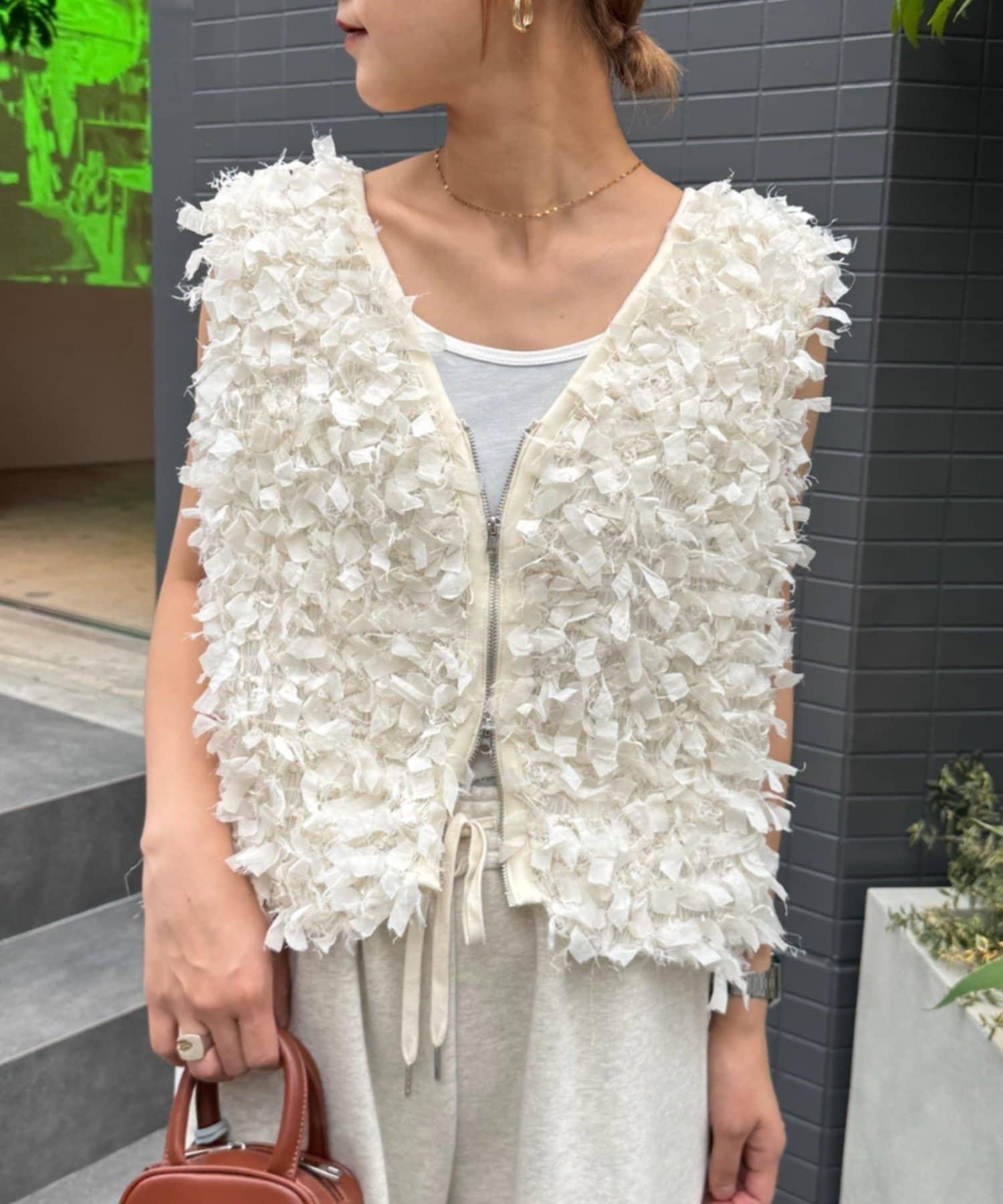 帶有蓬鬆絲帶流蘇的馬甲引人注目。