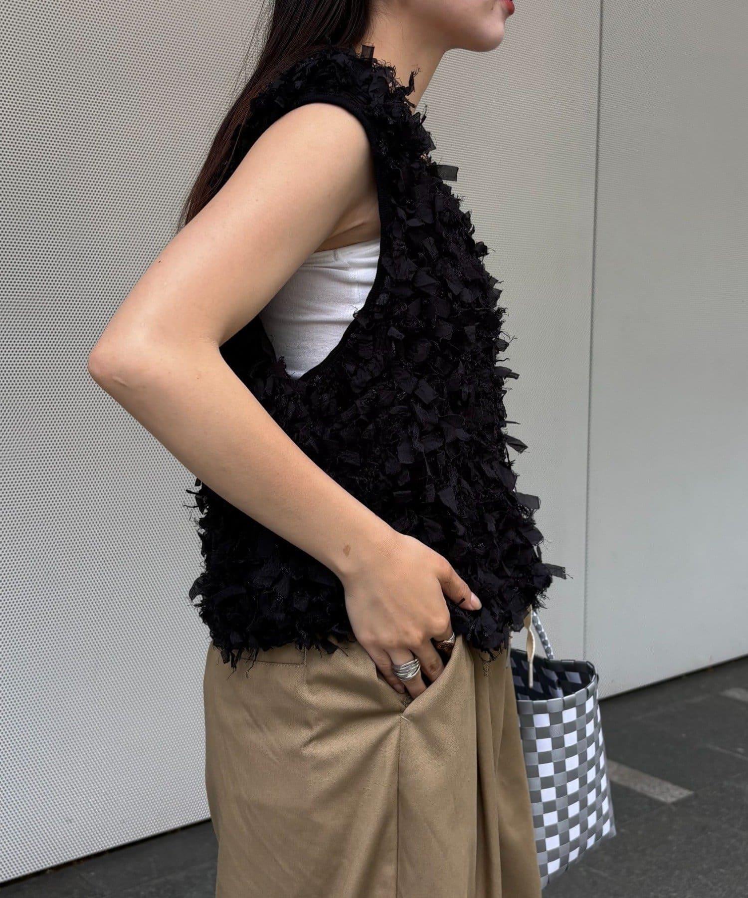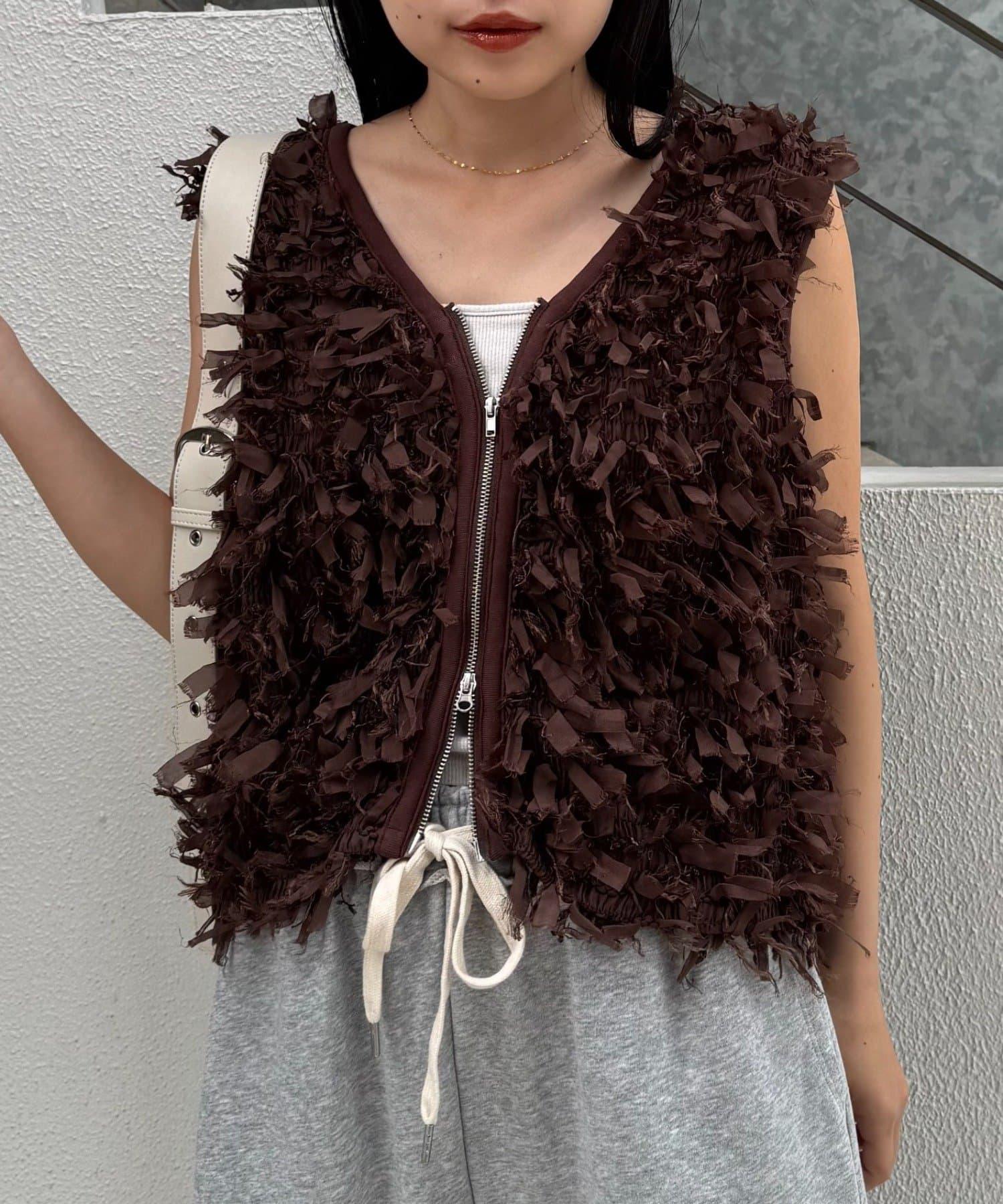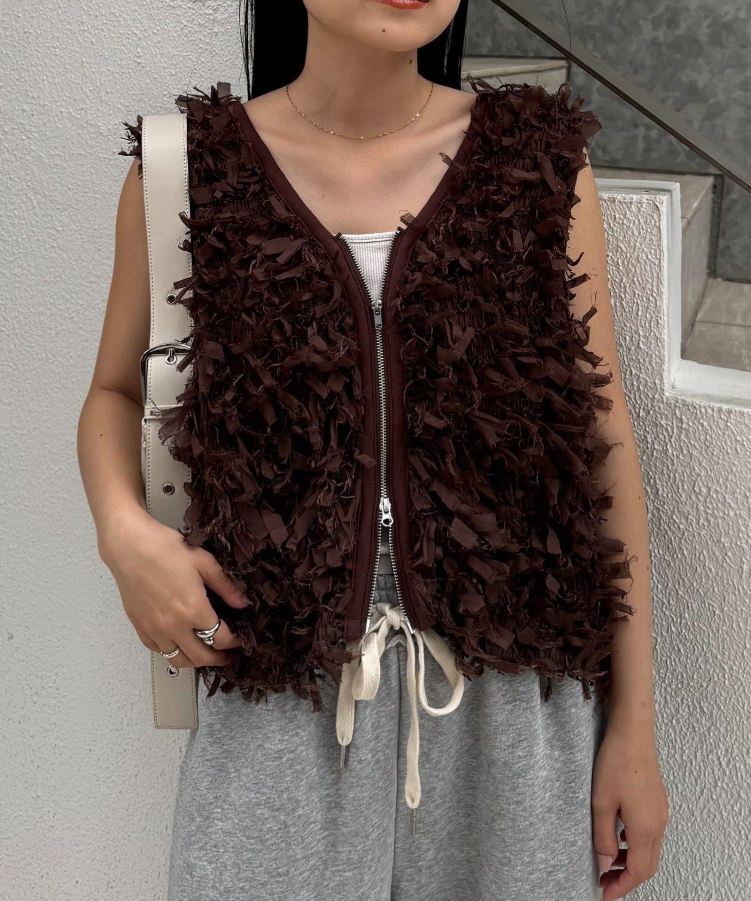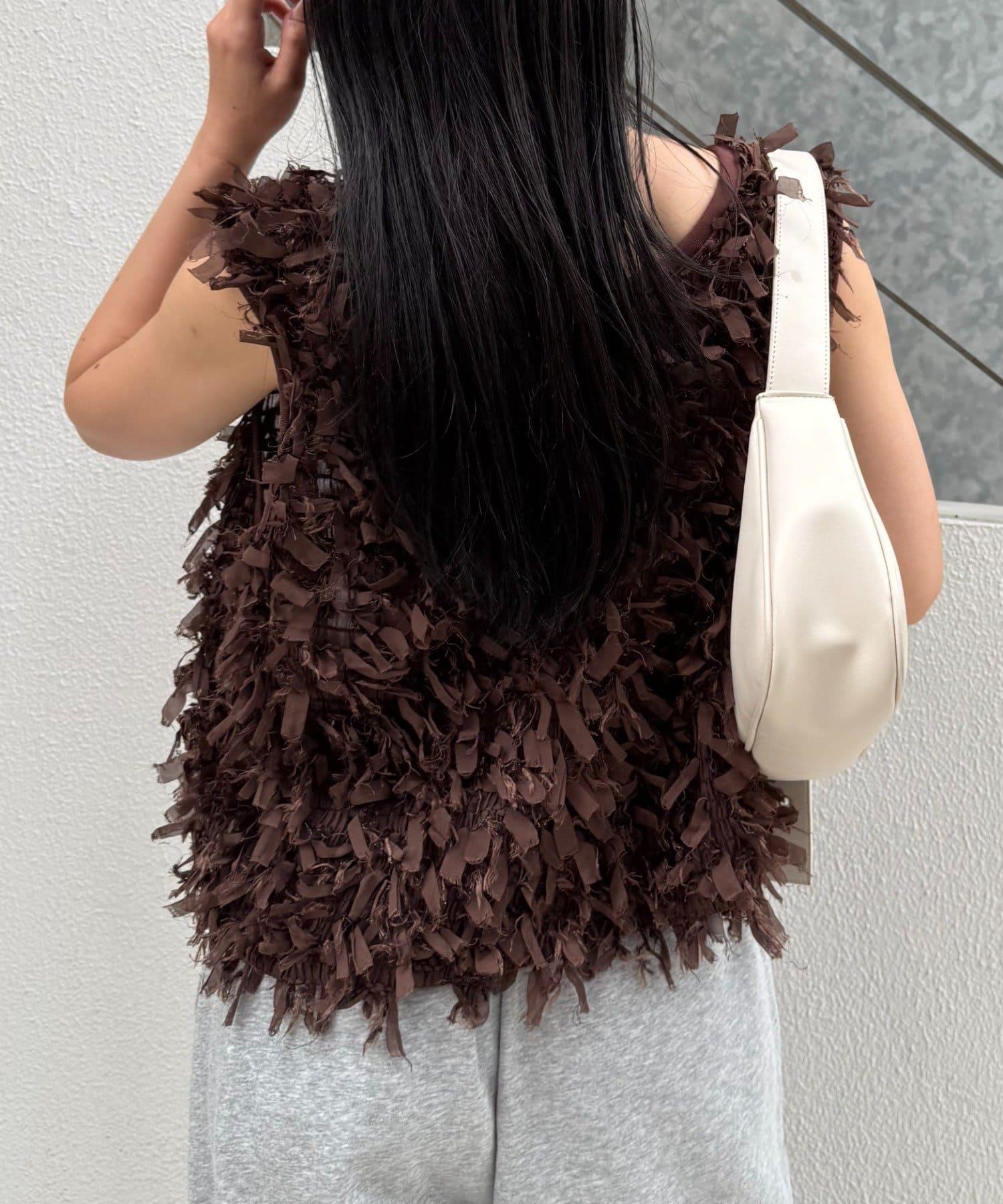 帶有蓬鬆絲帶流蘇的馬甲引人注目。