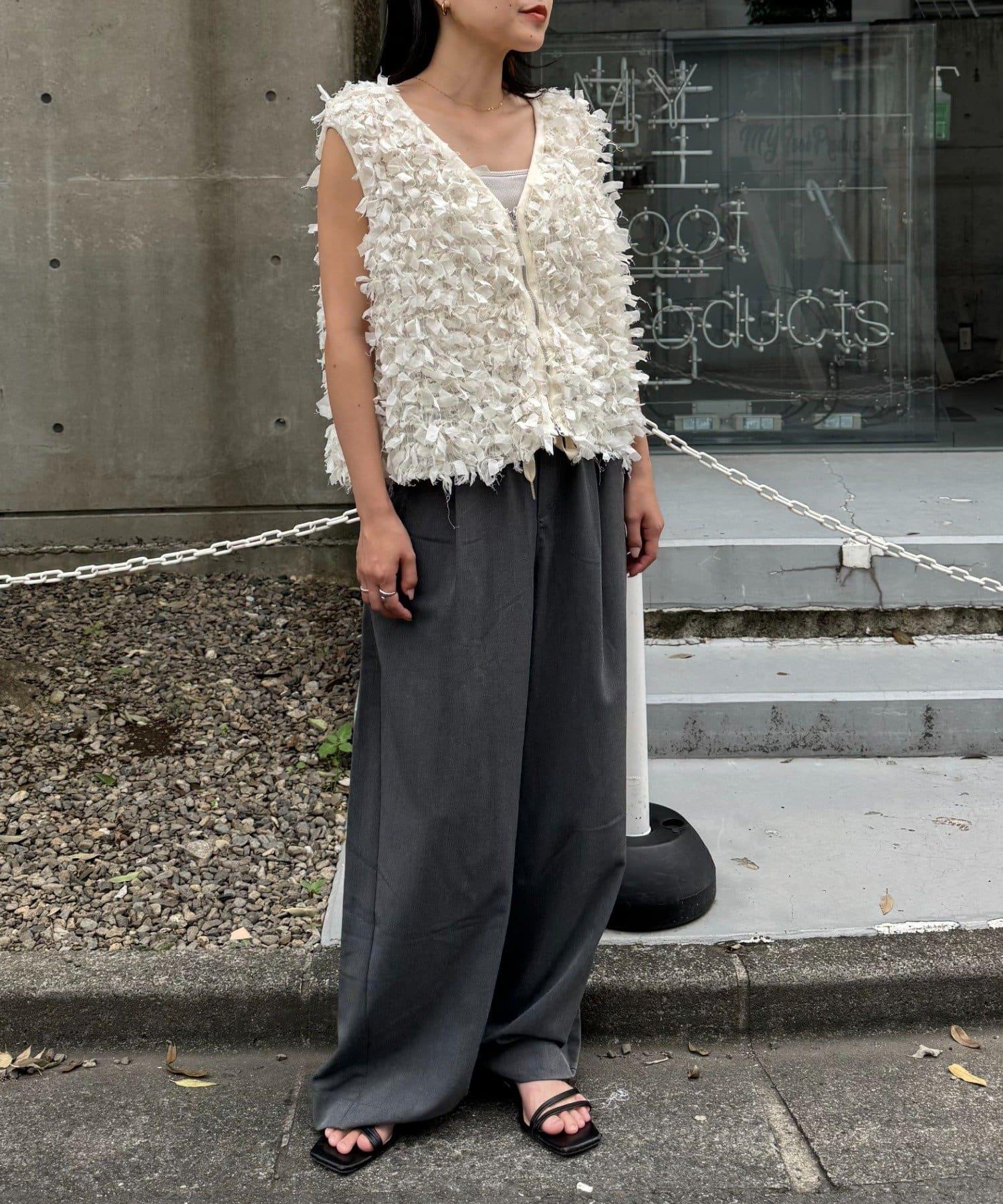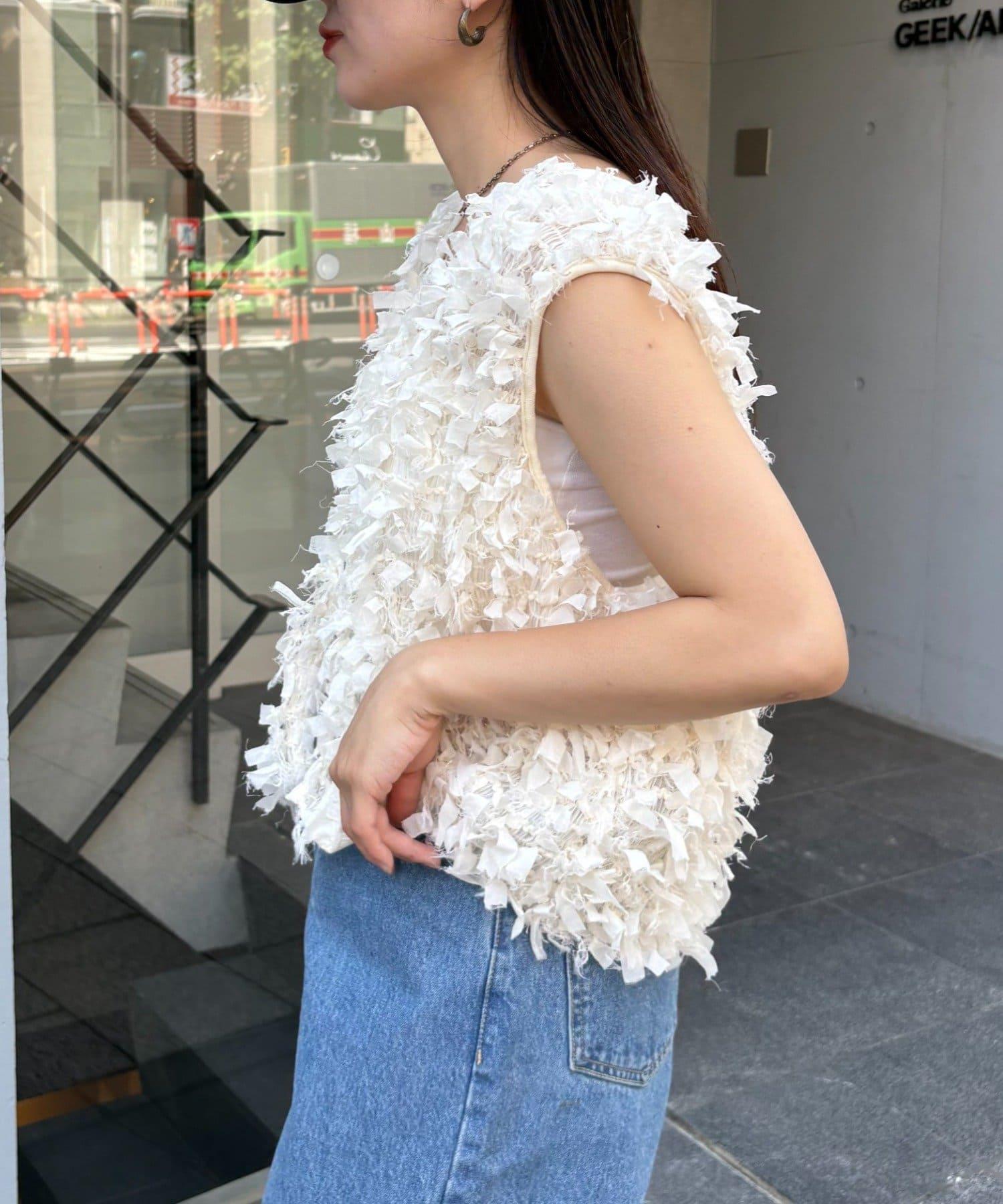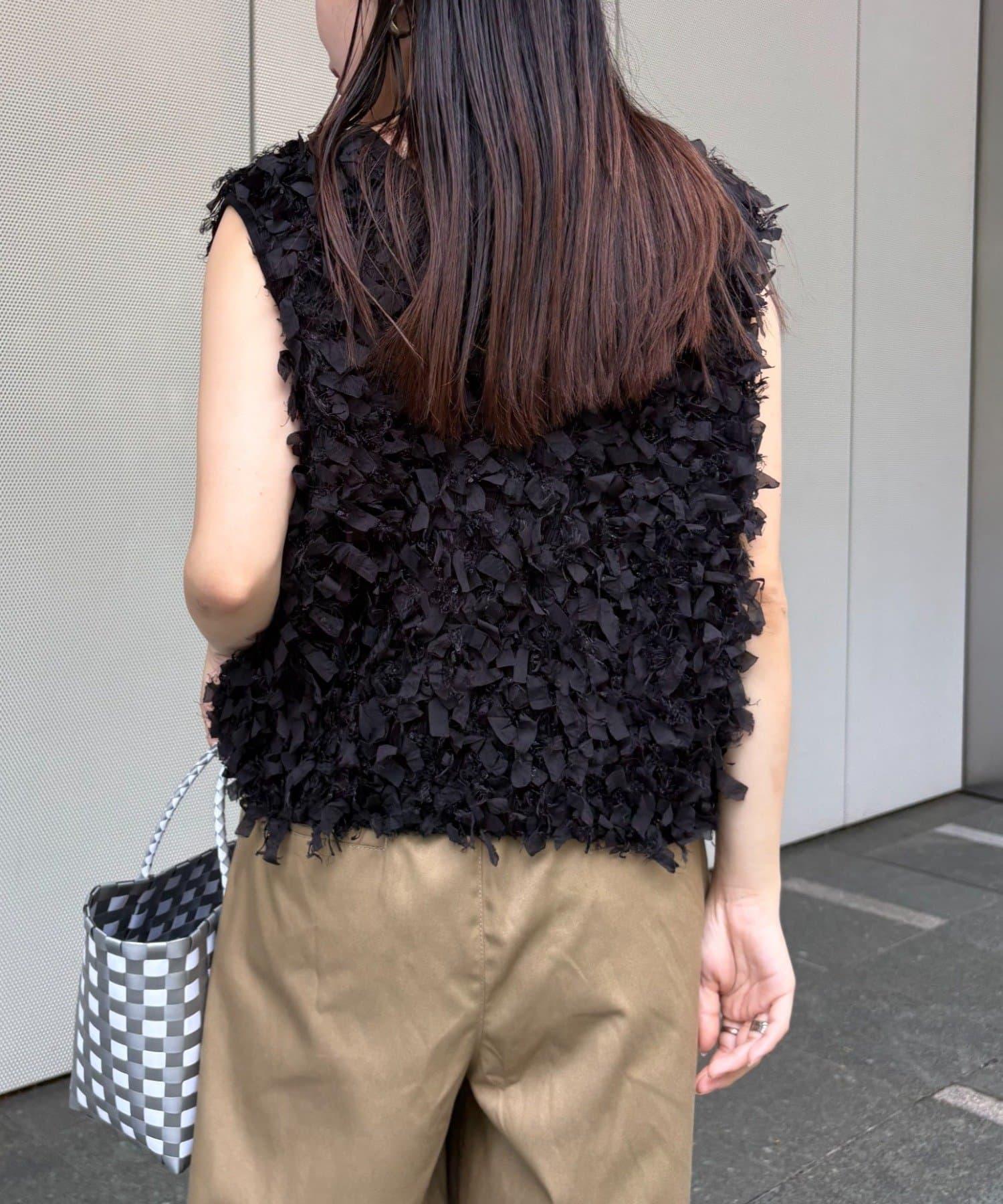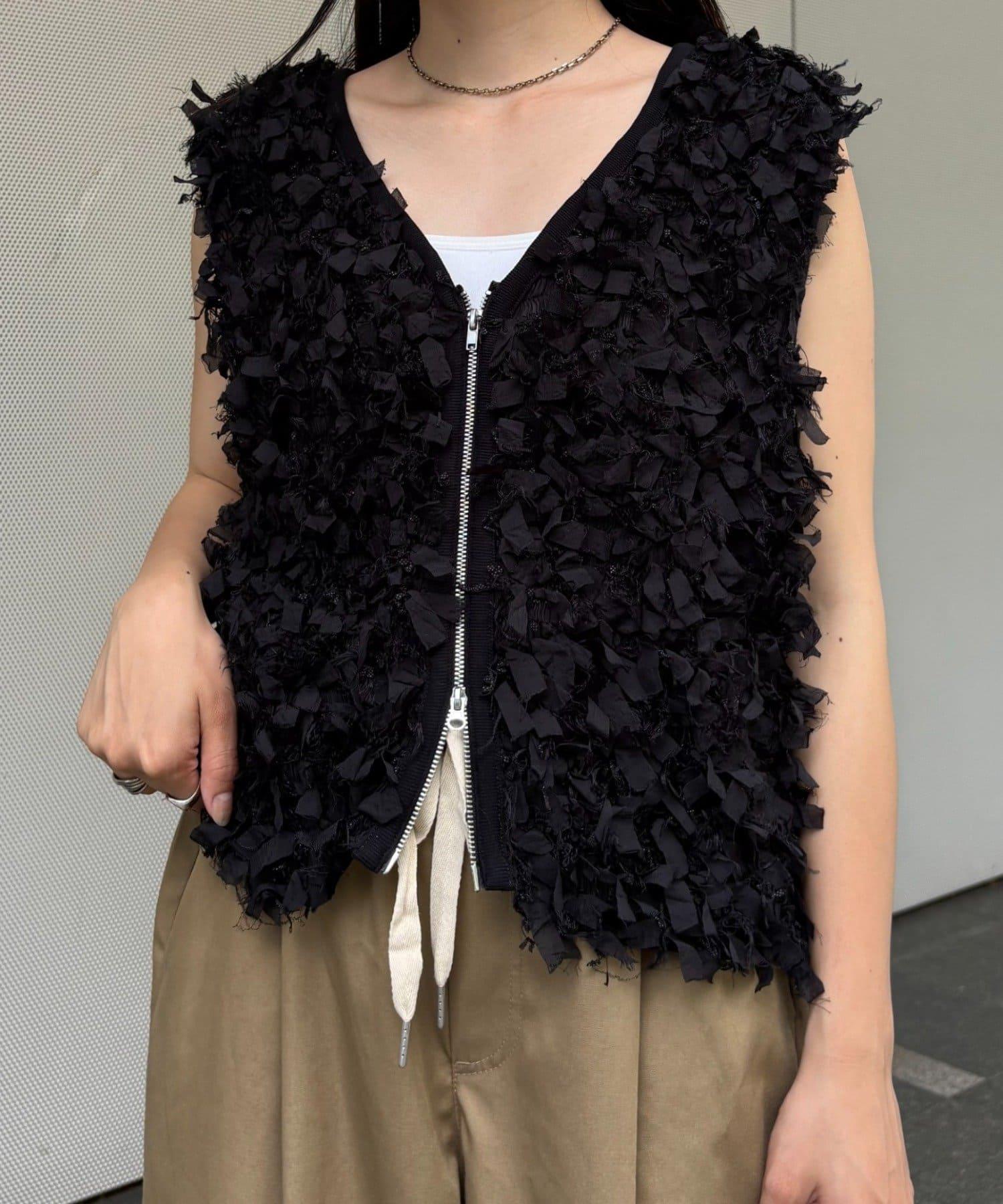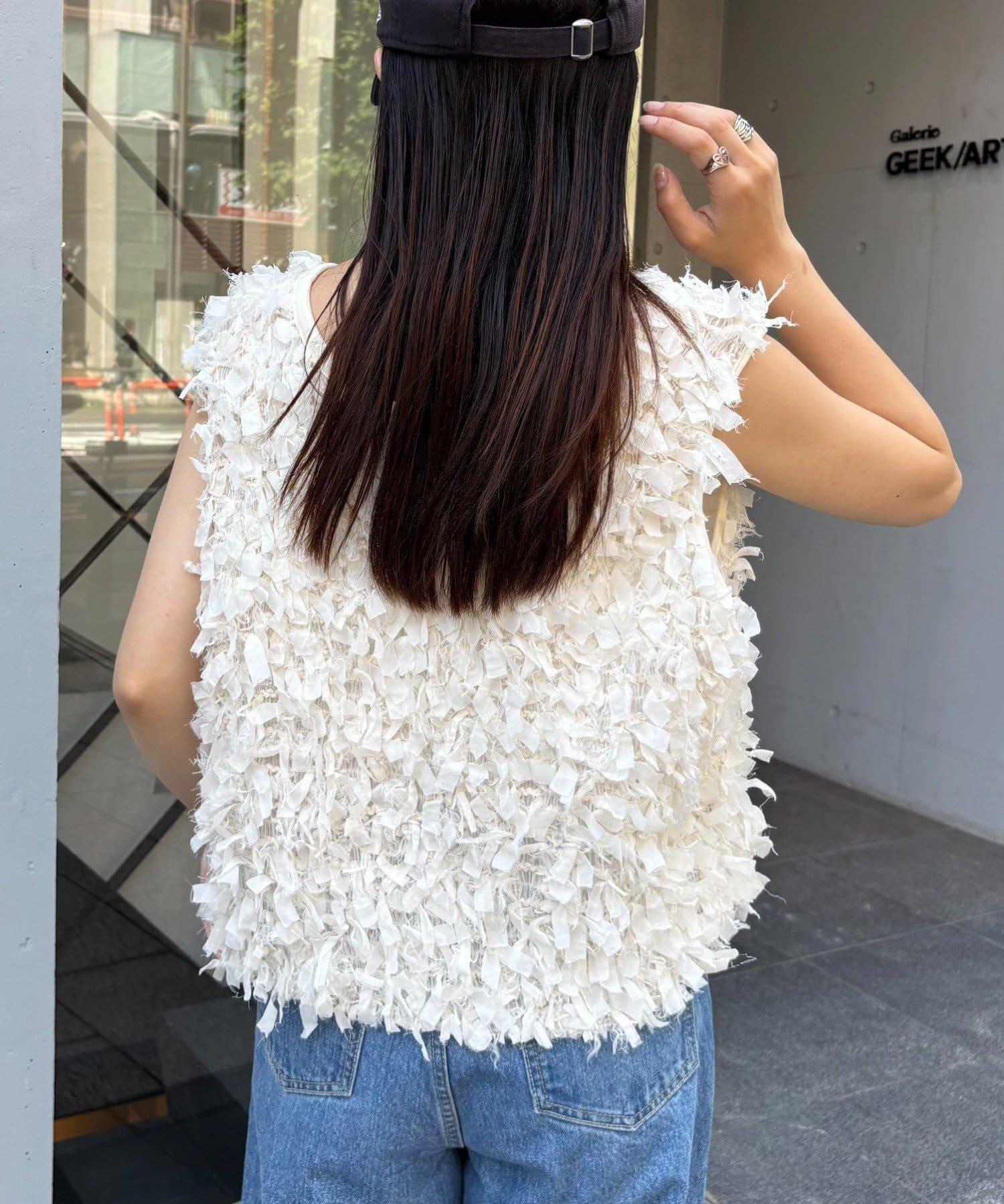 帶有蓬鬆絲帶流蘇的馬甲引人注目。