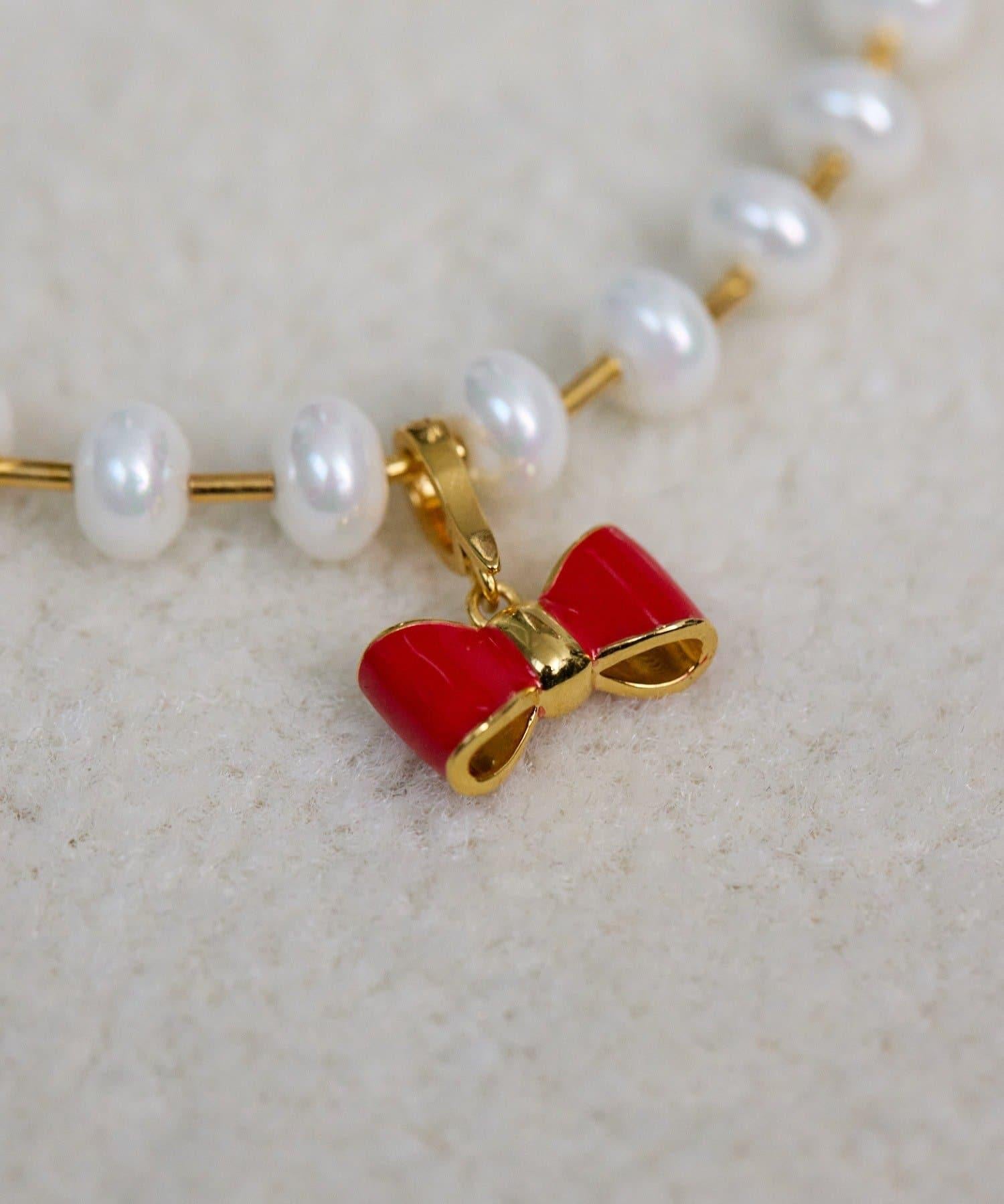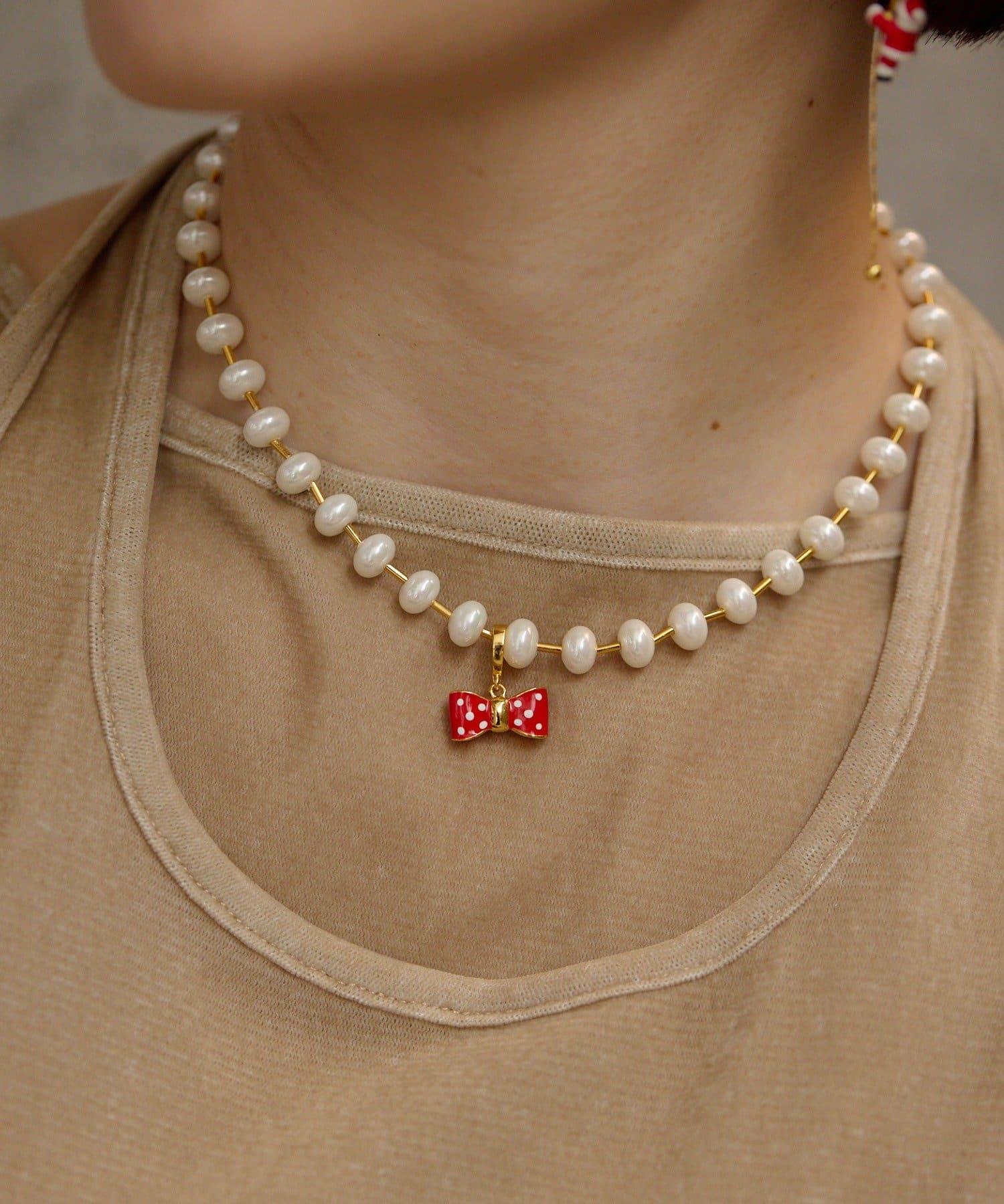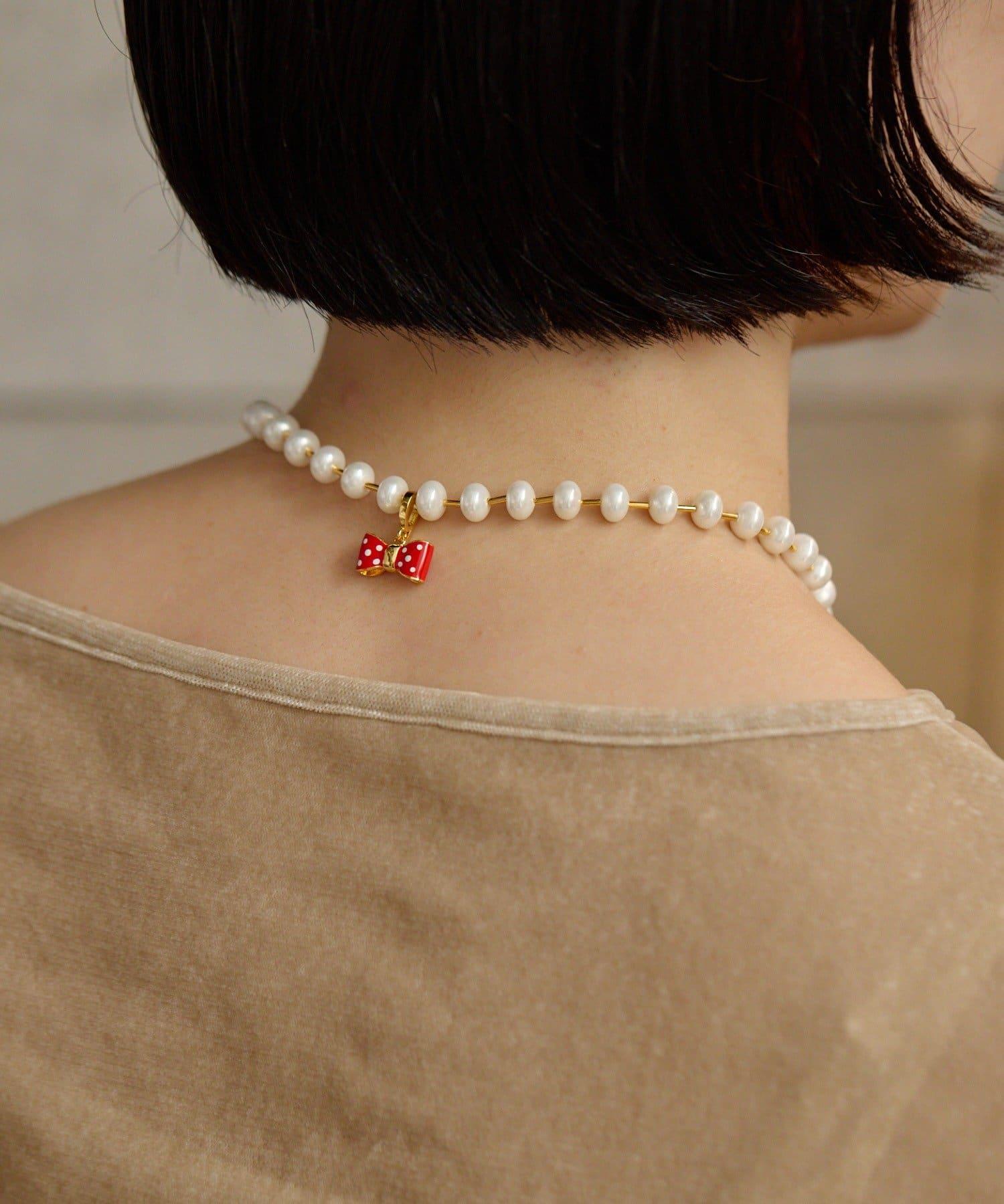 如果取下緞帶,還可以作為一條簡單的珍珠項鍊使用,在各種場合都能派上用場。
