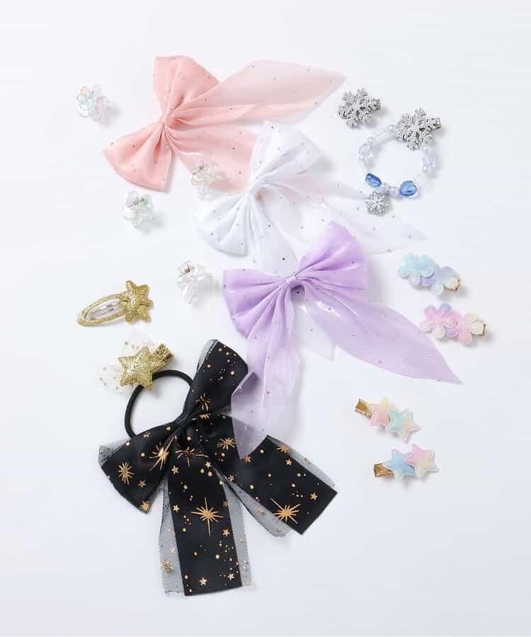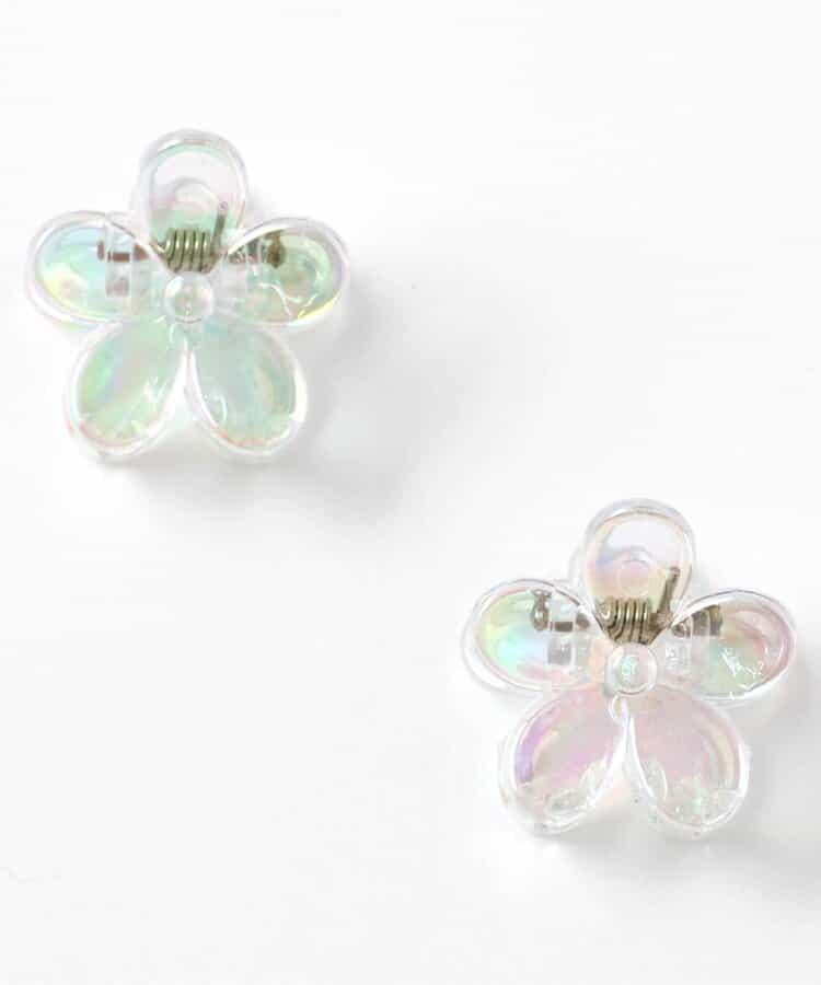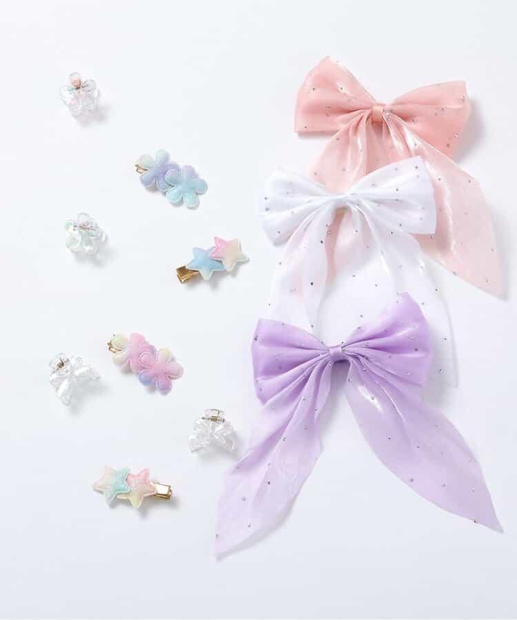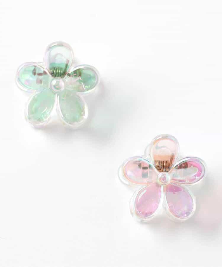 apres les cours "絲帶與花朵透明發夾 2 件套 "是一款時尚單品,為自然風格增添了微妙的設計感 *建議在學校和書包中使用。