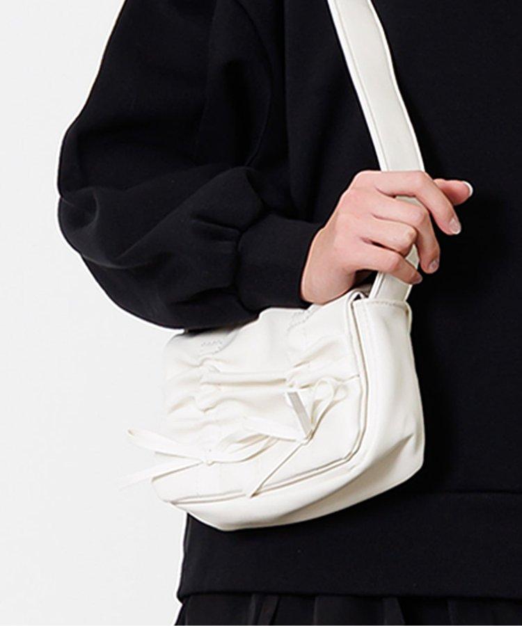 迷你手袋採用時尚的緞帶聚攏設計,大小適中,可放置錢包、手機和配飾。