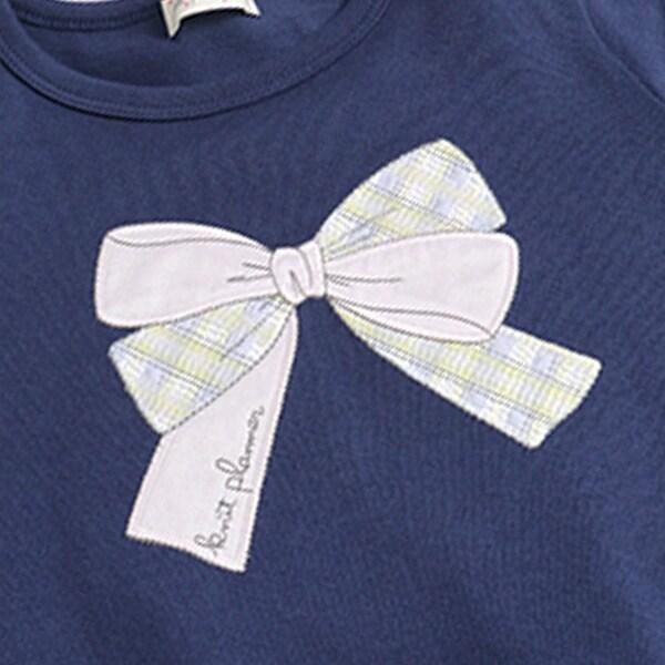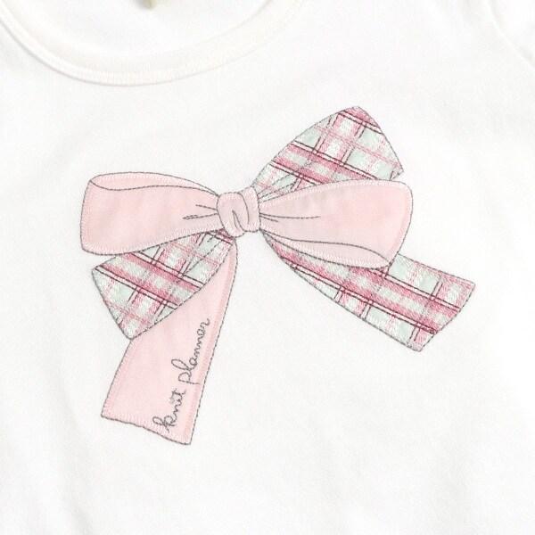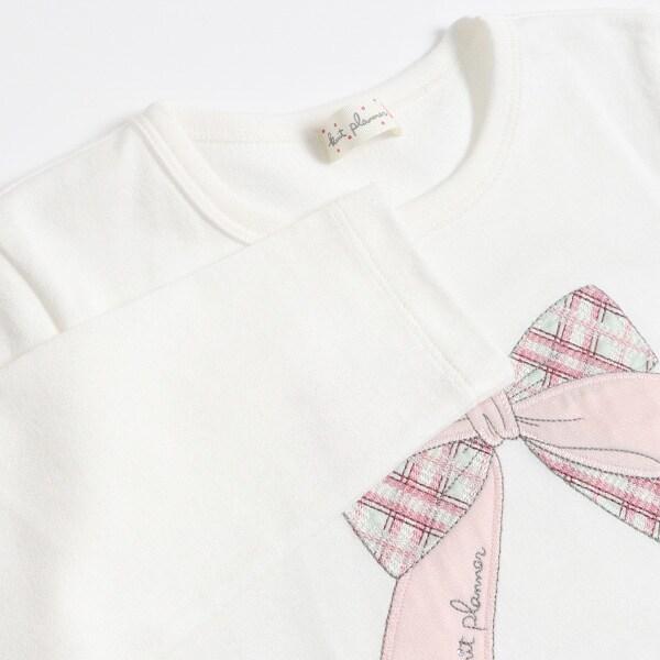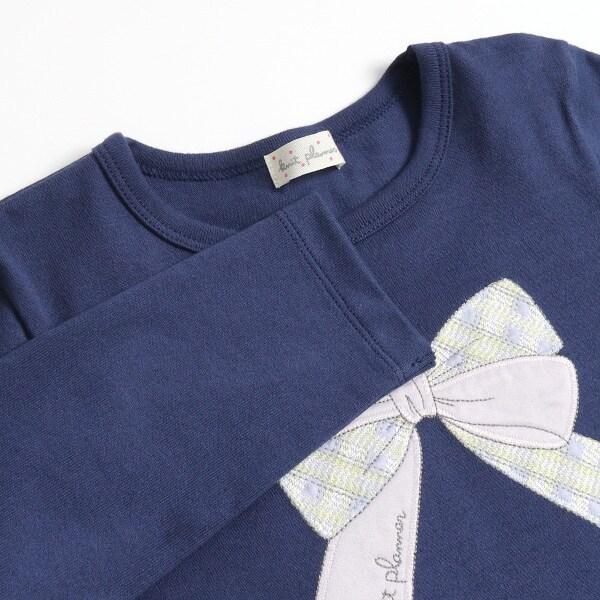 針織長袖 T 恤,飾有醒目的緞帶貼花。後幅採用 A 字形設計,下襬可隨意調整,簡約時尚,熠熠生輝。