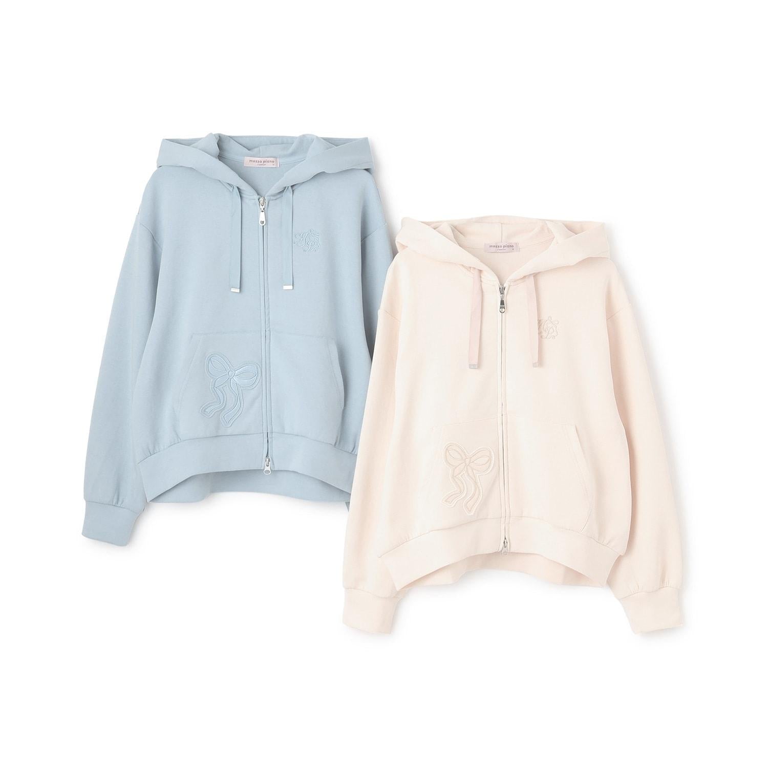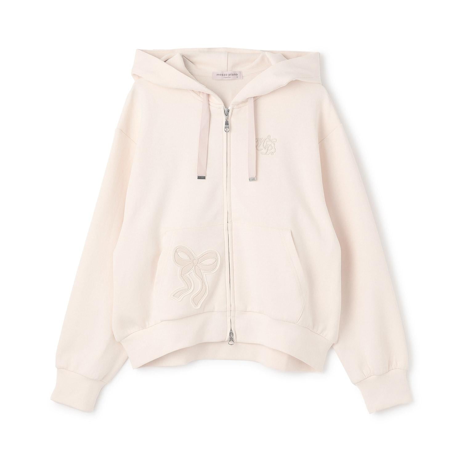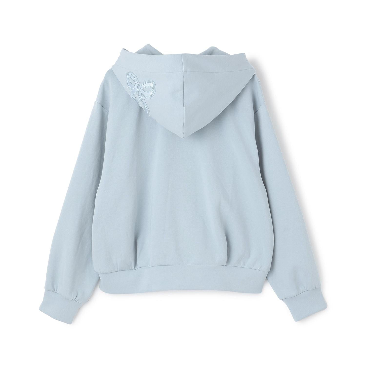 蝴蝶結貼飾雙拉鍊連帽衛衣