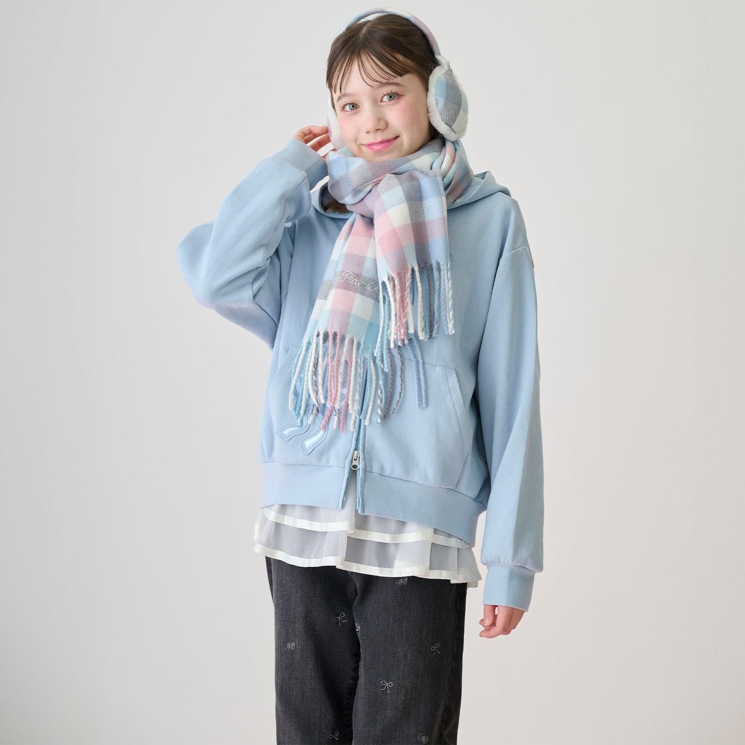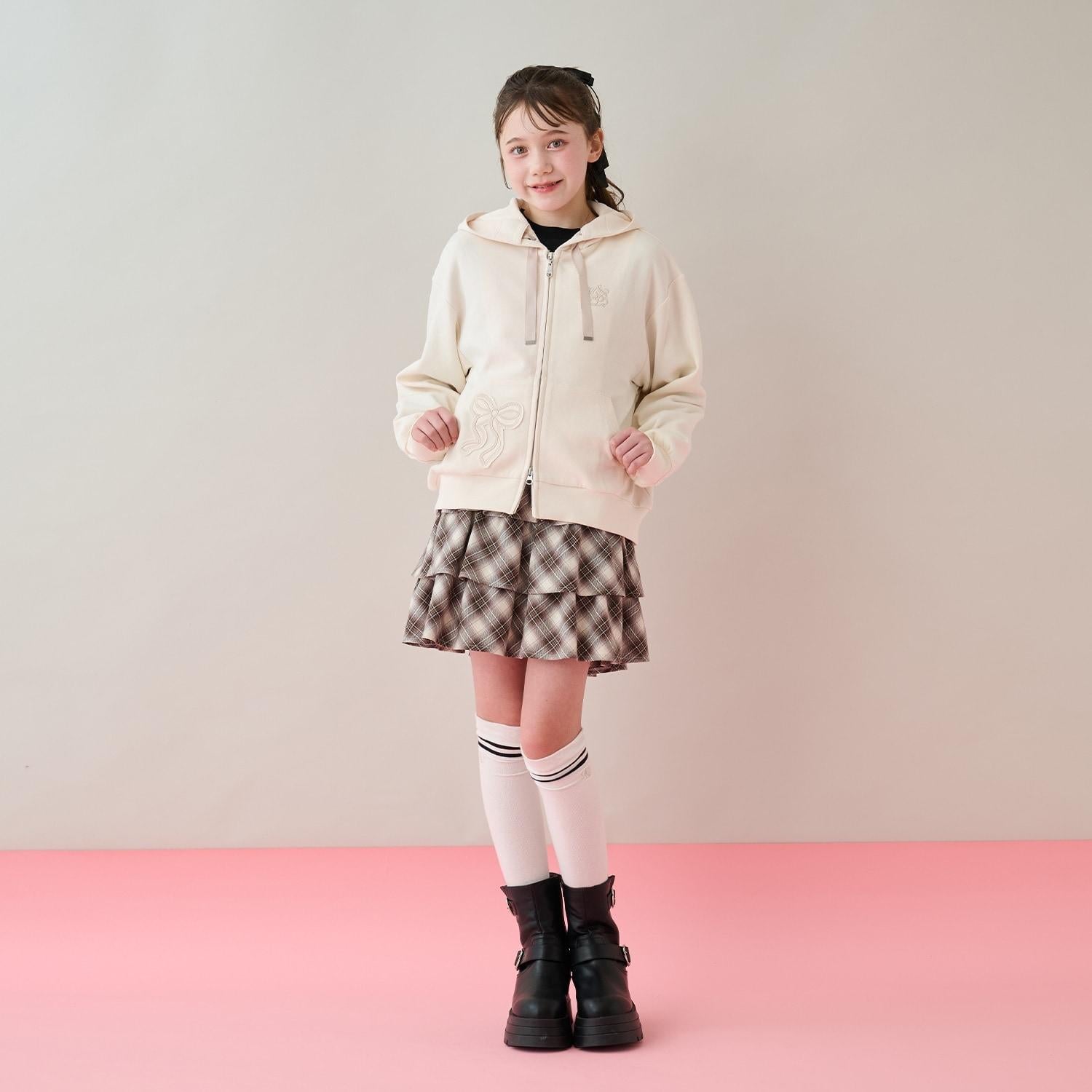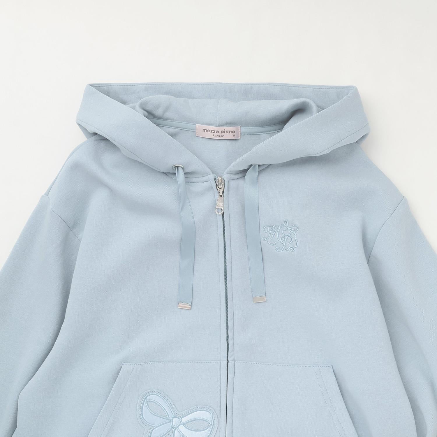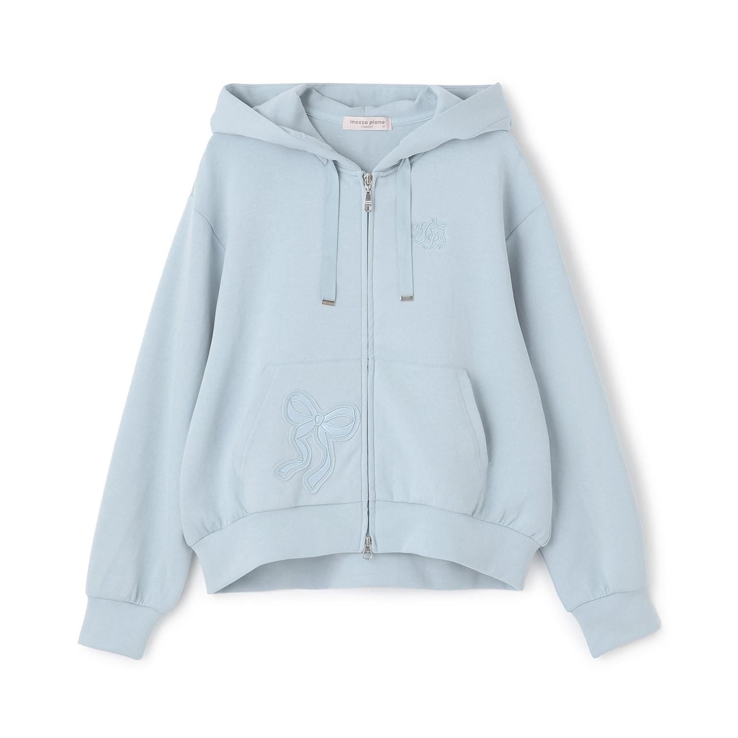 蝴蝶結貼飾雙拉鍊連帽衛衣