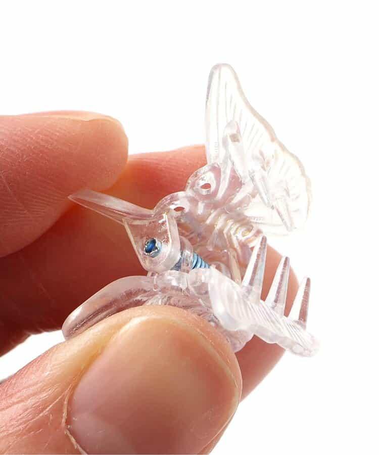 蝴蝶圖案的髮夾在光線照射下會閃爍出極光。