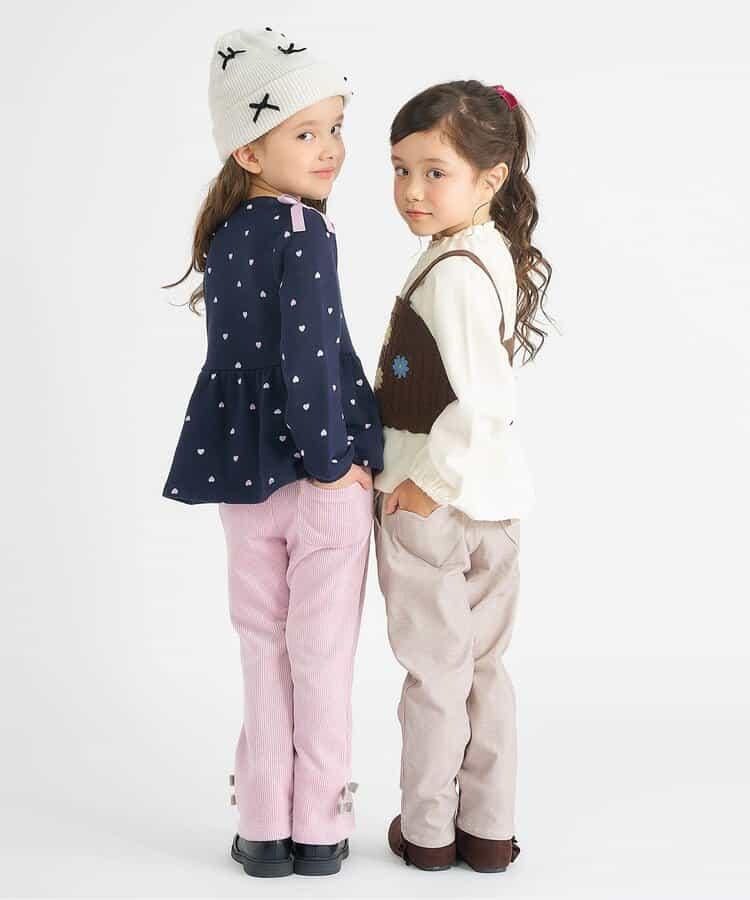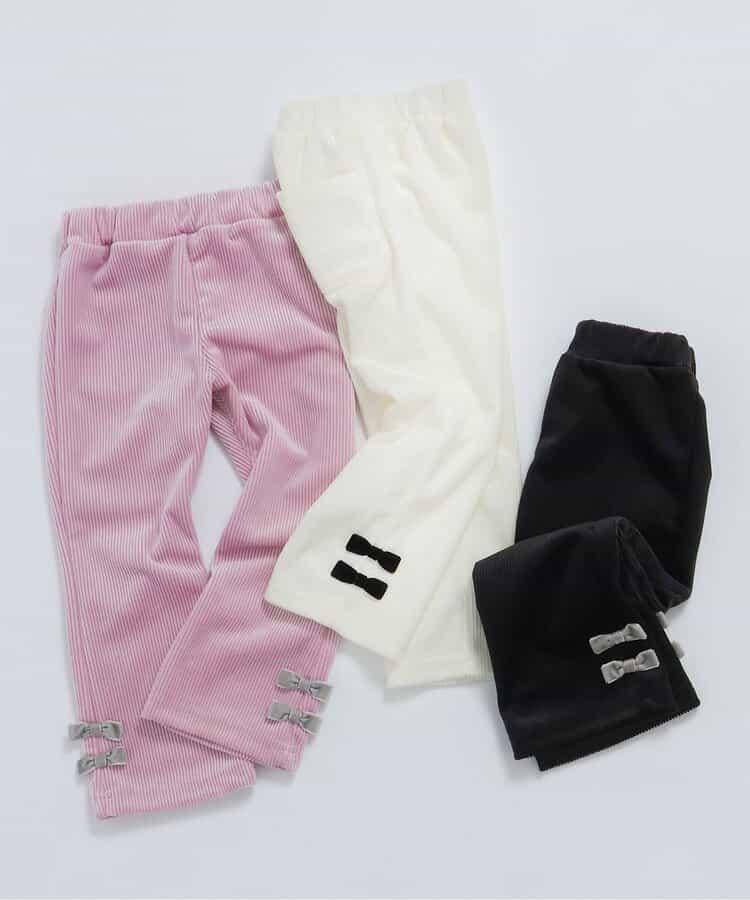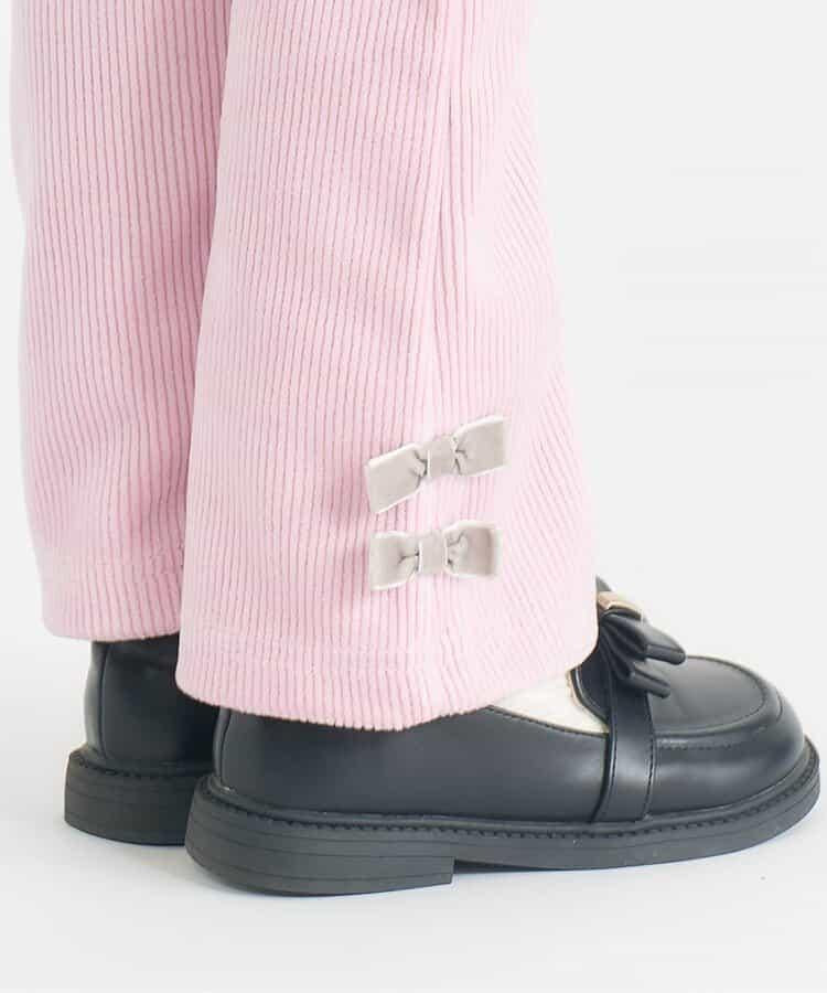 蝴蝶結針織燈芯絨可愛長褲 10分丈