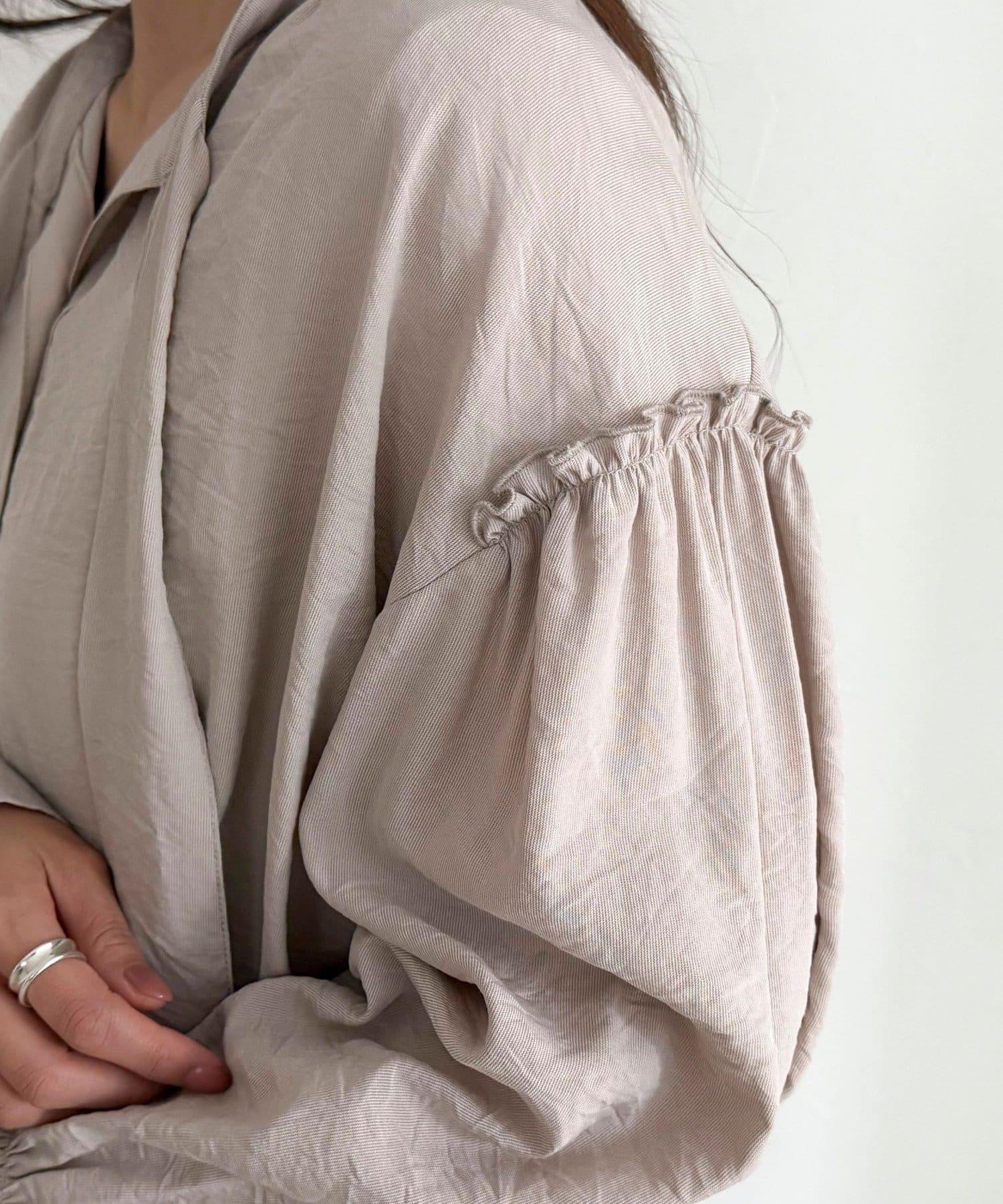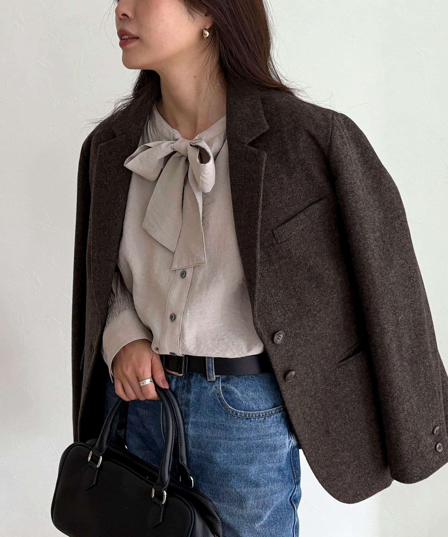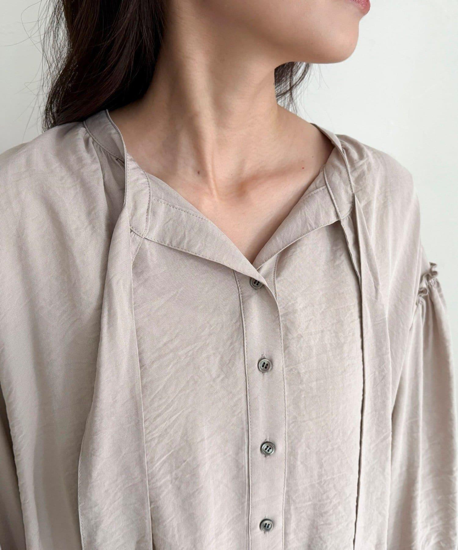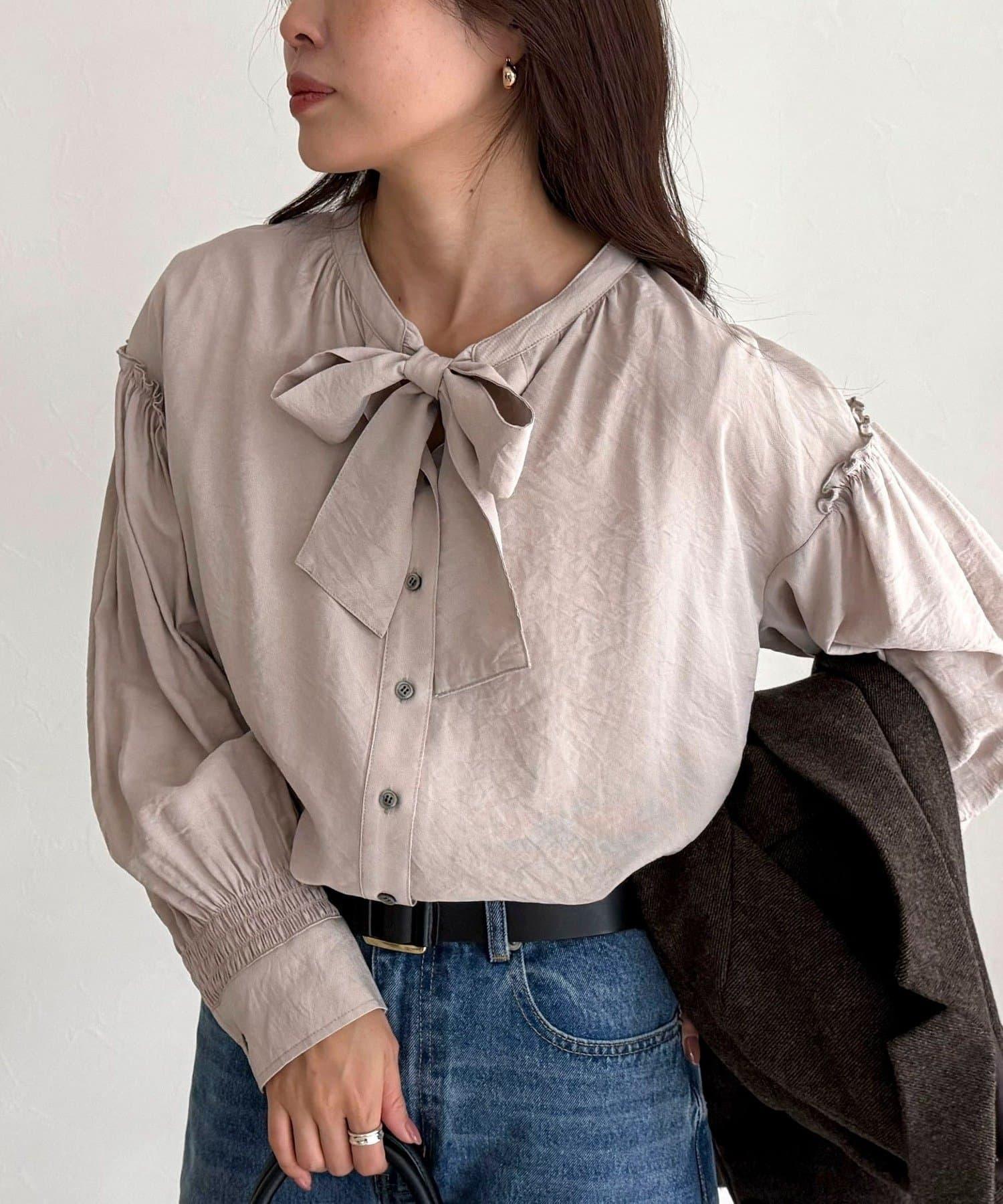 蝴蝶結領結和衣領周圍的褶皺設計,讓這件襯衫看起來女性味十足,魅力十足。