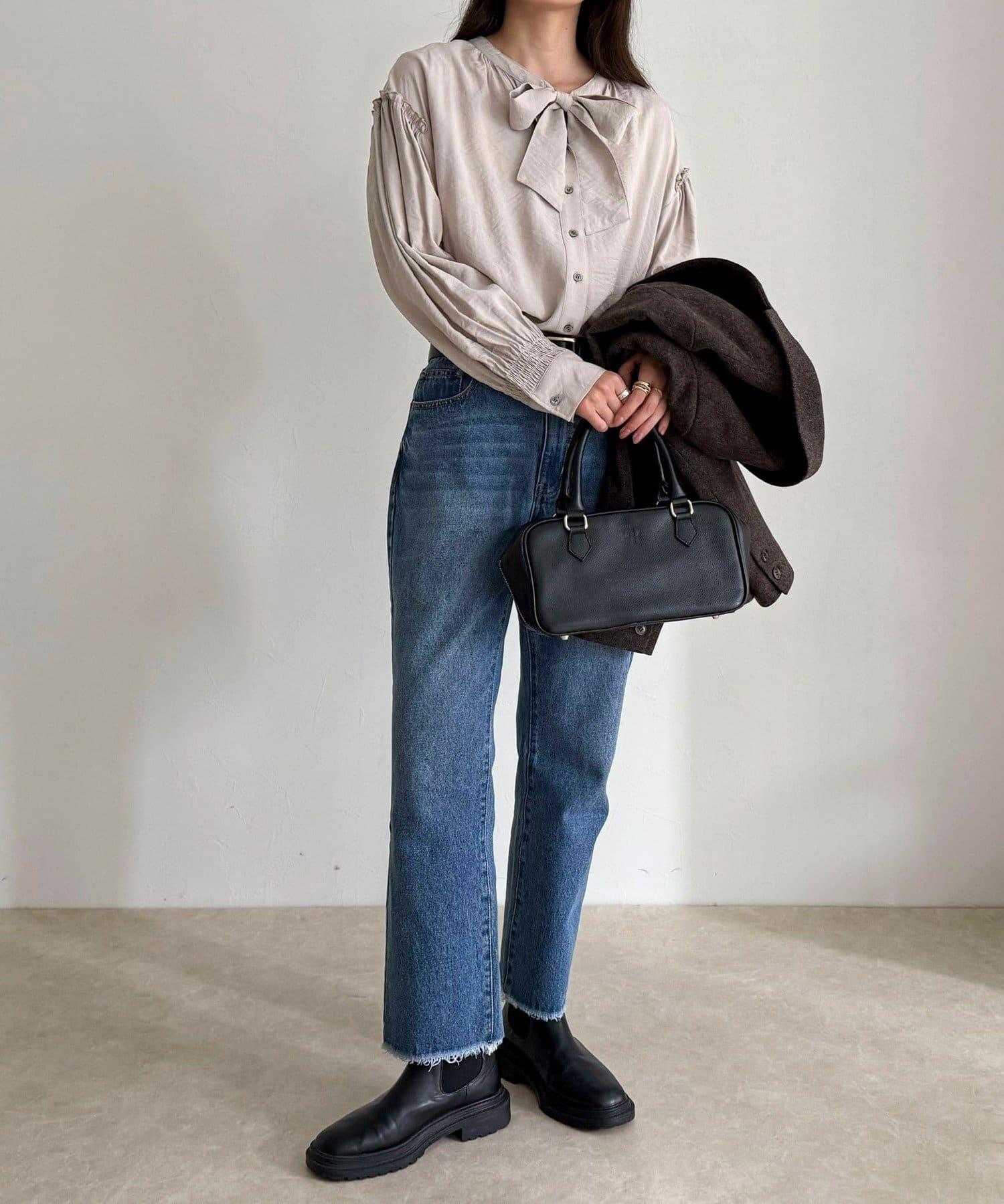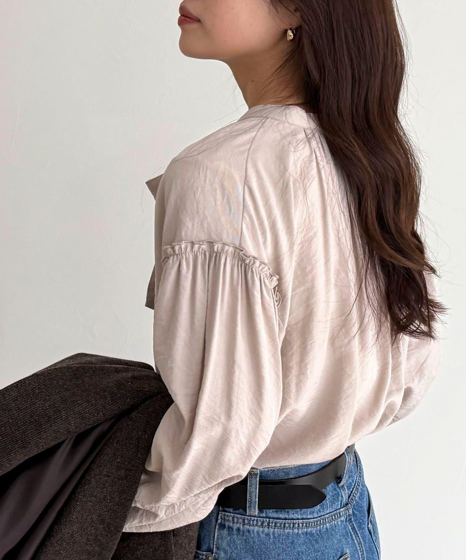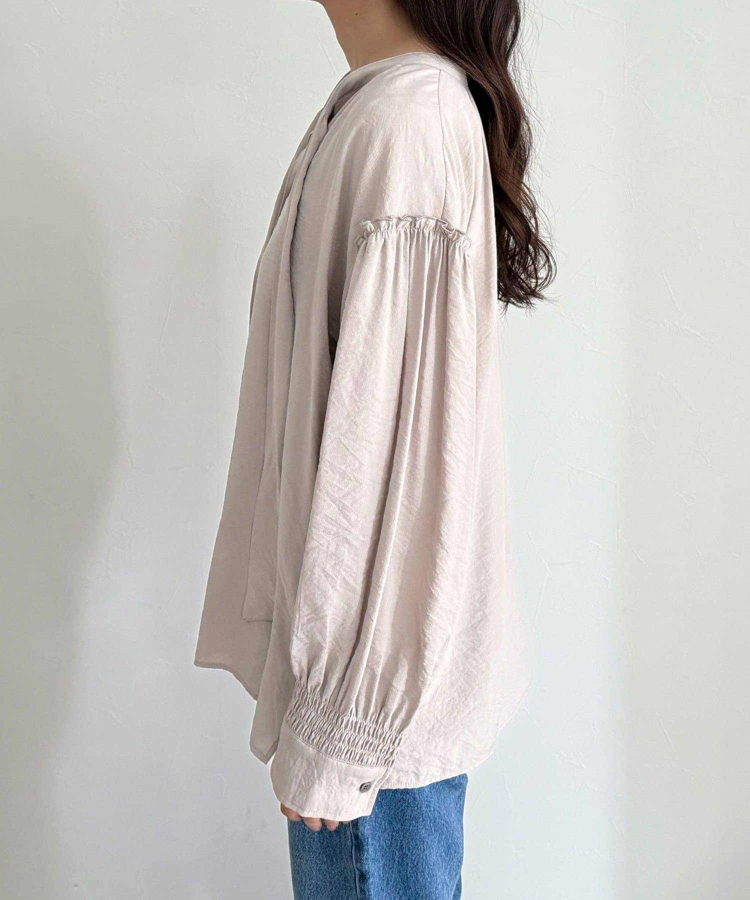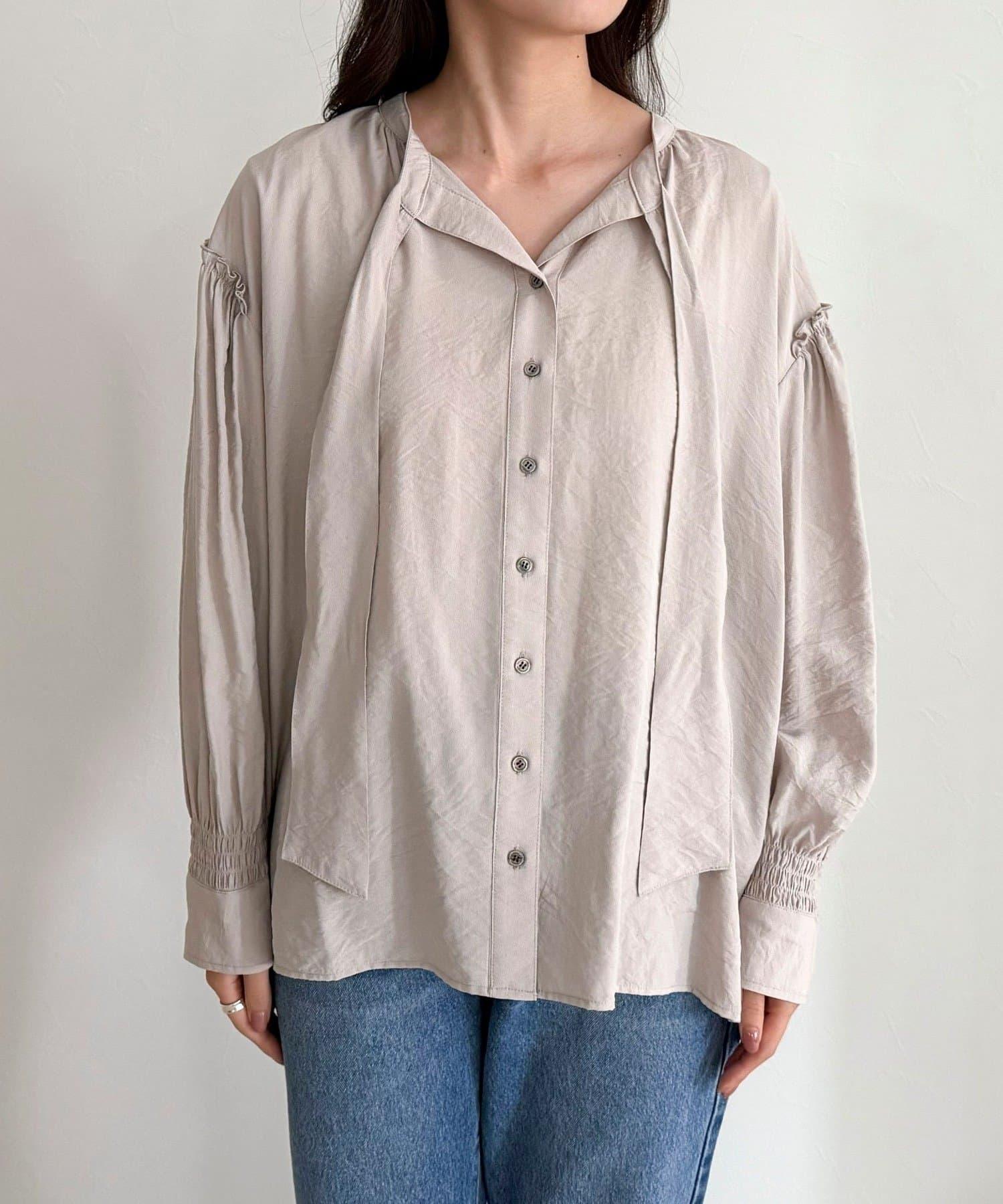 蝴蝶結領結和衣領周圍的褶皺設計,讓這件襯衫看起來女性味十足,魅力十足。