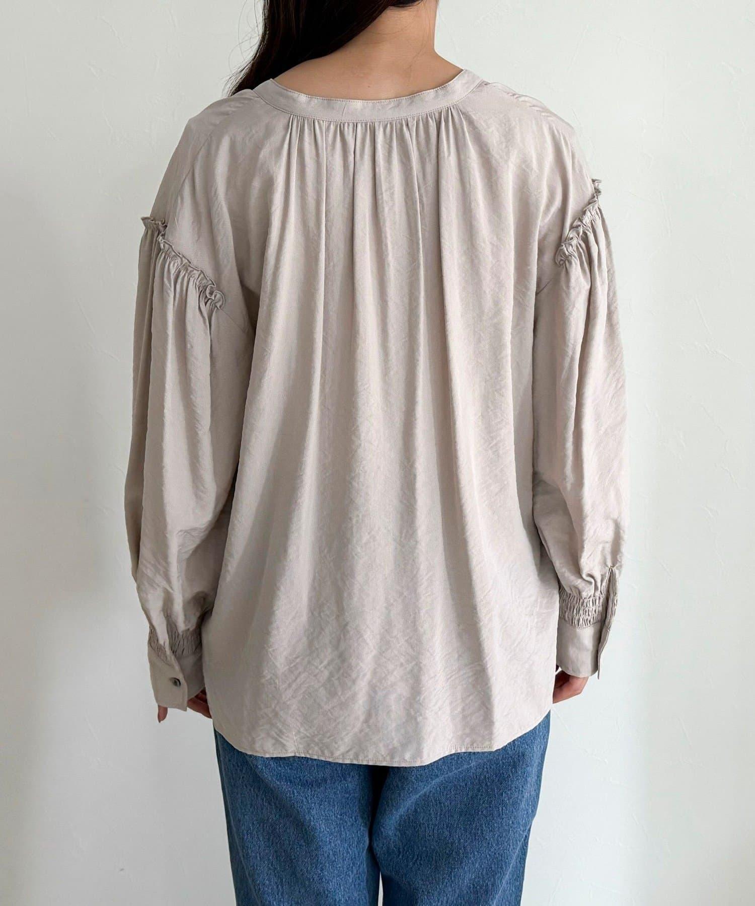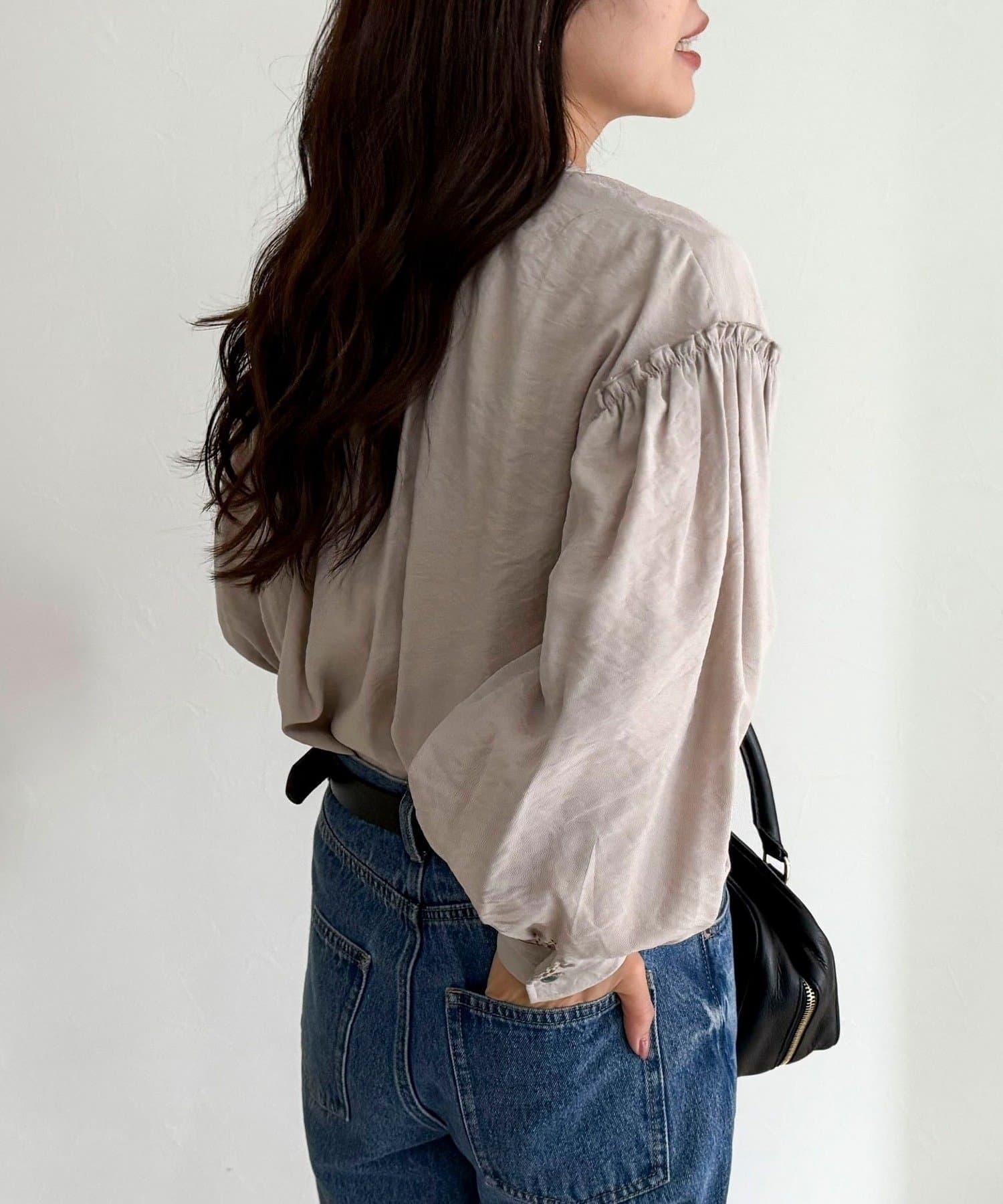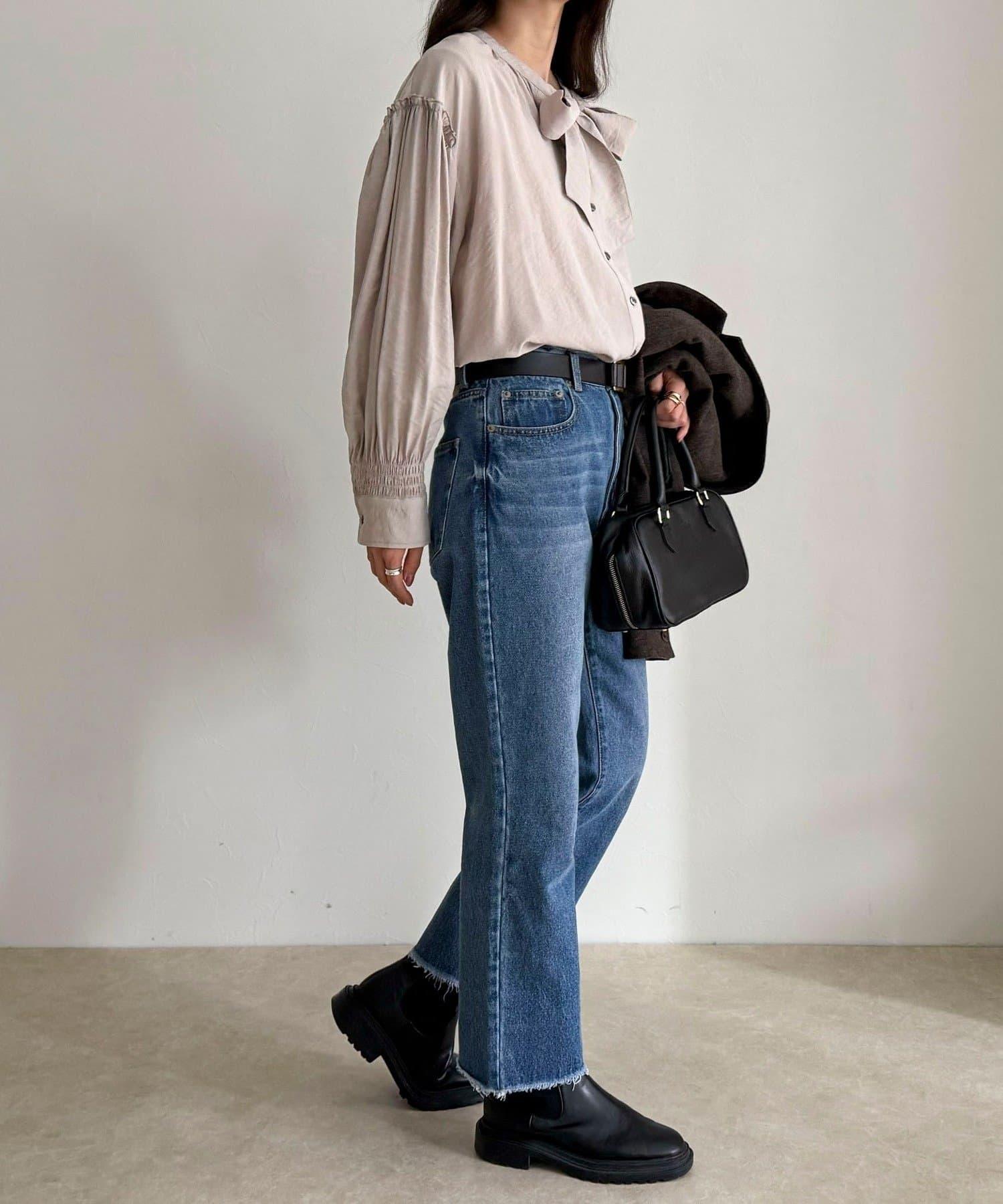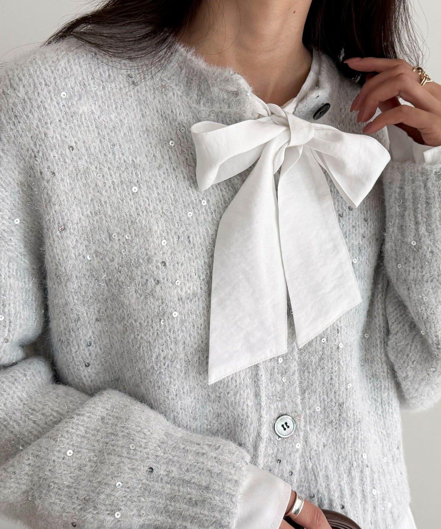 蝴蝶結領結和衣領周圍的褶皺設計,讓這件襯衫看起來女性味十足,魅力十足。