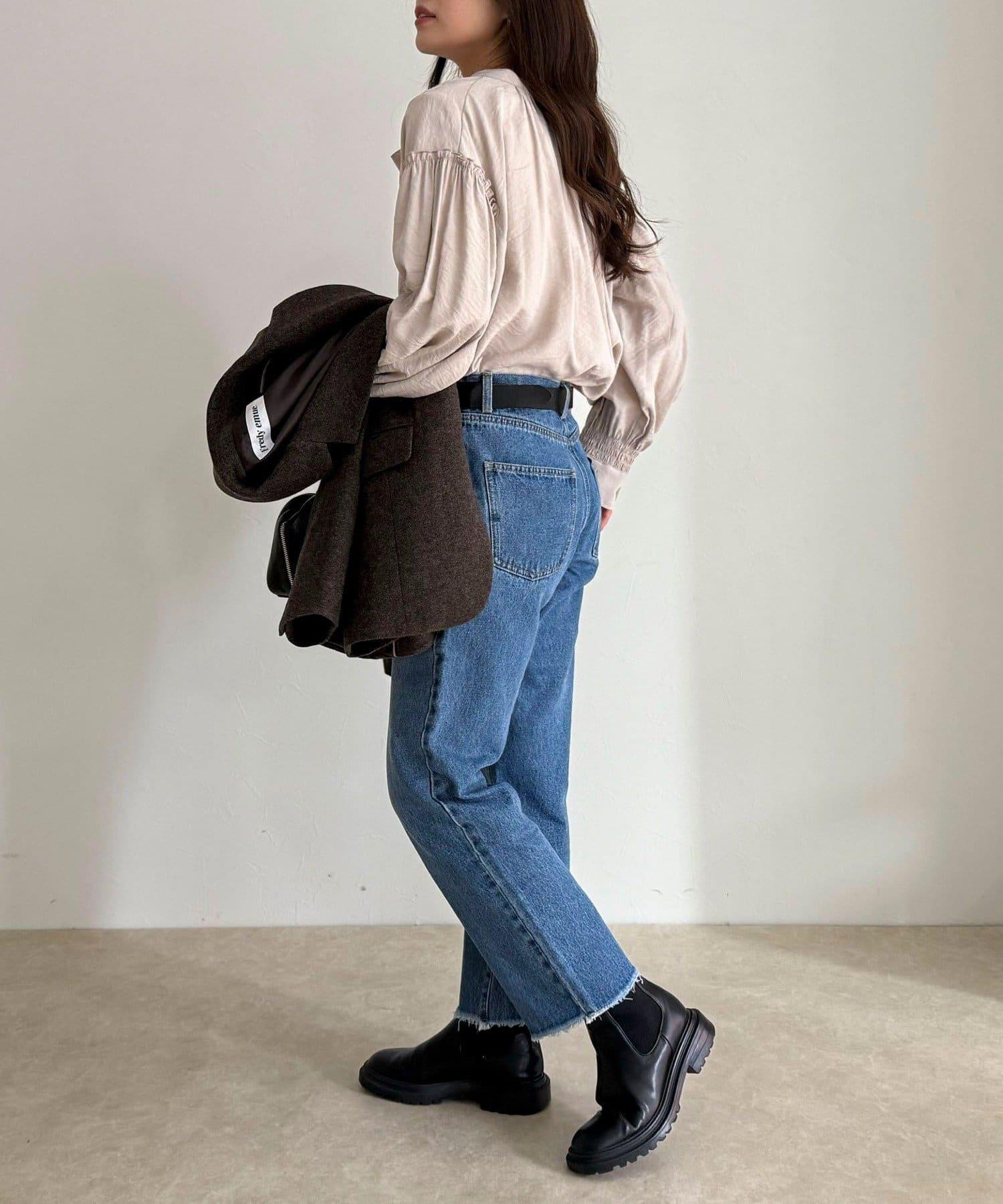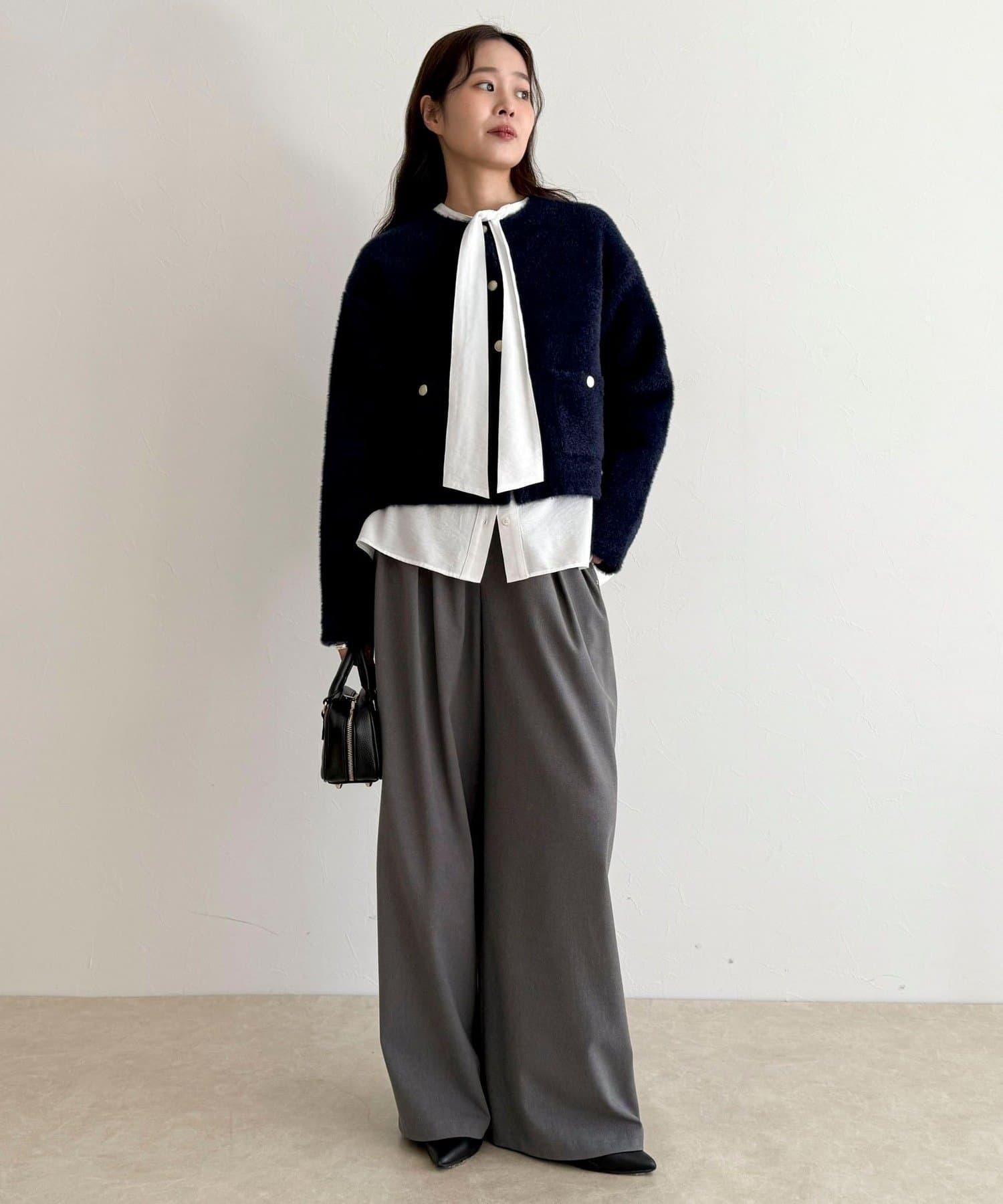 *由於面料的特性,本產品在夾住線頭時容易彈出。穿著時,請注意不要與皮帶、包包或周圍牆壁等粗糙表面摩擦或卡住。