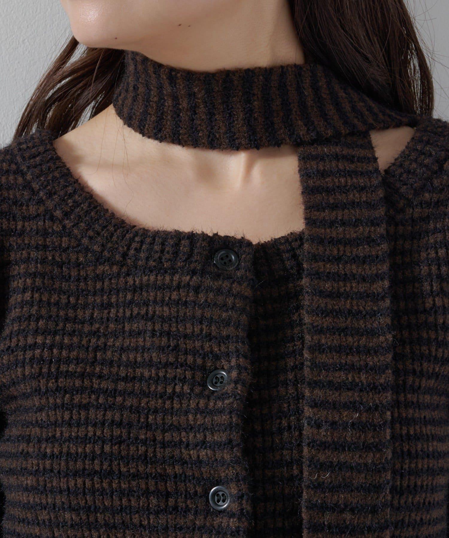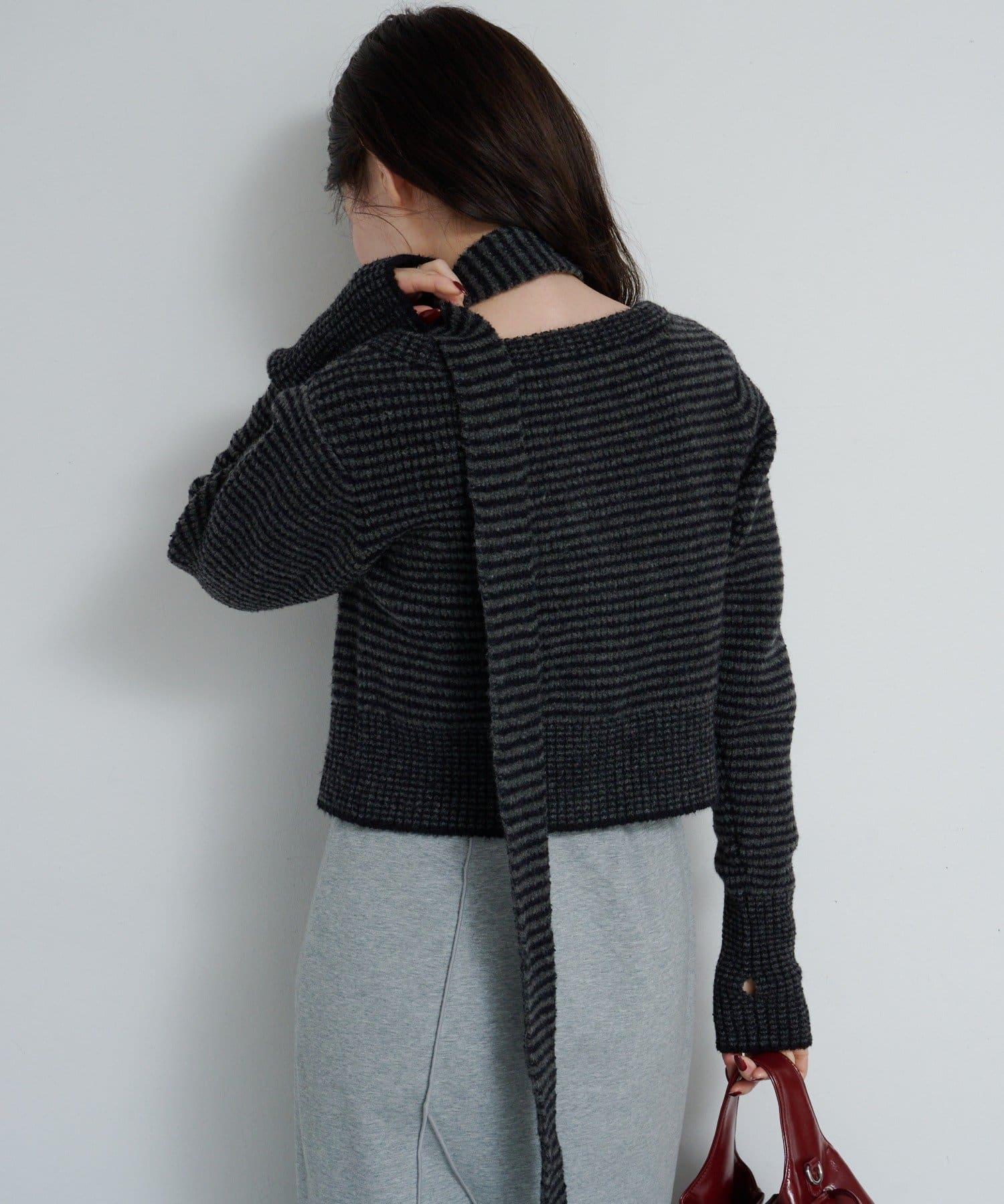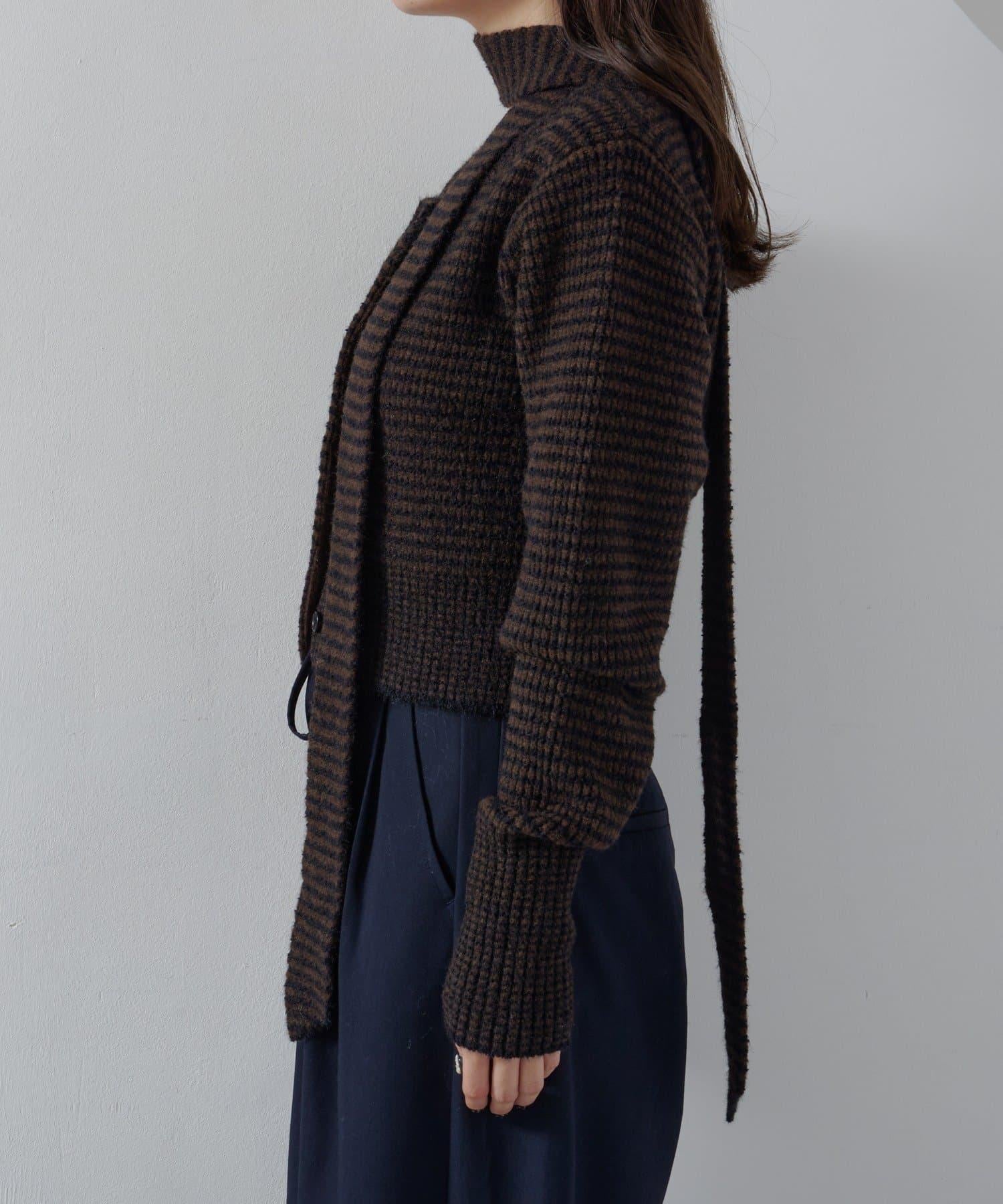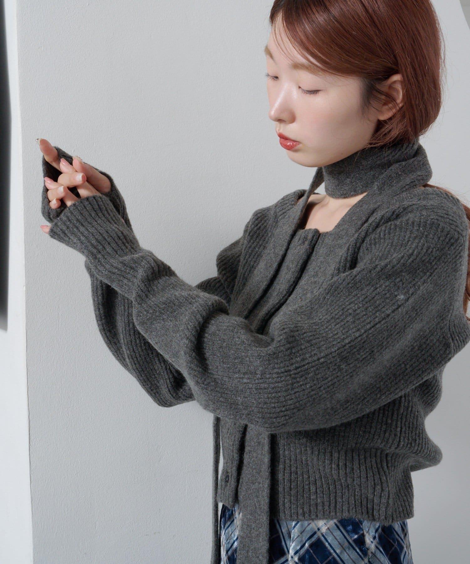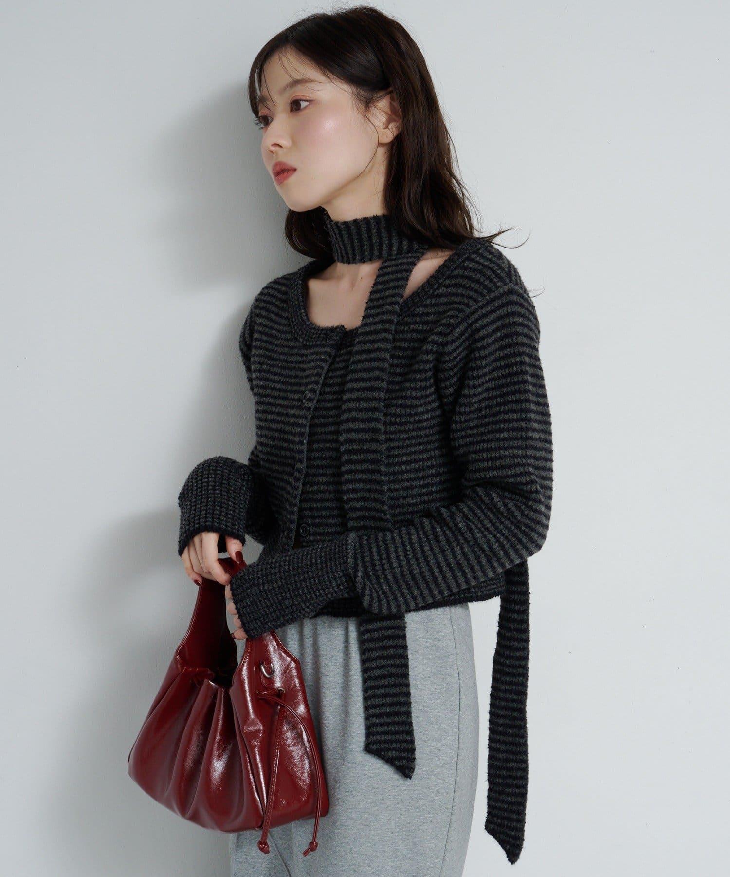 羅紋針織開衫,頸部有蝴蝶結領結設計。