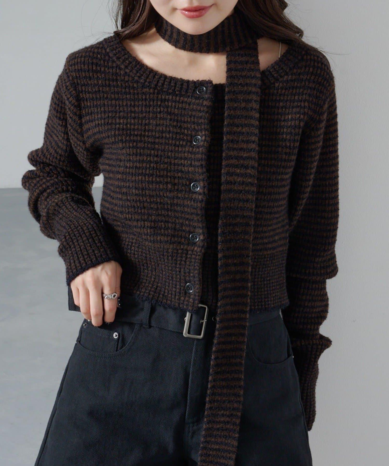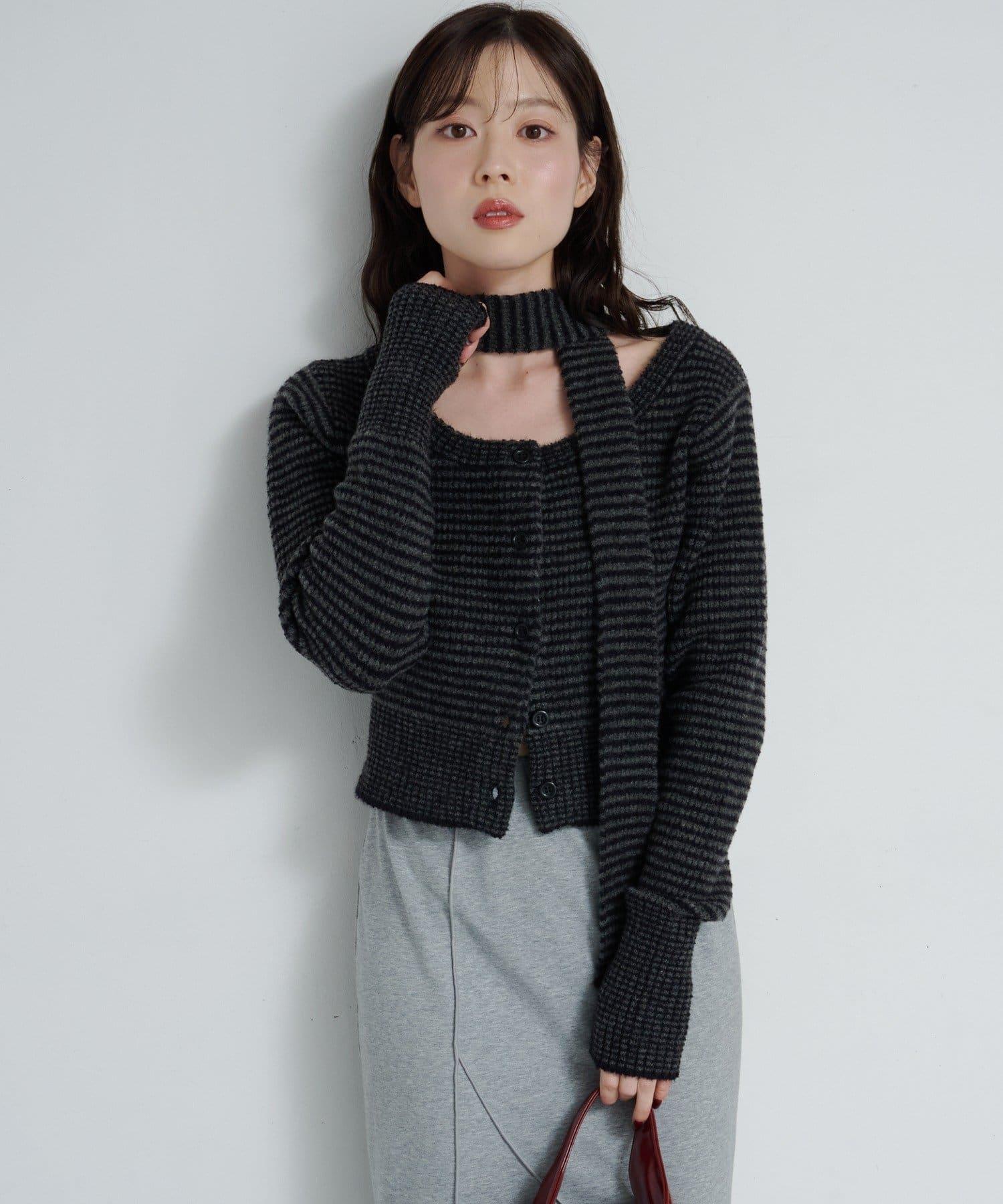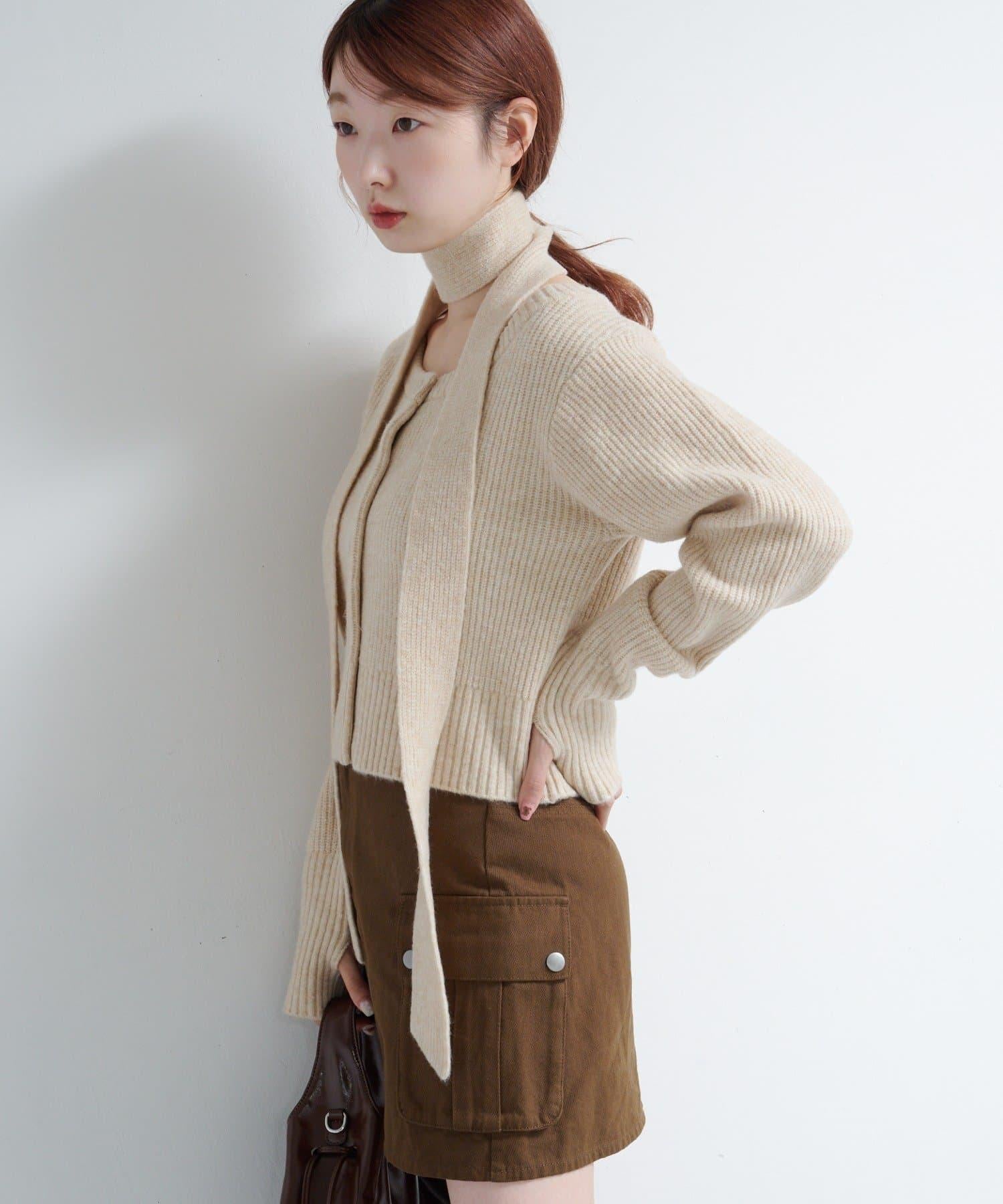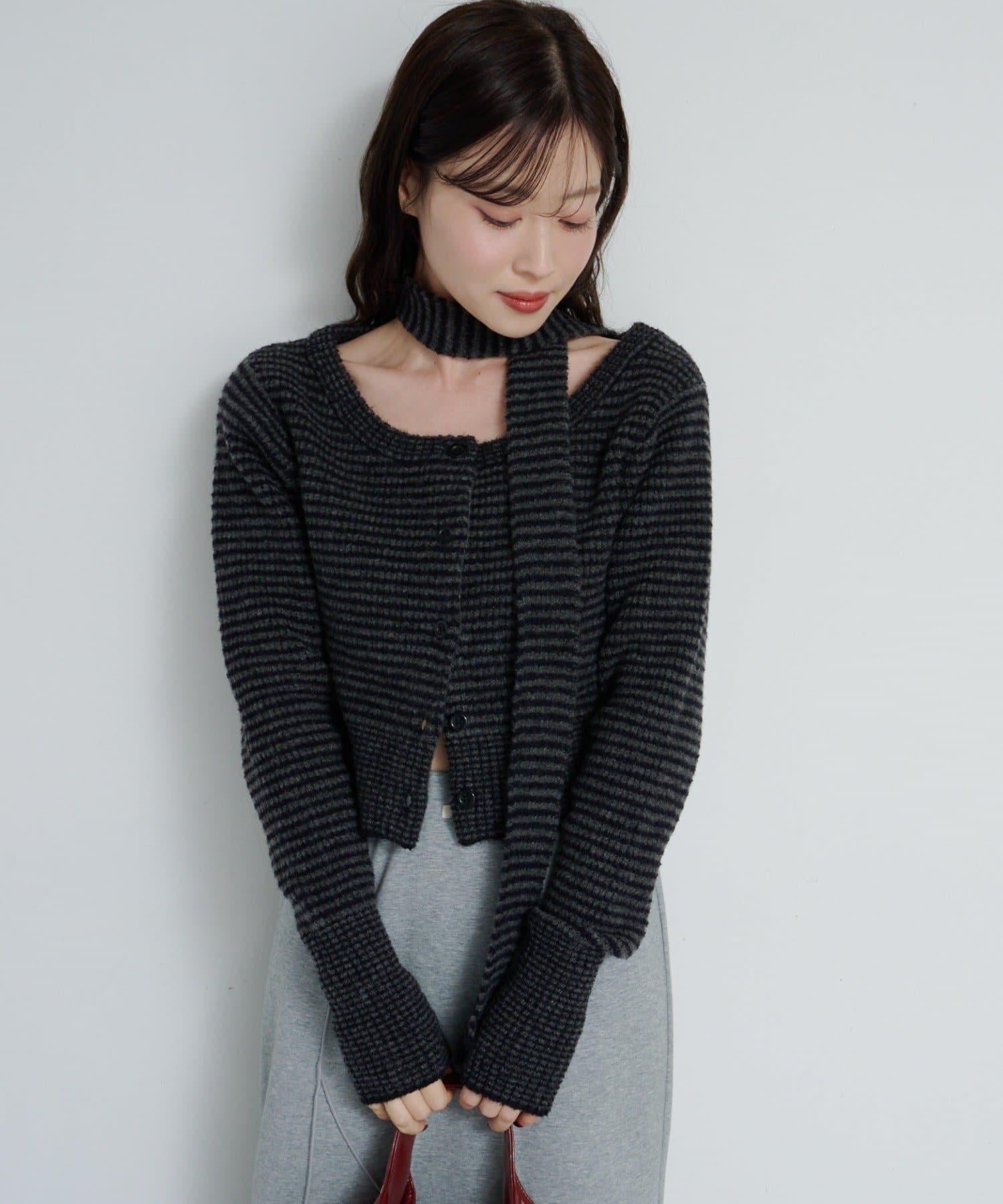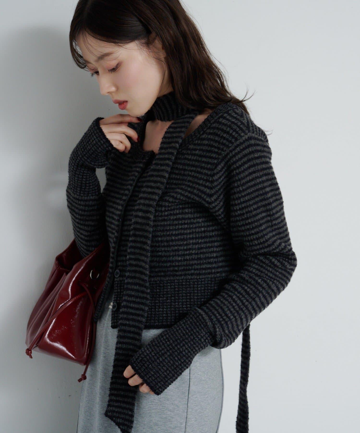 羅紋針織開衫,頸部有蝴蝶結領結設計。