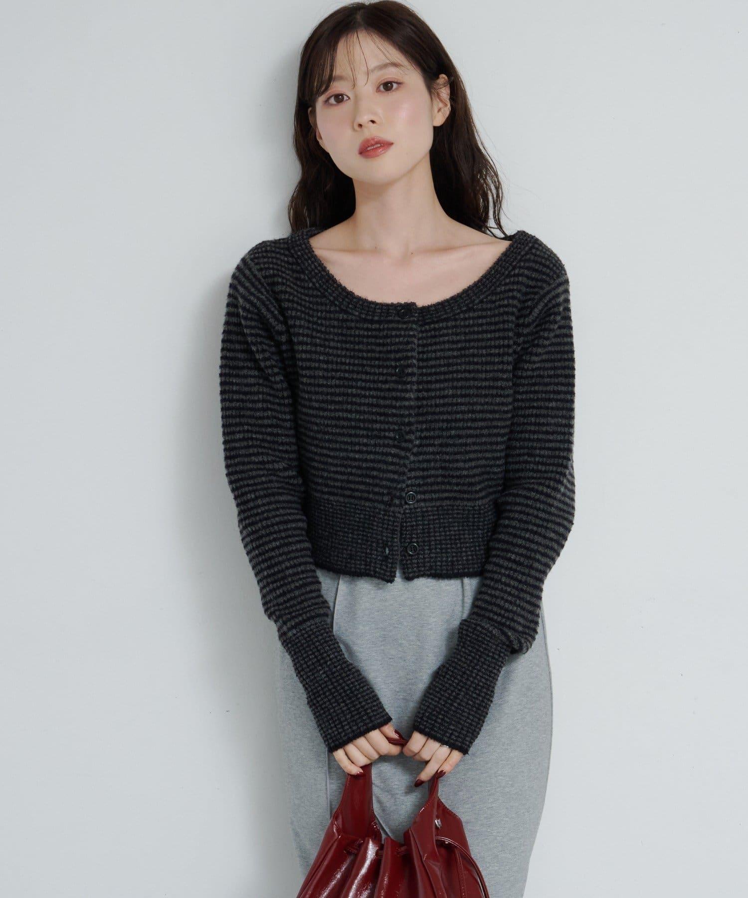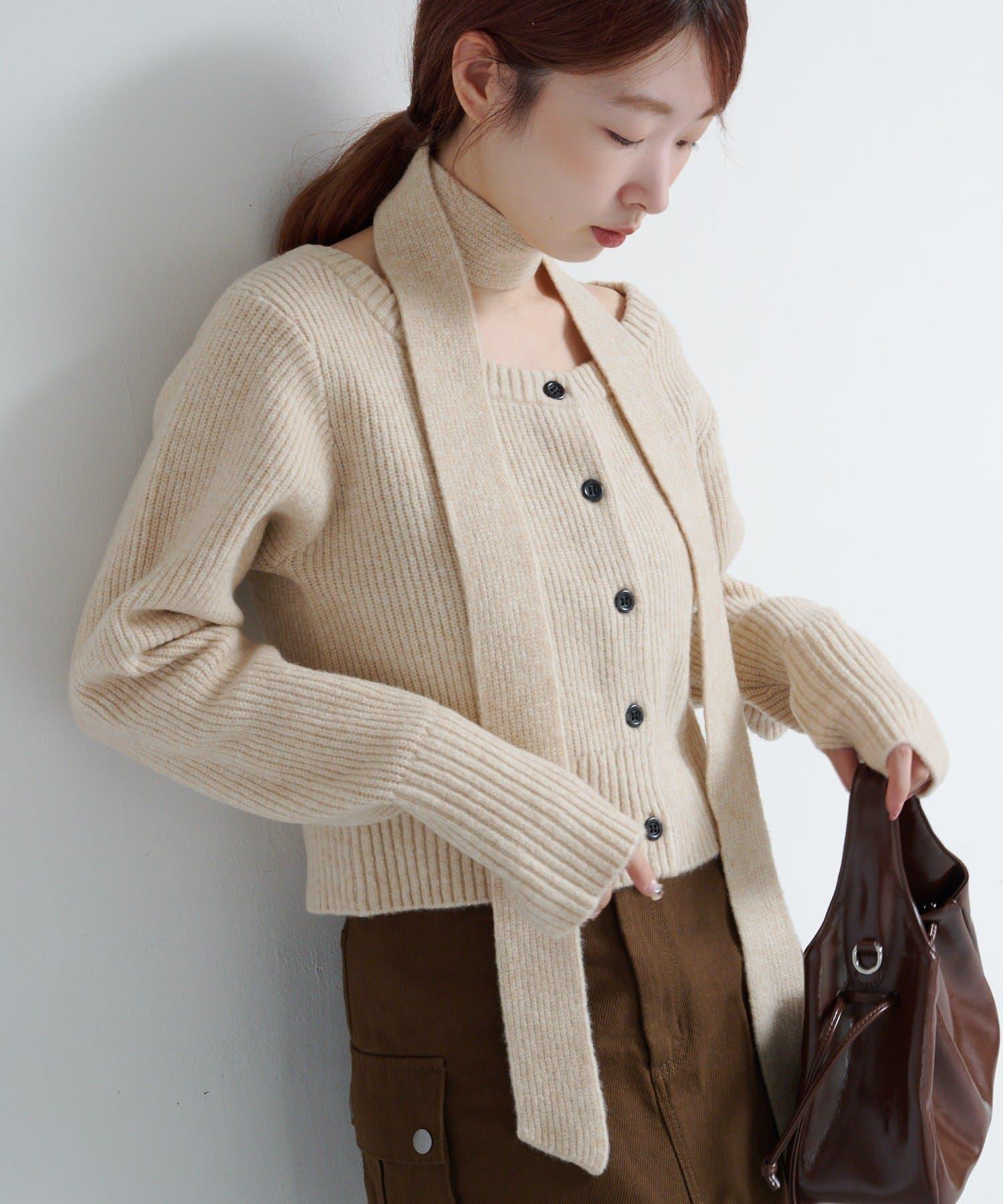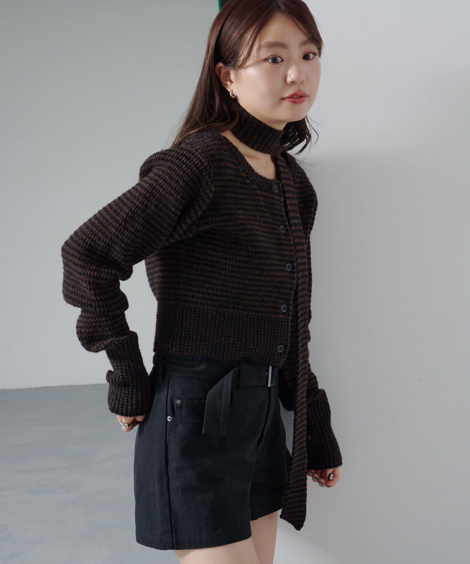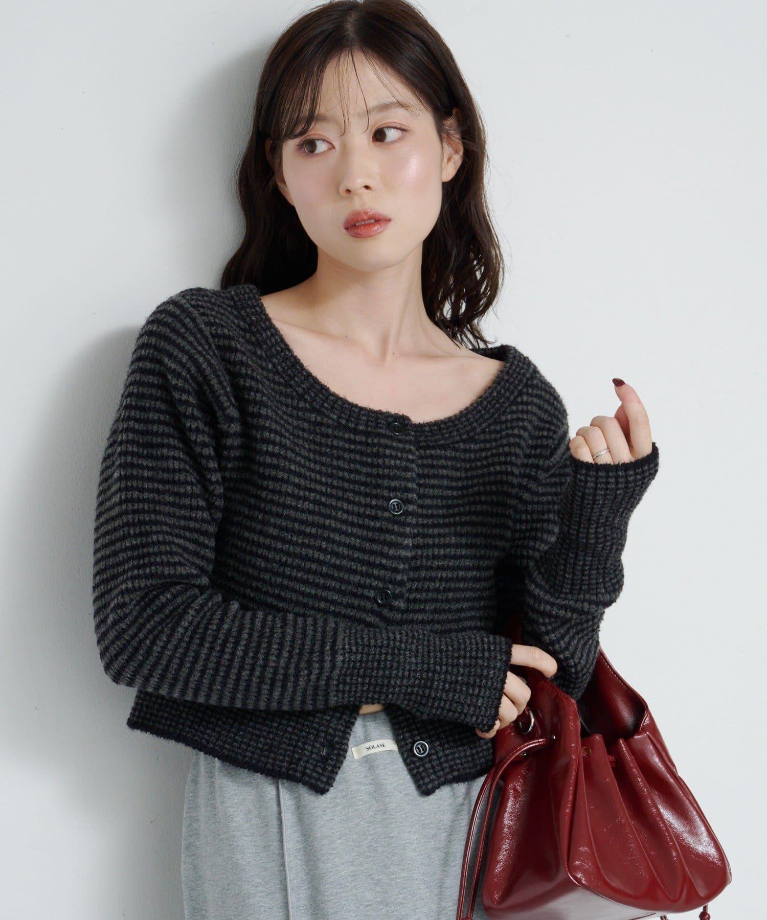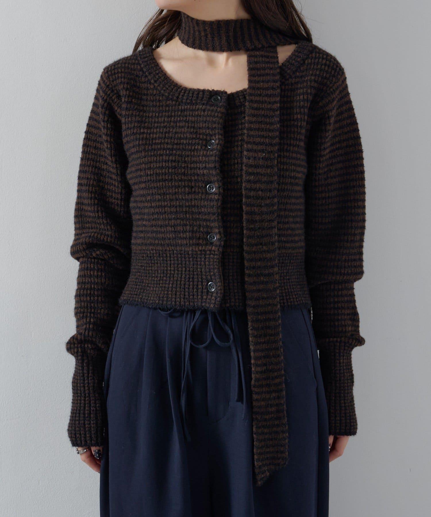 羅紋針織開衫,頸部有蝴蝶結領結設計。