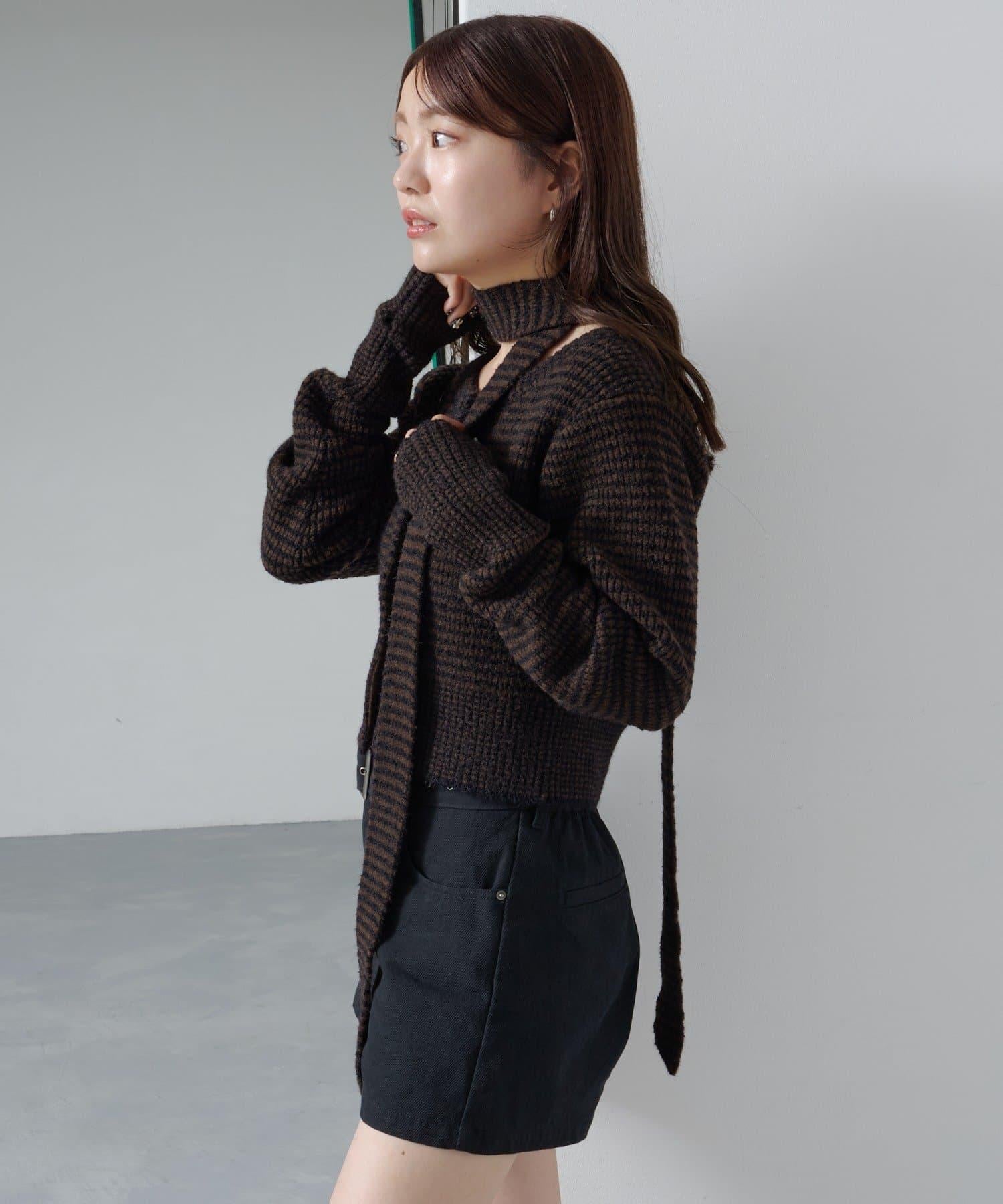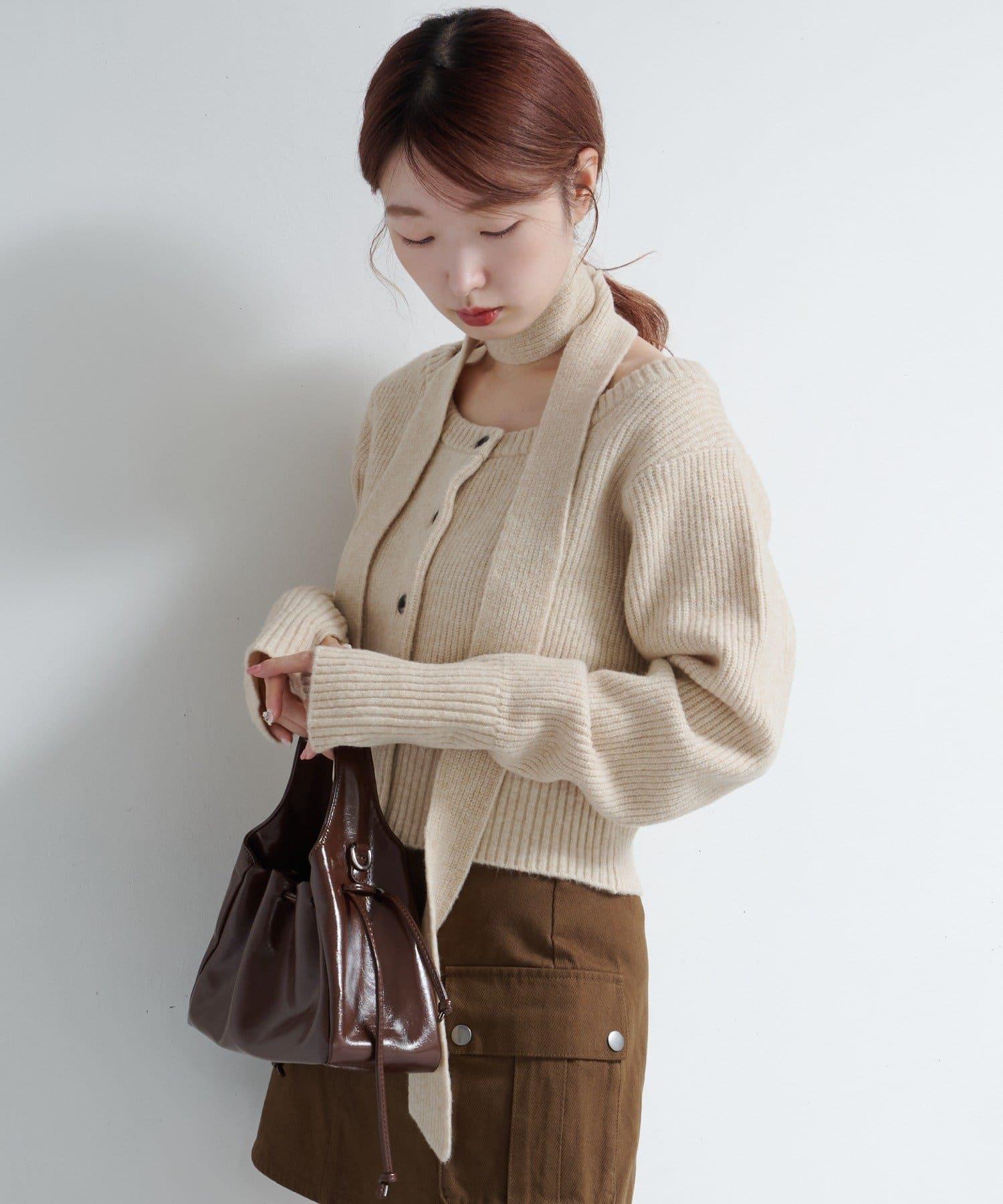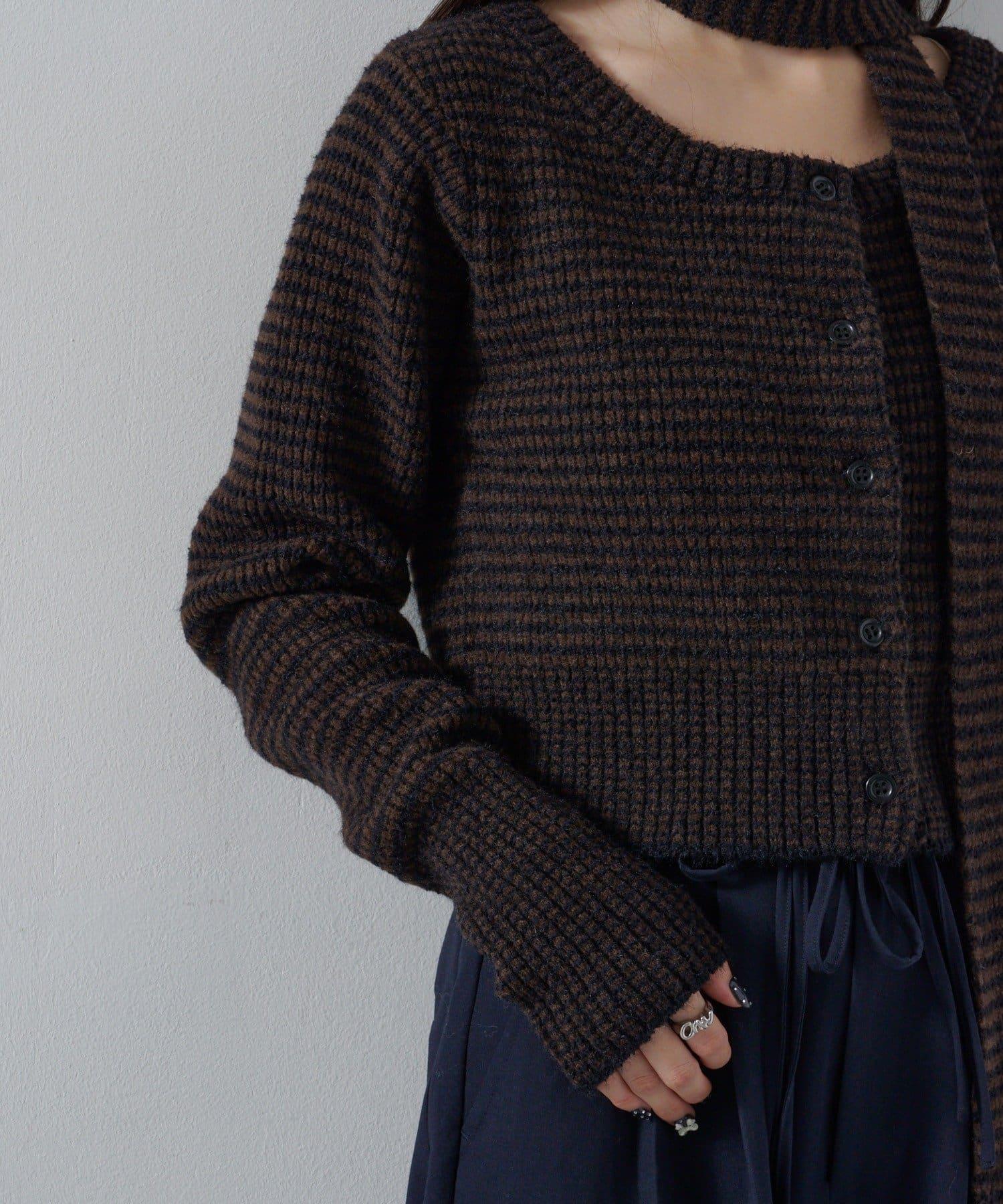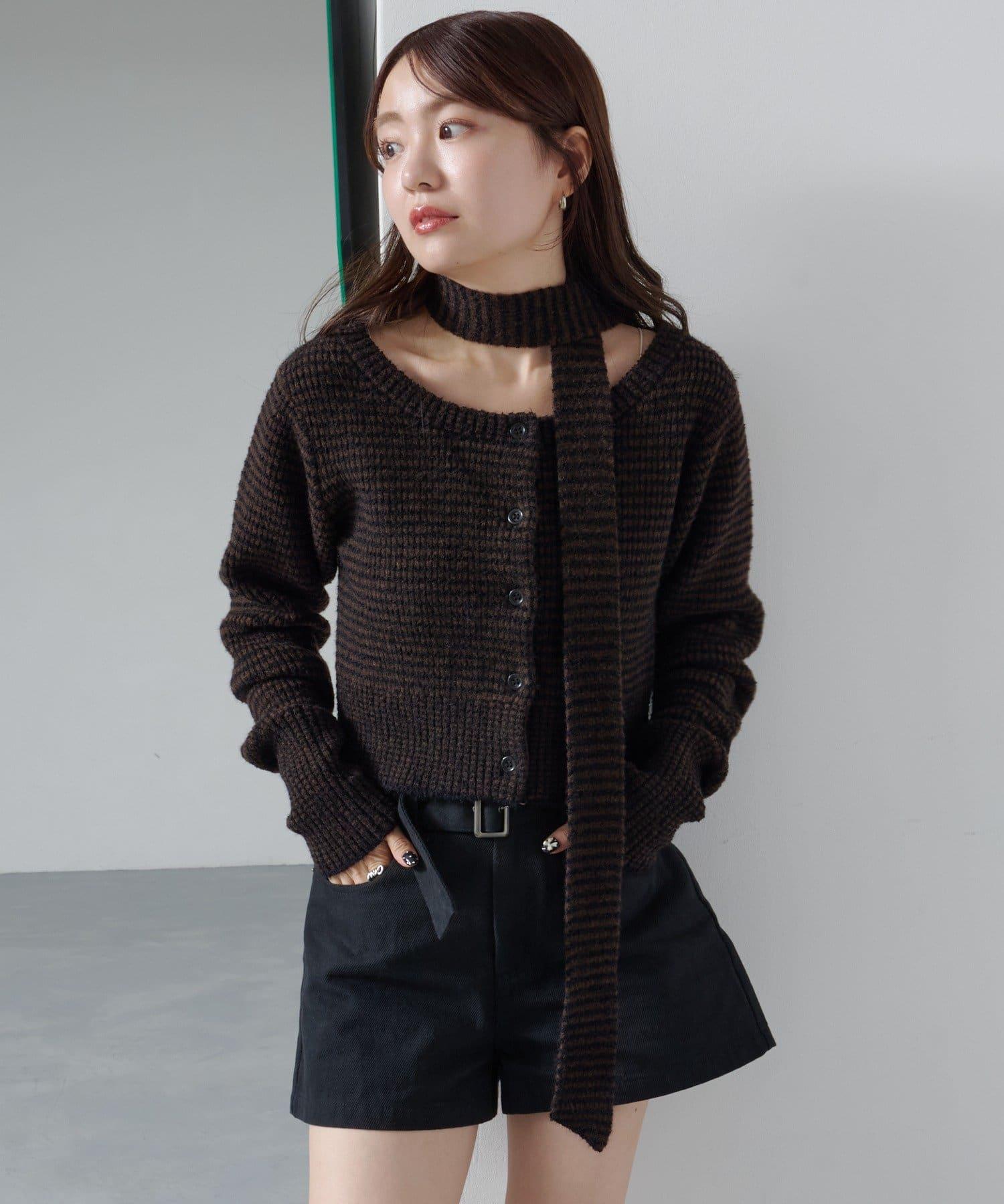羅紋針織開衫,頸部有蝴蝶結領結設計。
