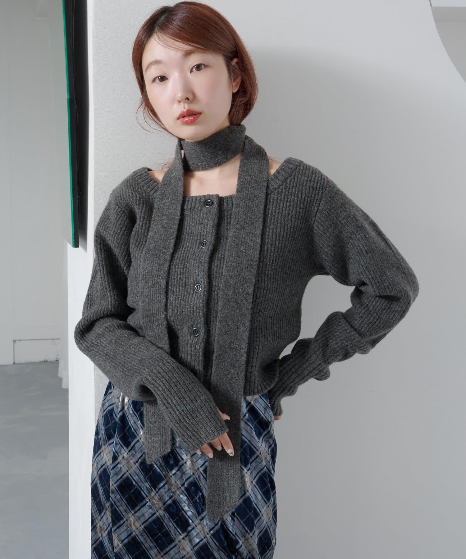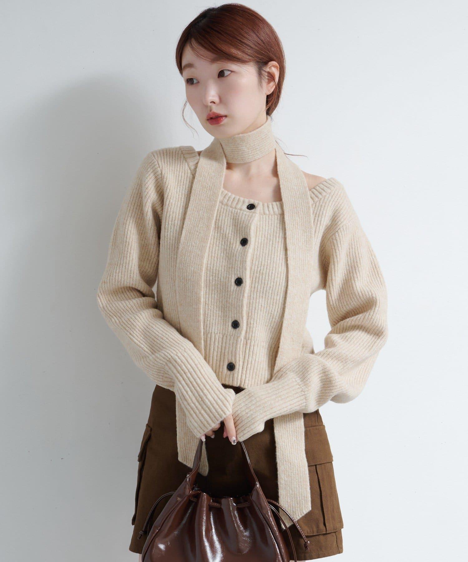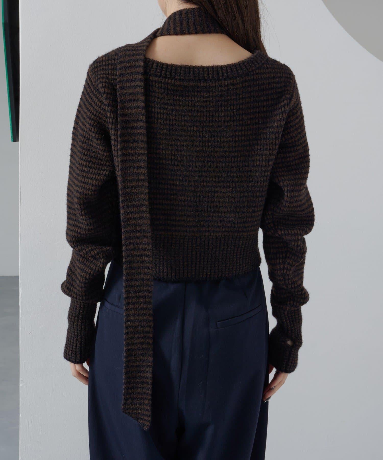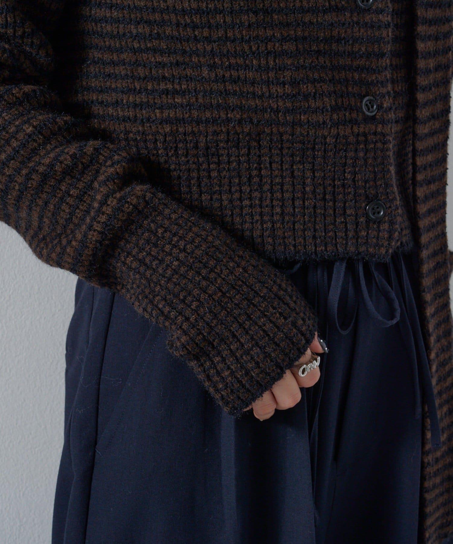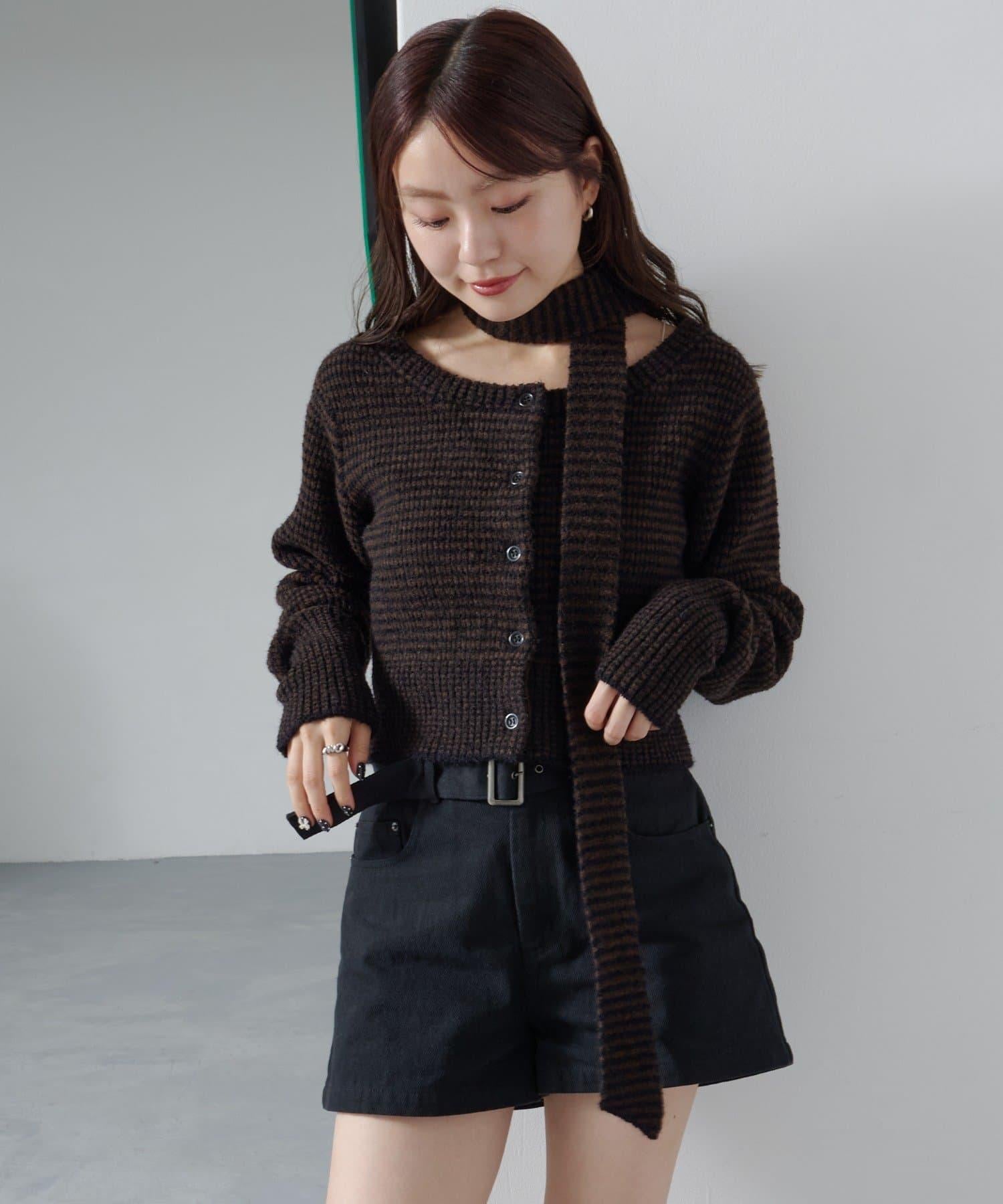 羅紋針織開衫,頸部有蝴蝶結領結設計。