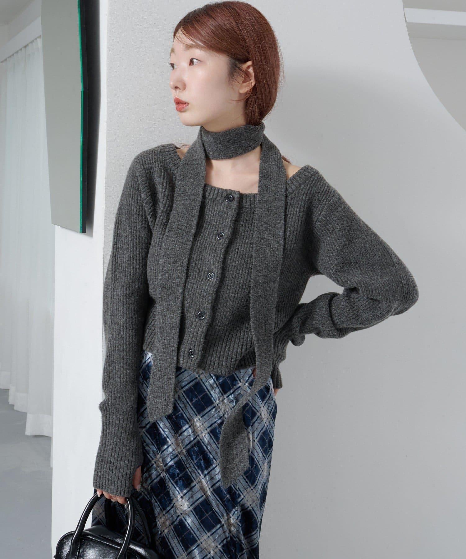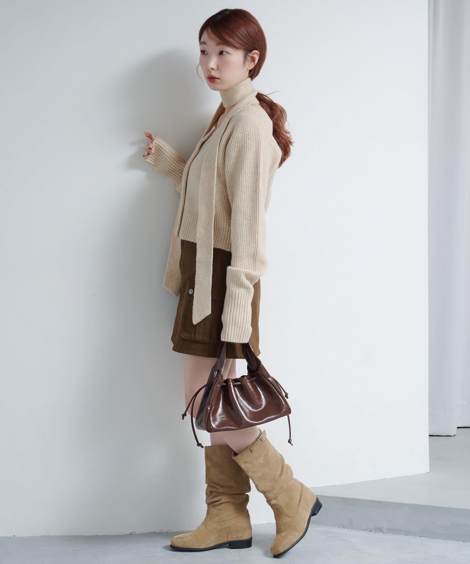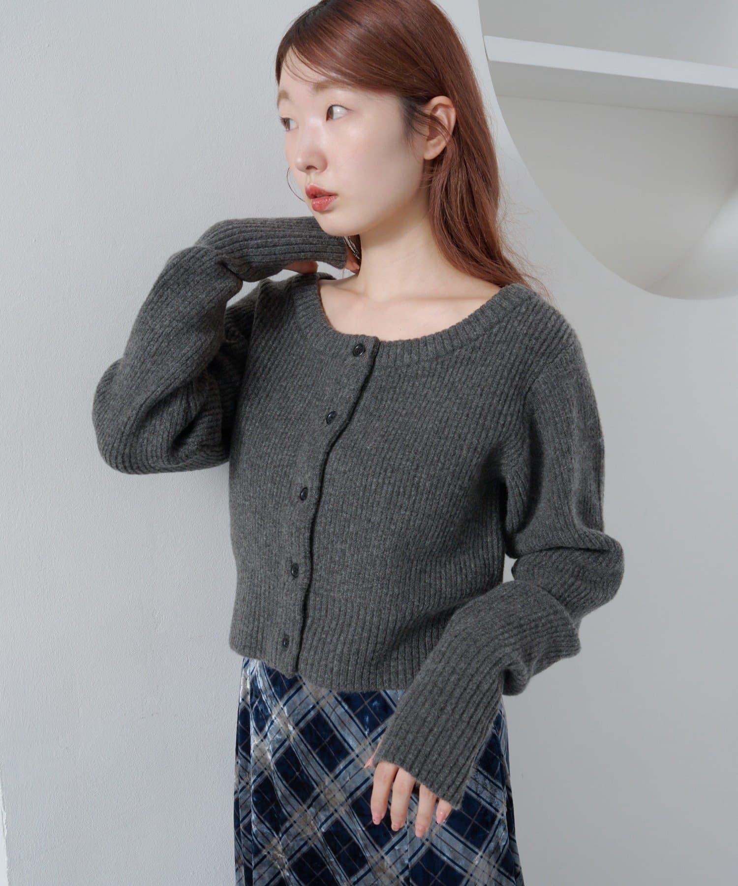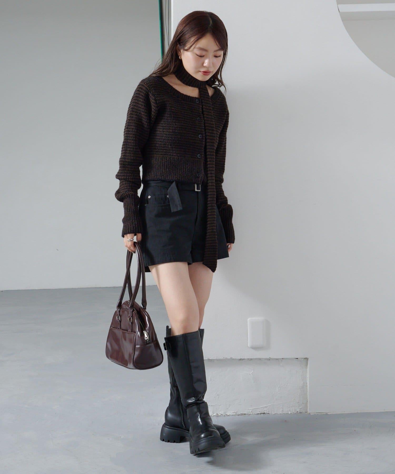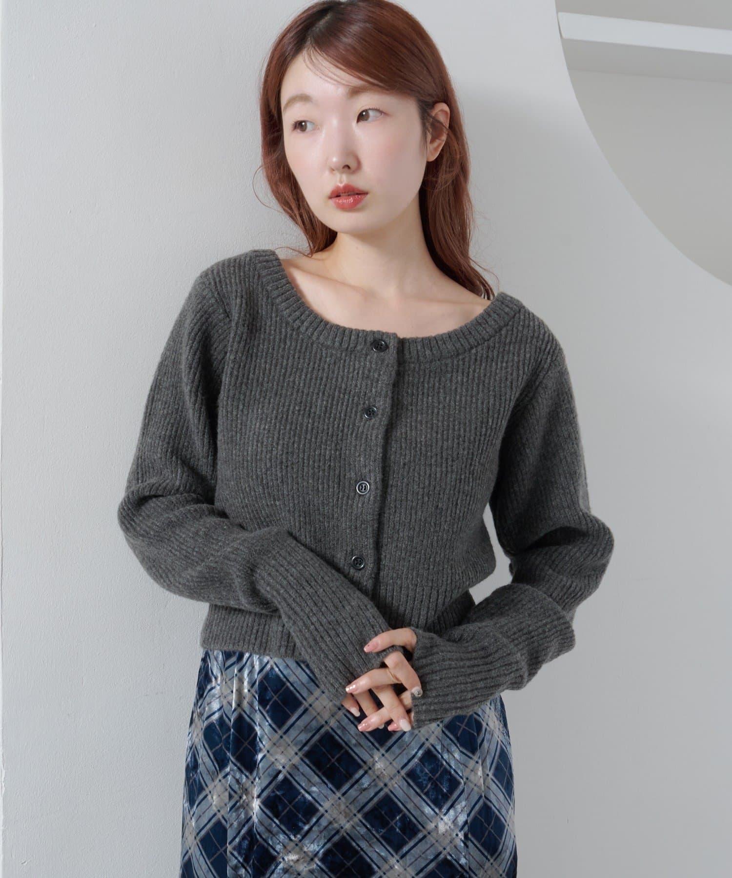 羅紋針織開衫,頸部有蝴蝶結領結設計。