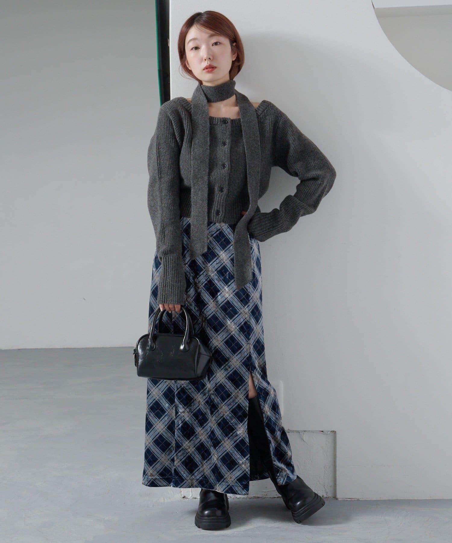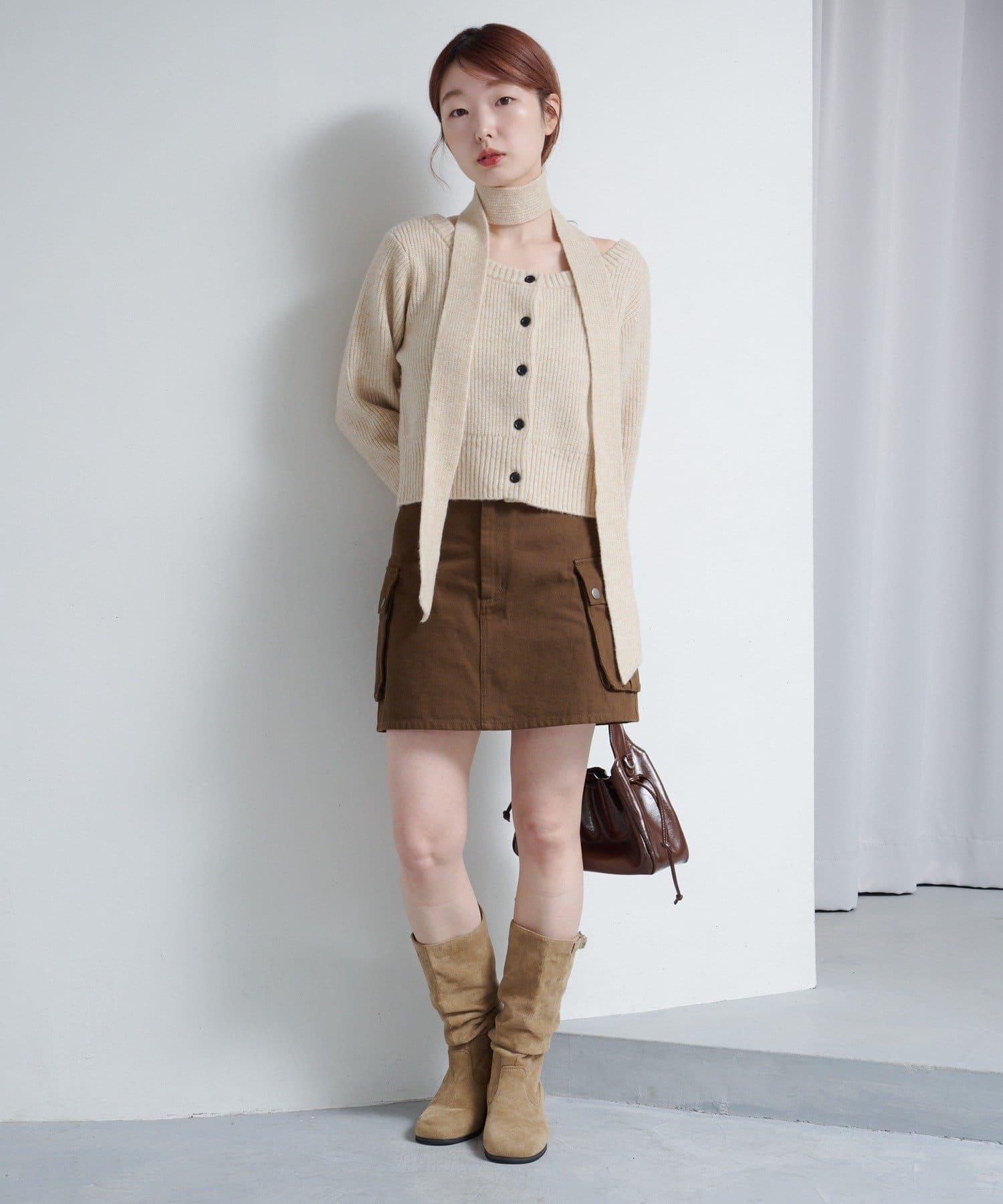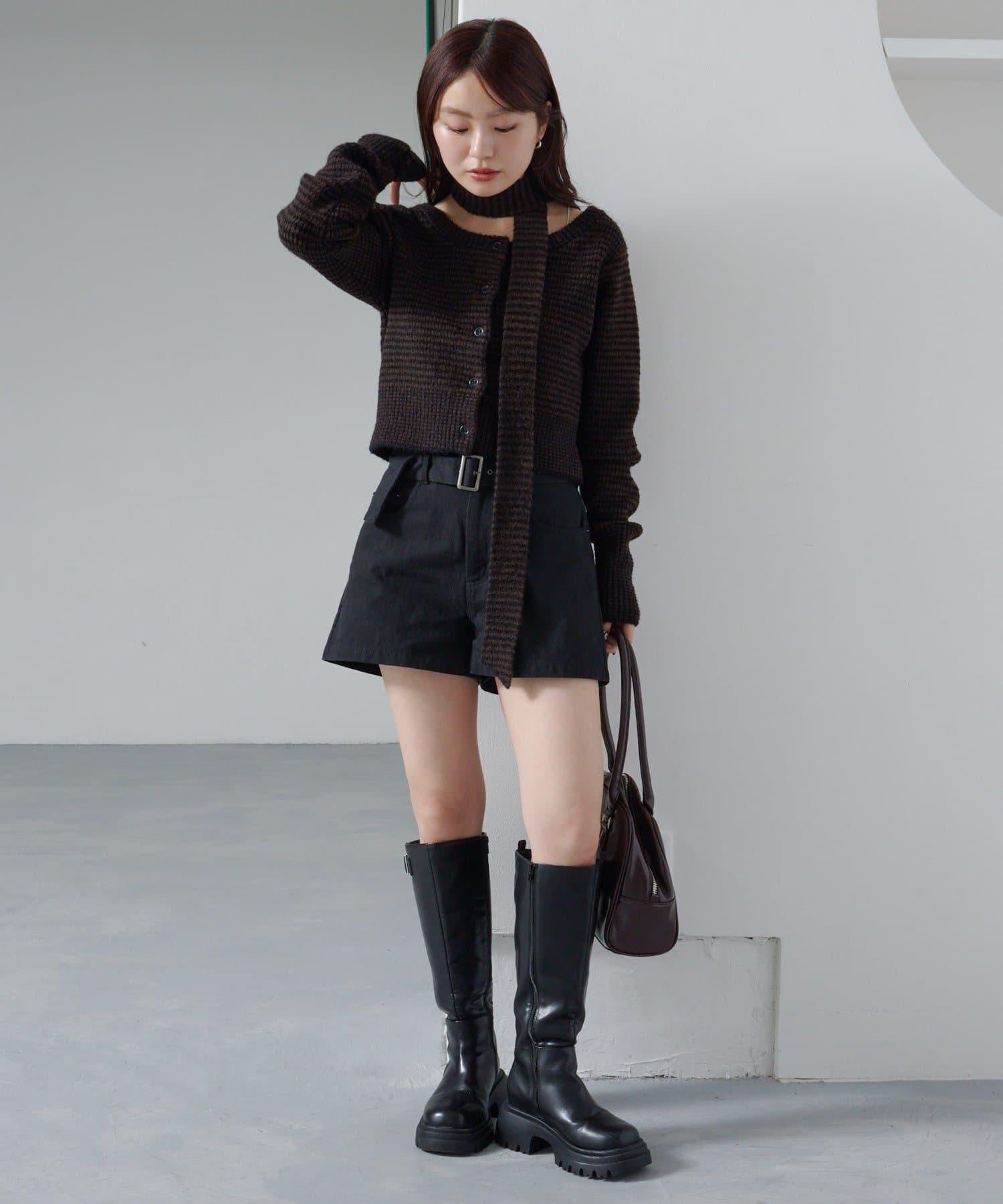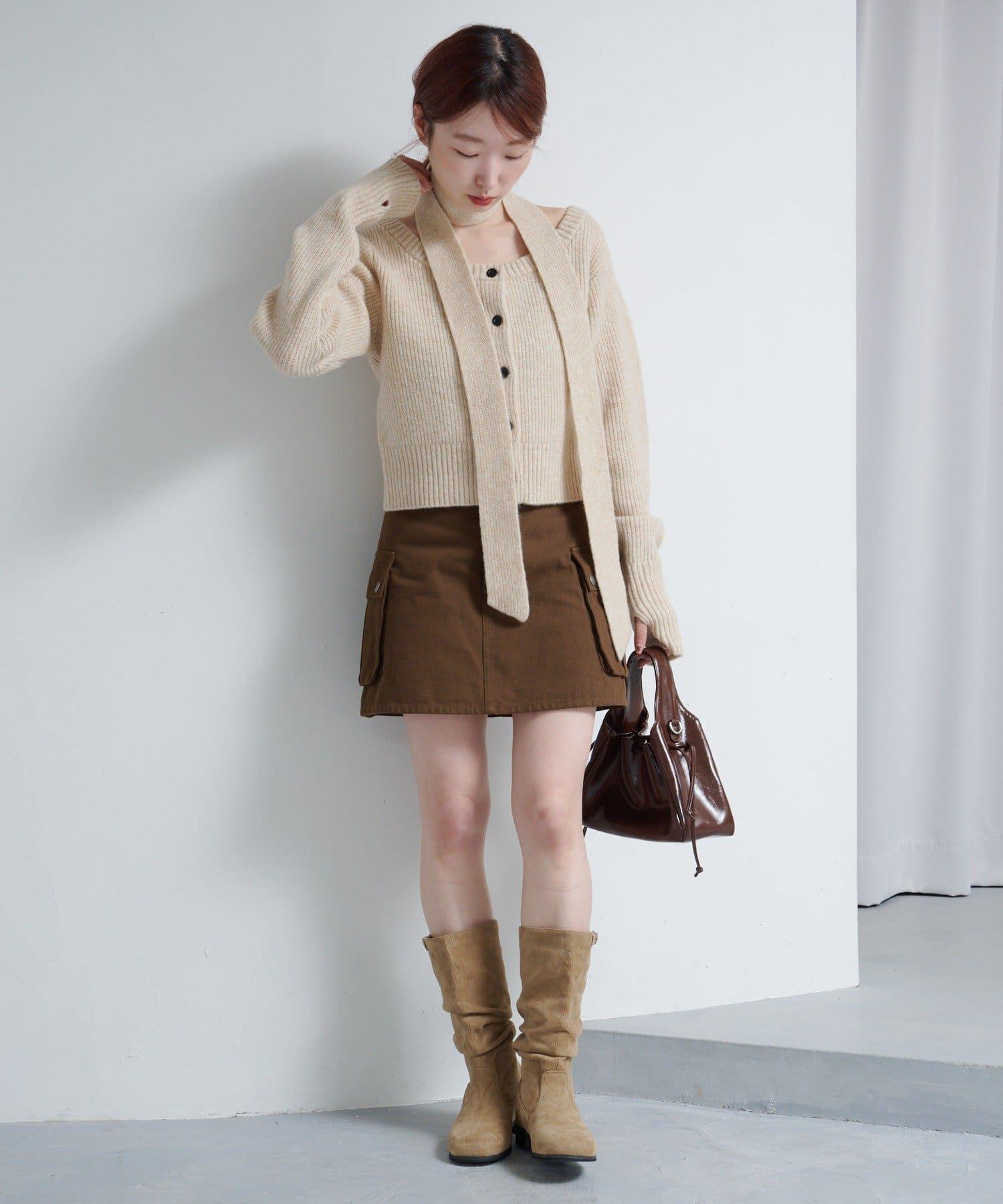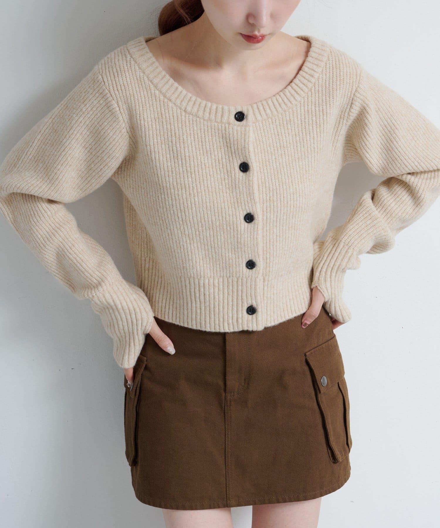 羅紋針織開衫,頸部有蝴蝶結領結設計。