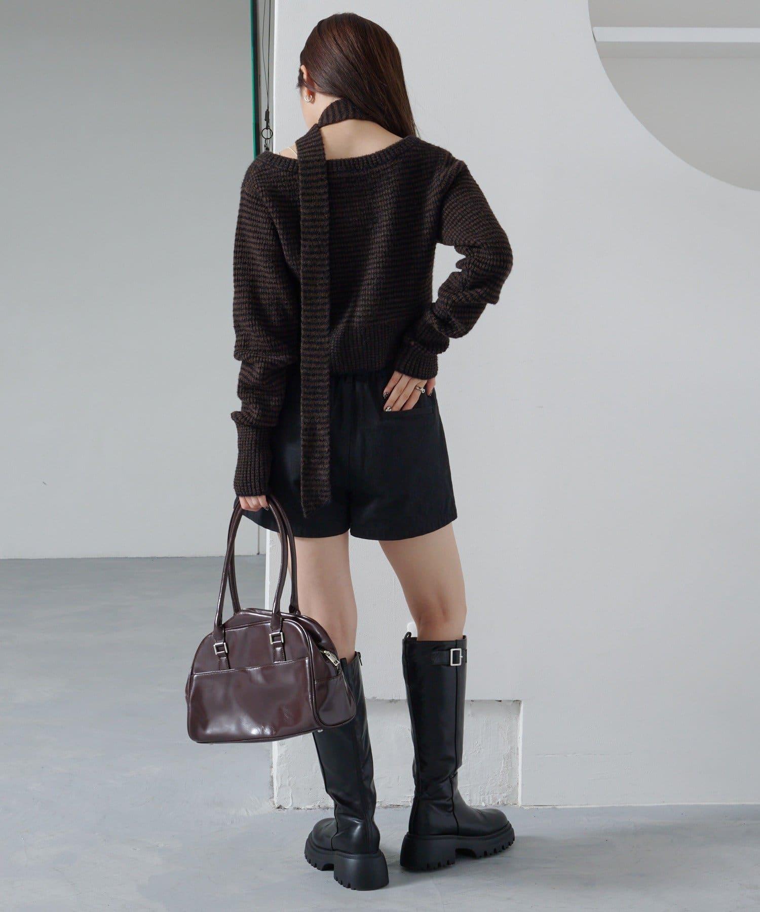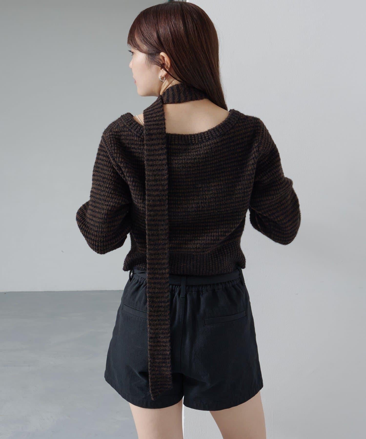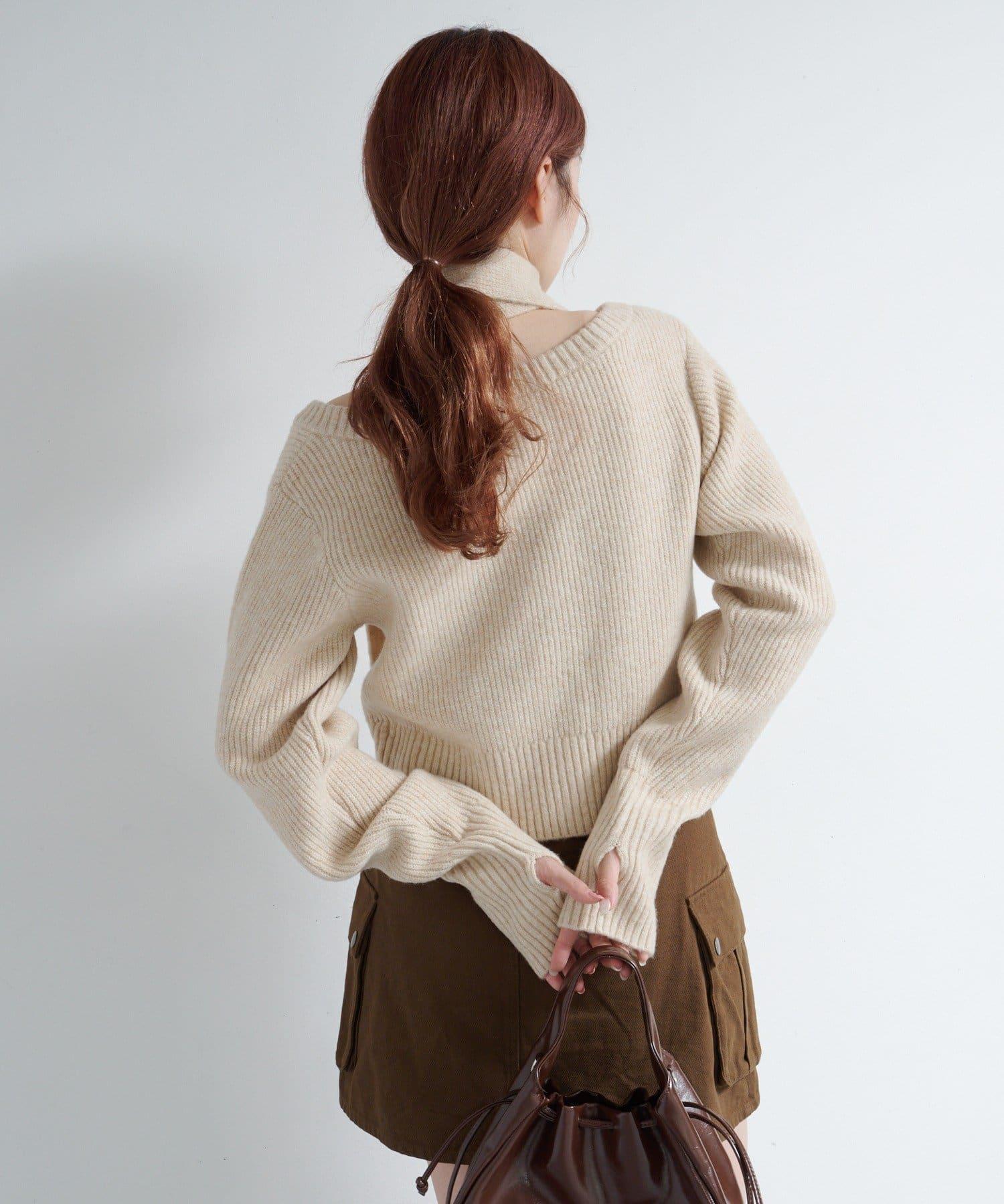 優雅寬鬆的針織衫,飾有蝴蝶結領帶和羅紋。
