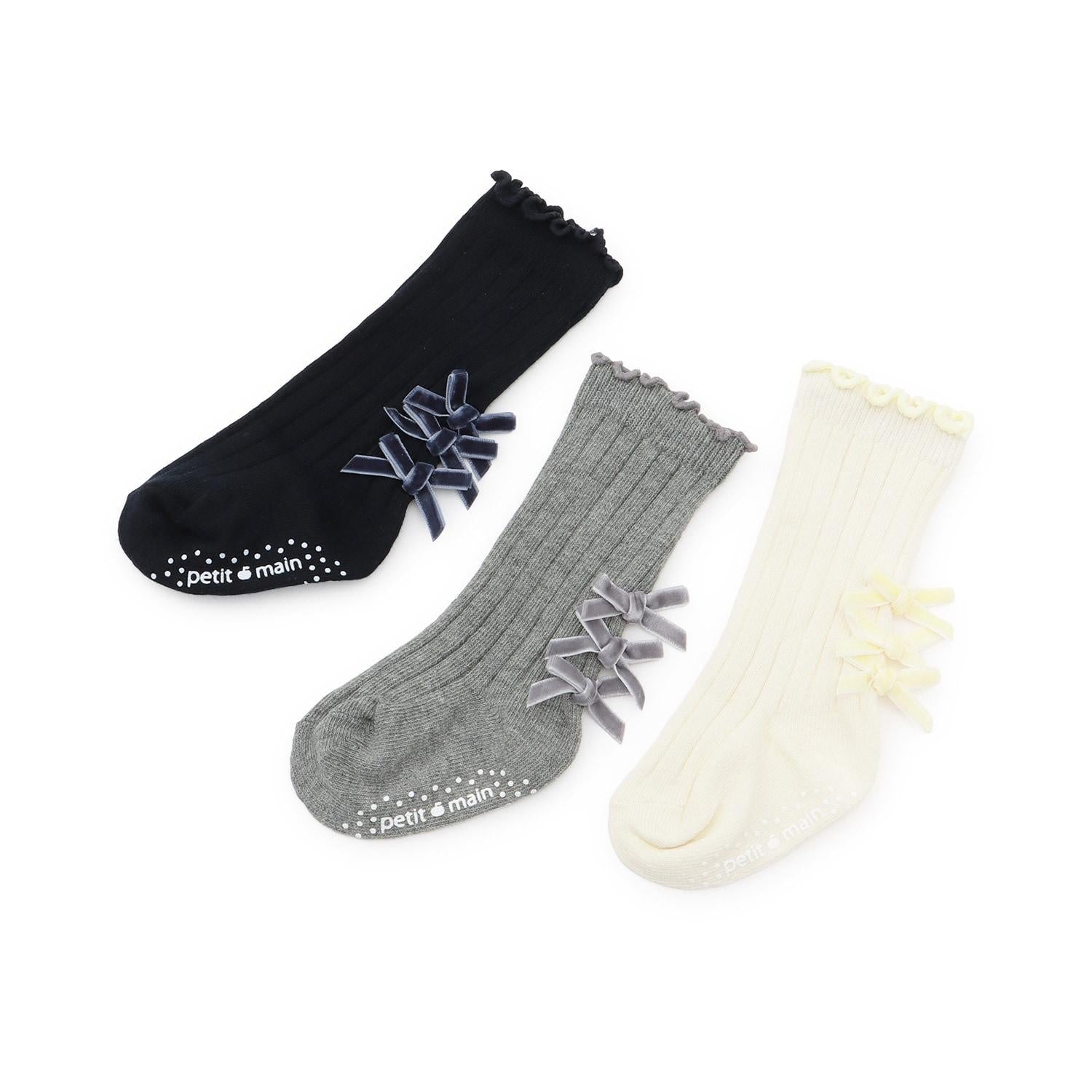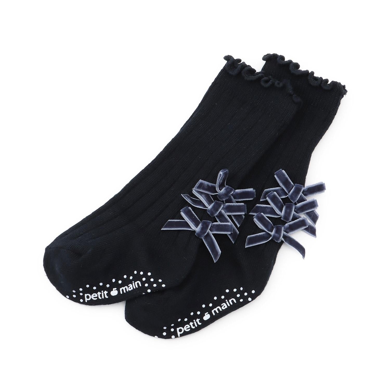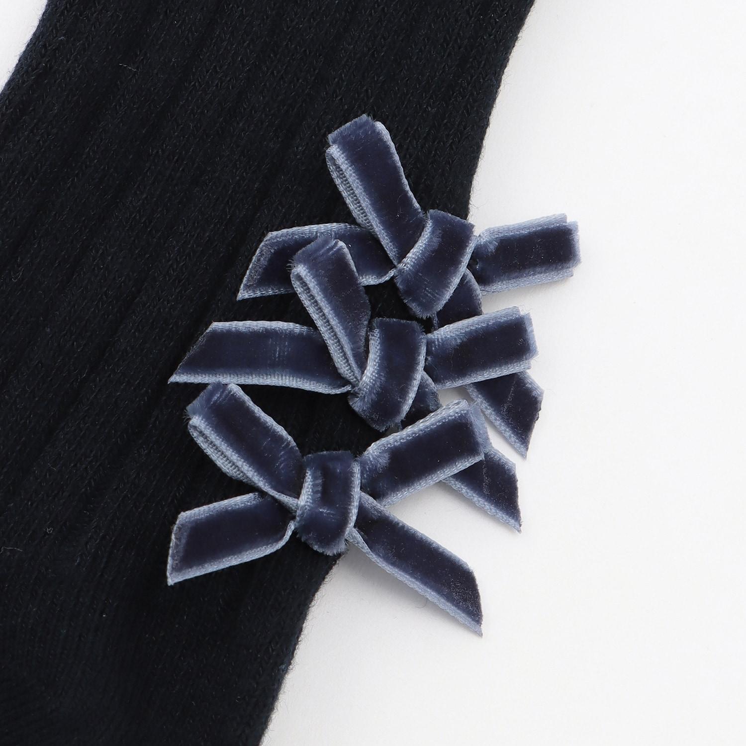 這款高筒襪有一個引人注目的亮點,那就是三條迷你絲帶連成一排。