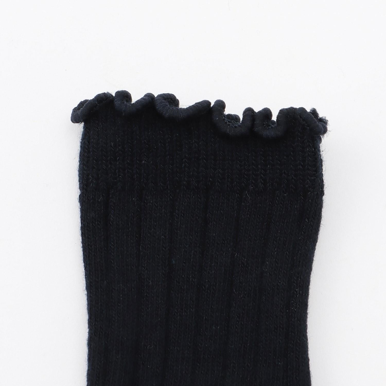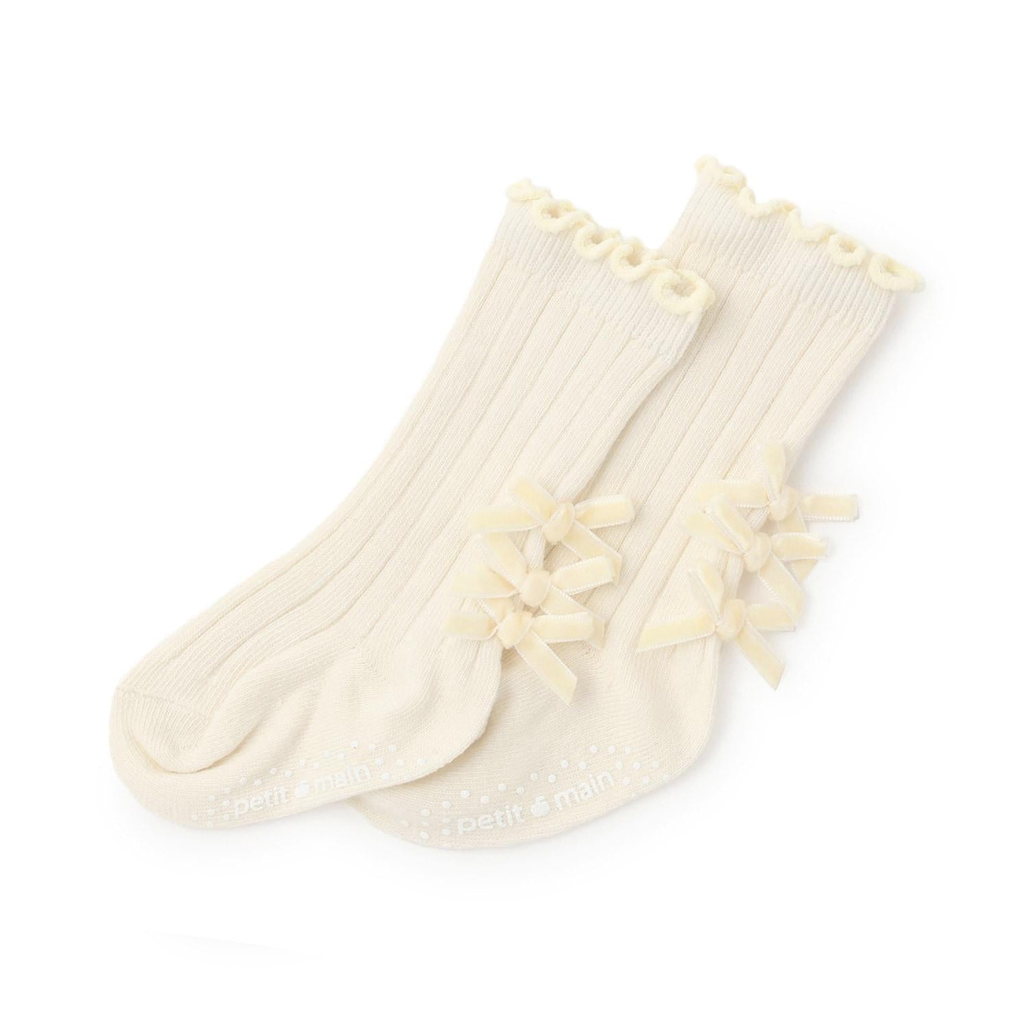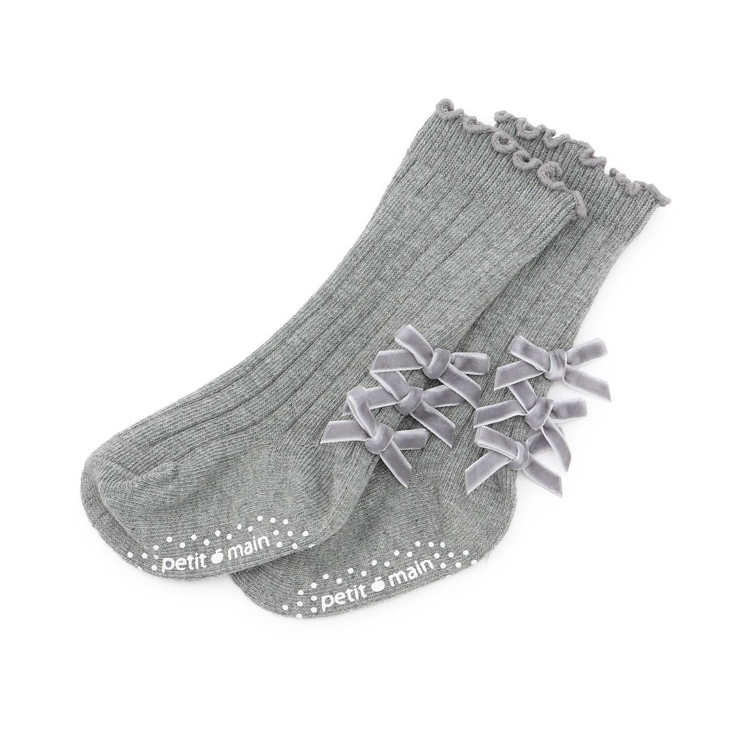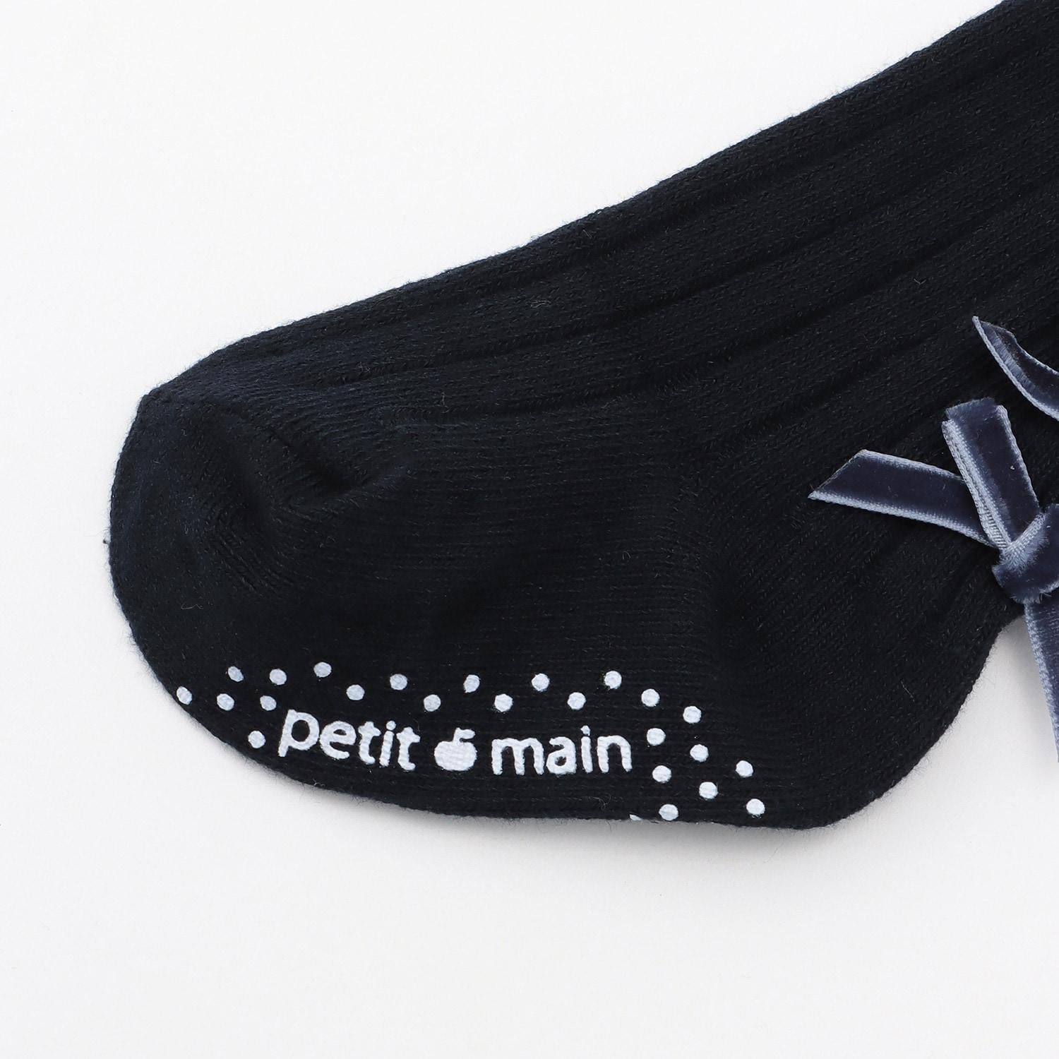 這款高筒襪有一個引人注目的亮點,那就是三條迷你絲帶連成一排。