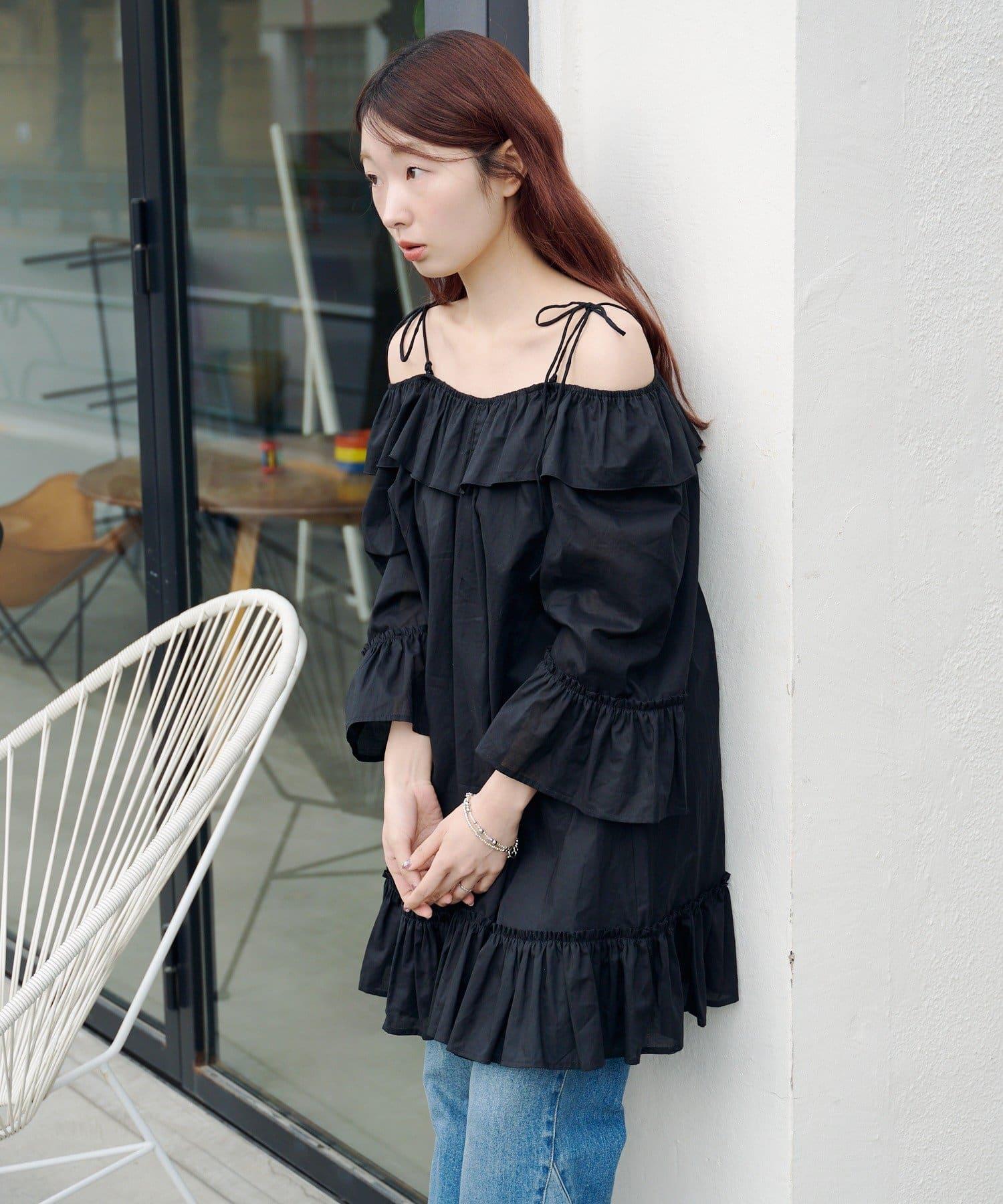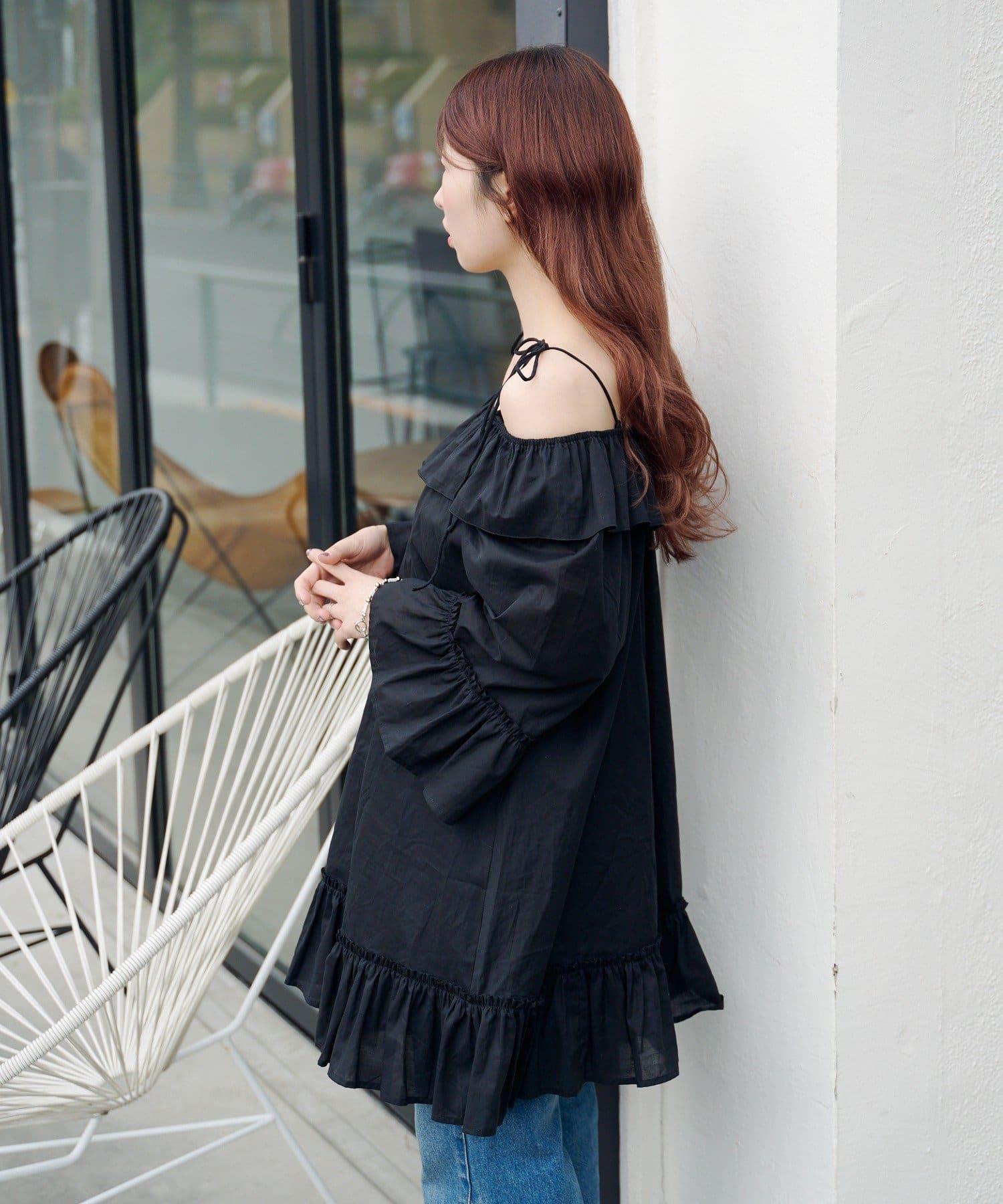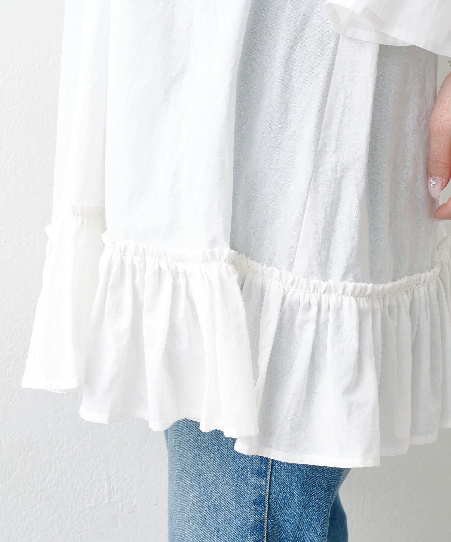 蝴蝶荷葉邊寬鬆長款上衣