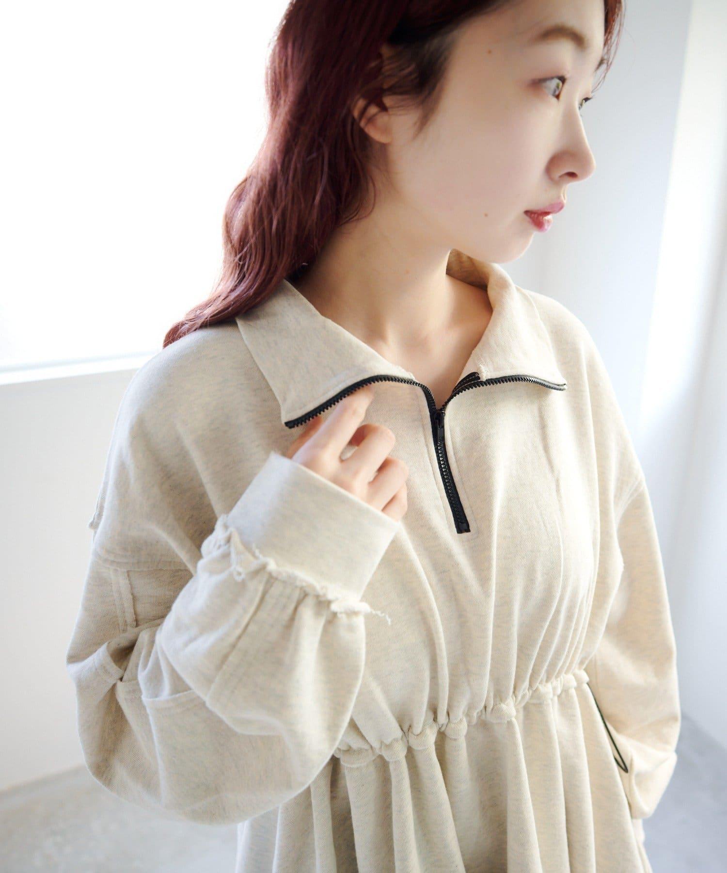 半拉鍊和領口設計為休閒造型增添了良好的整潔感。