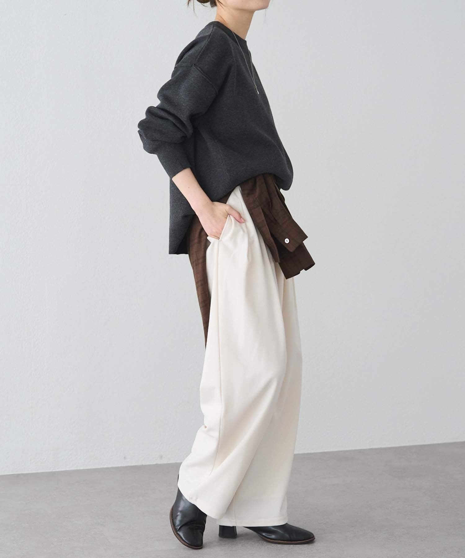 長度在腰部左右,但下襬的羅紋設計很有安全感,可以穿出乾淨利落的感覺。