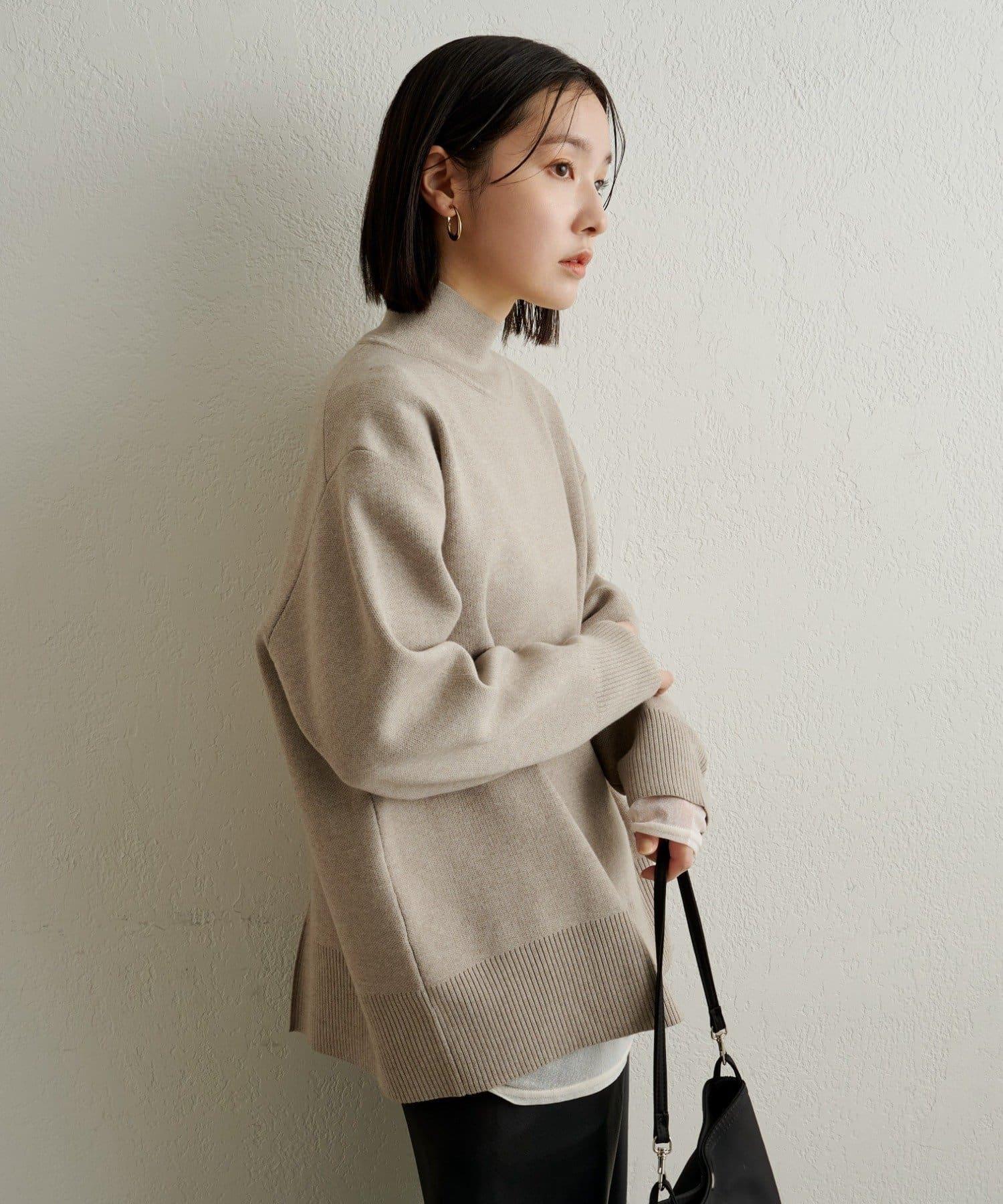 高領部分的設計適度貼合頸部,不會太緊,建議不喜歡高領的人穿著。