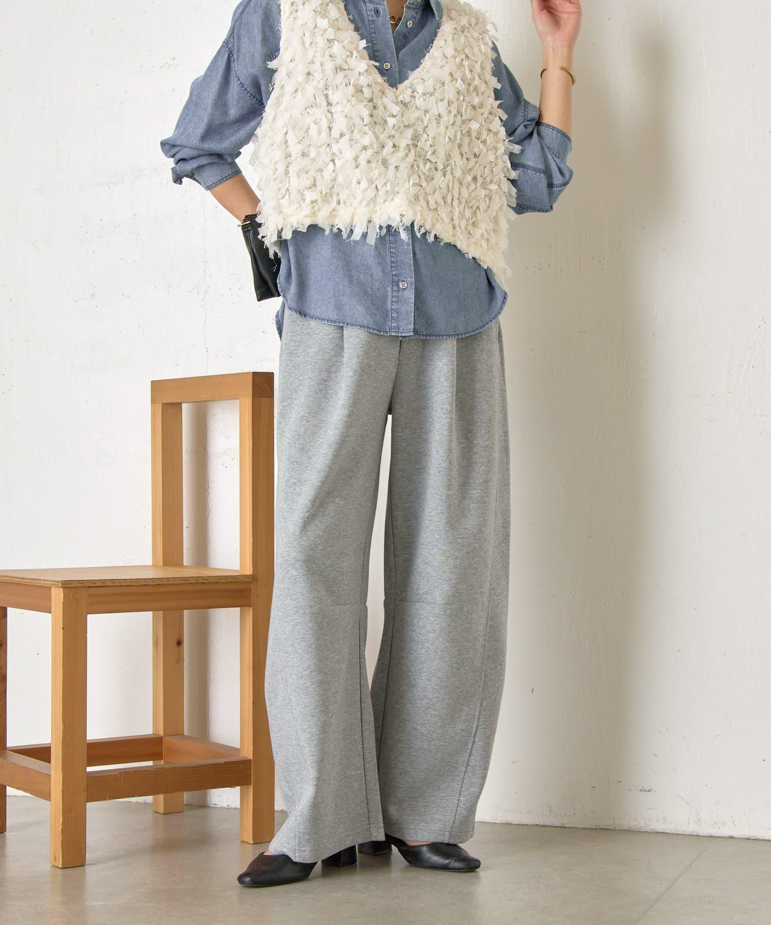 這款運動褲的廓形曲線柔和,自然遮蓋腿部線條,給人一種乾淨利落的感覺。