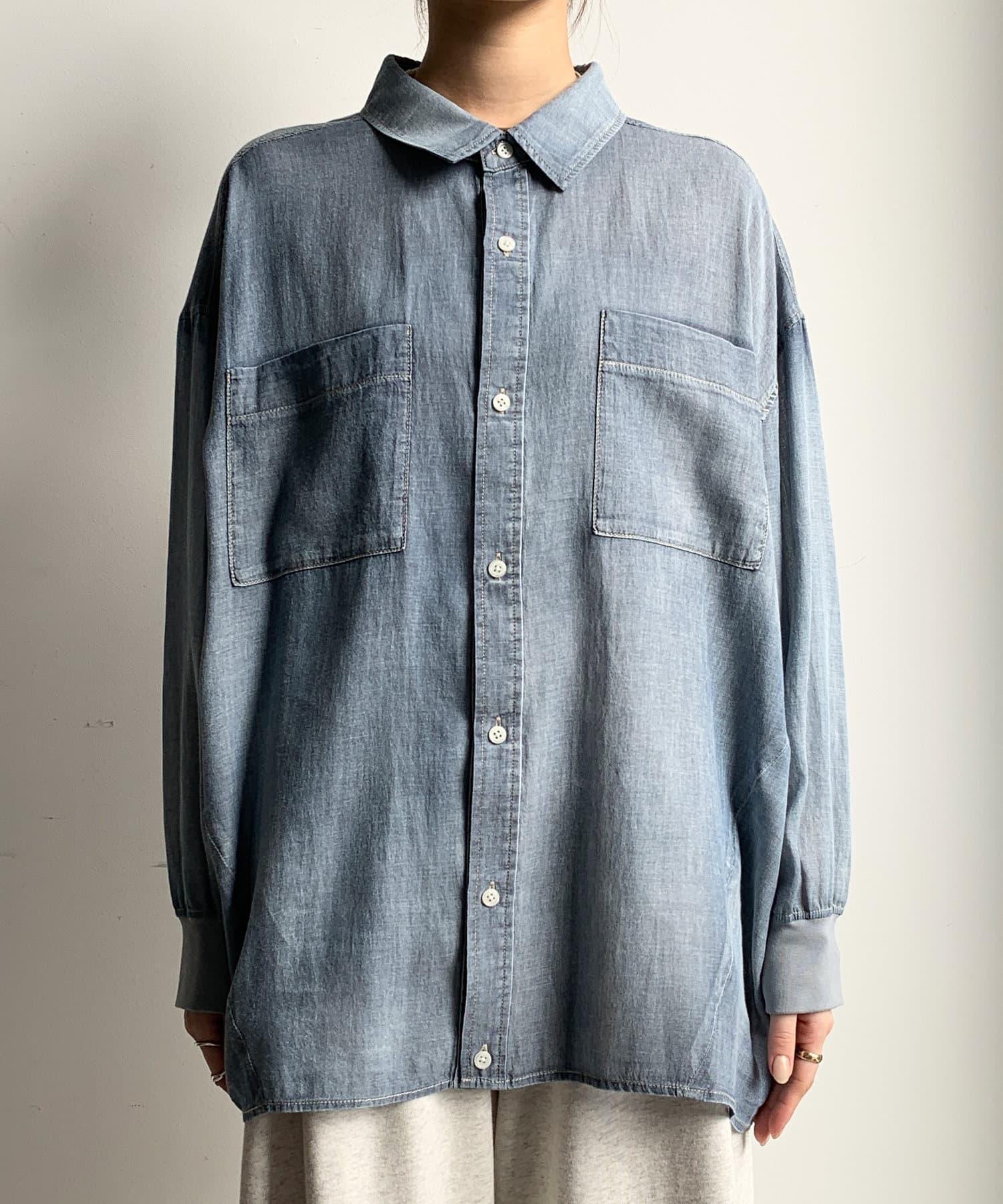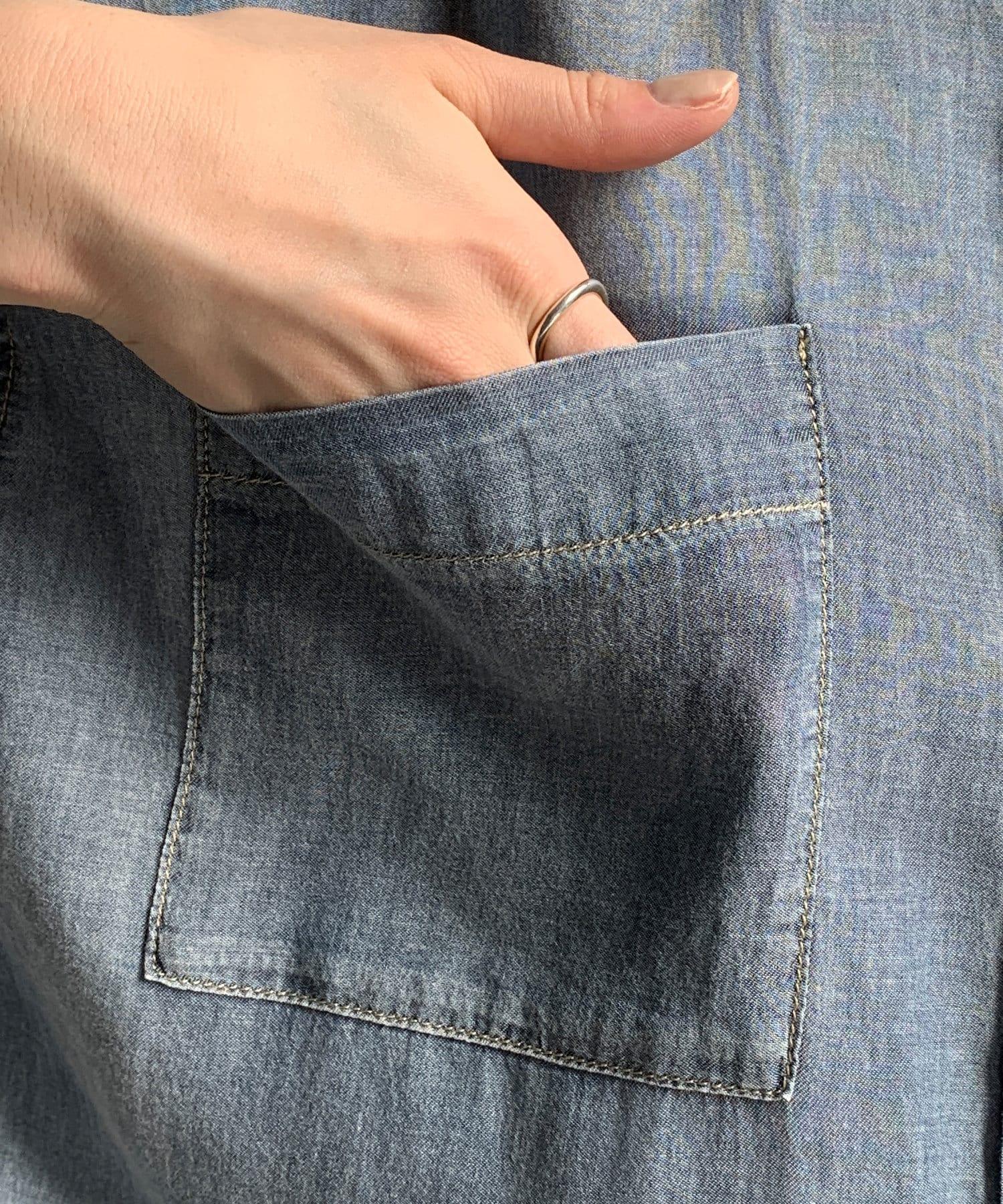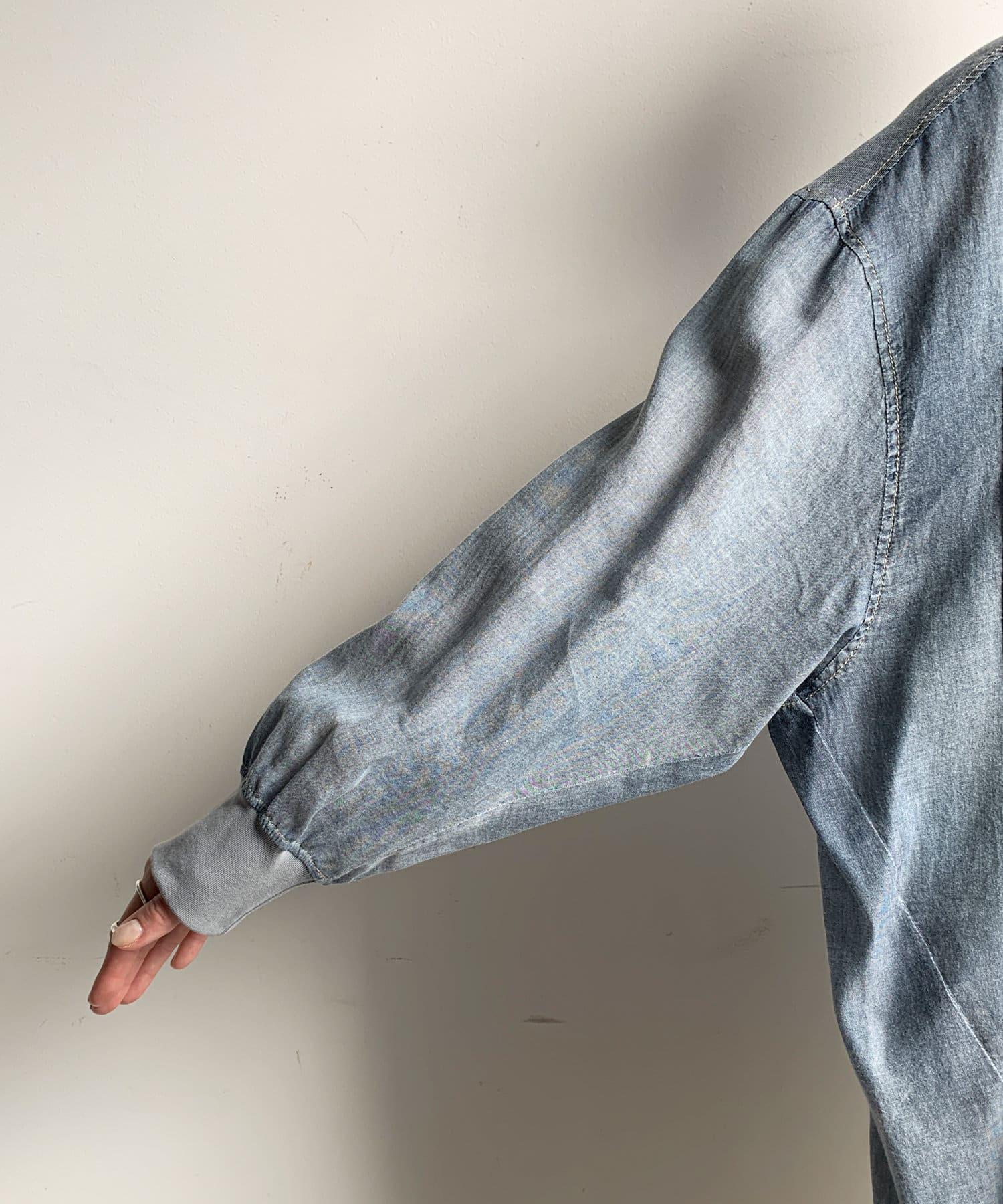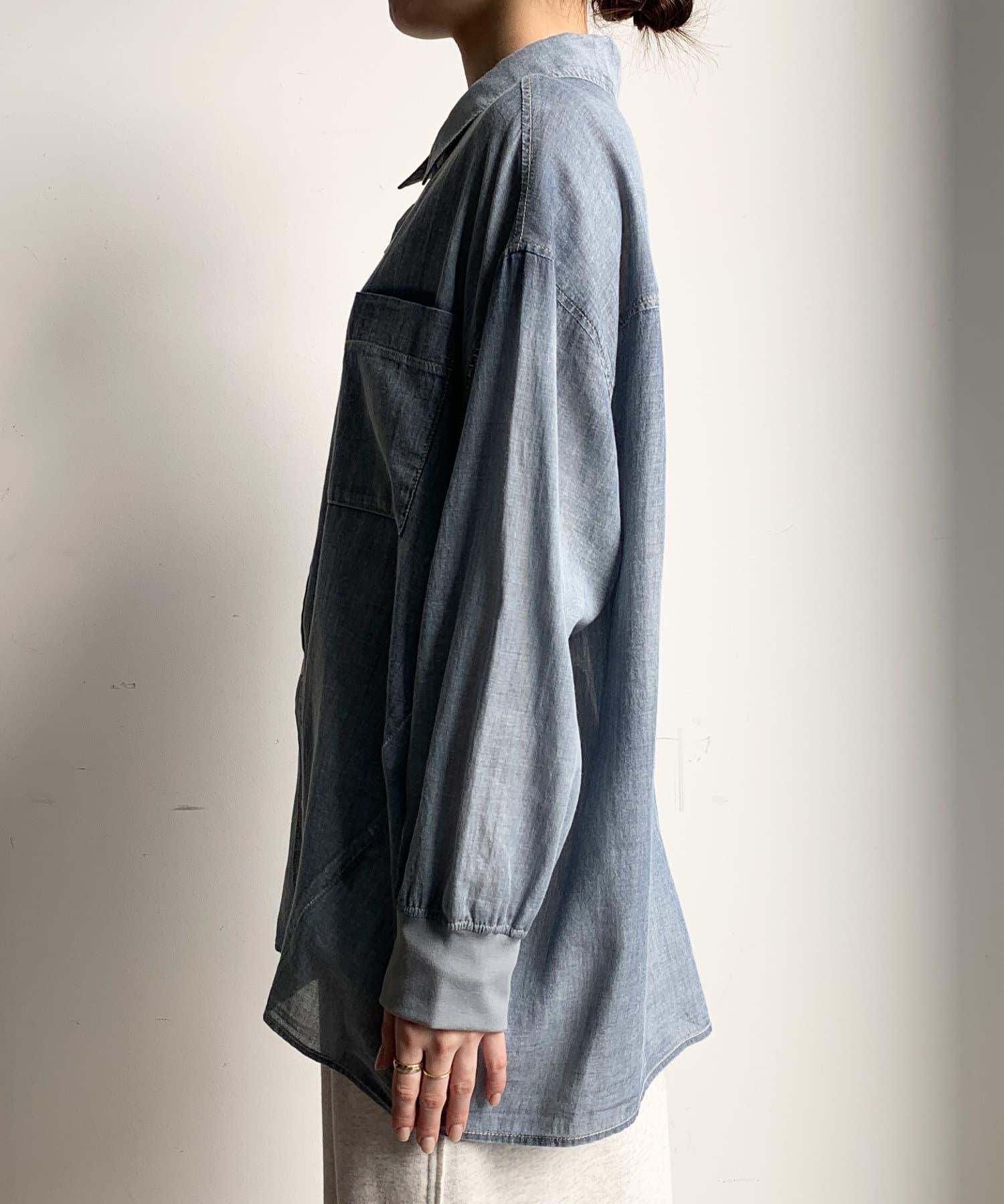牛仔襯衫採用透視牛仔布料,給人耳目一新的感覺。