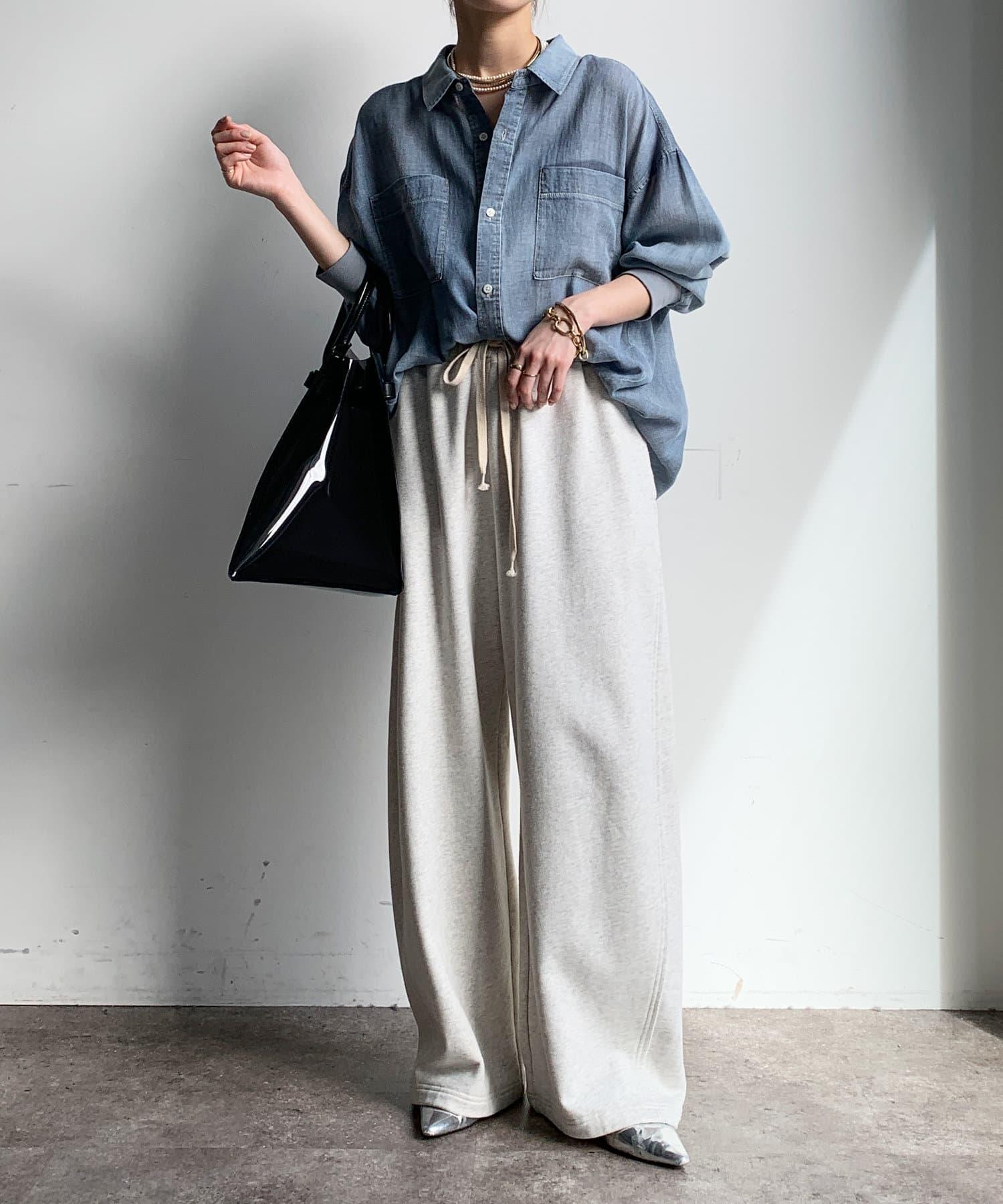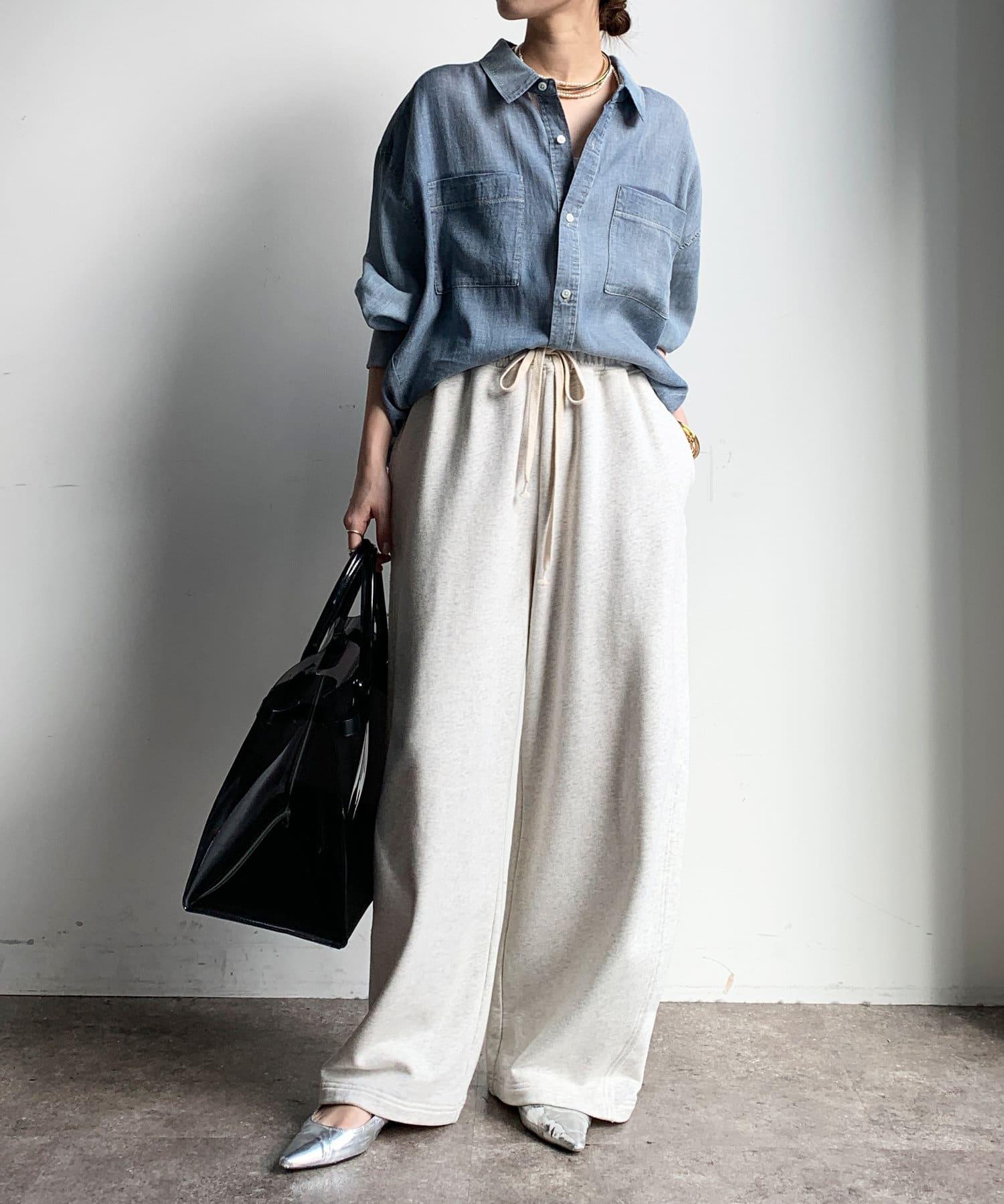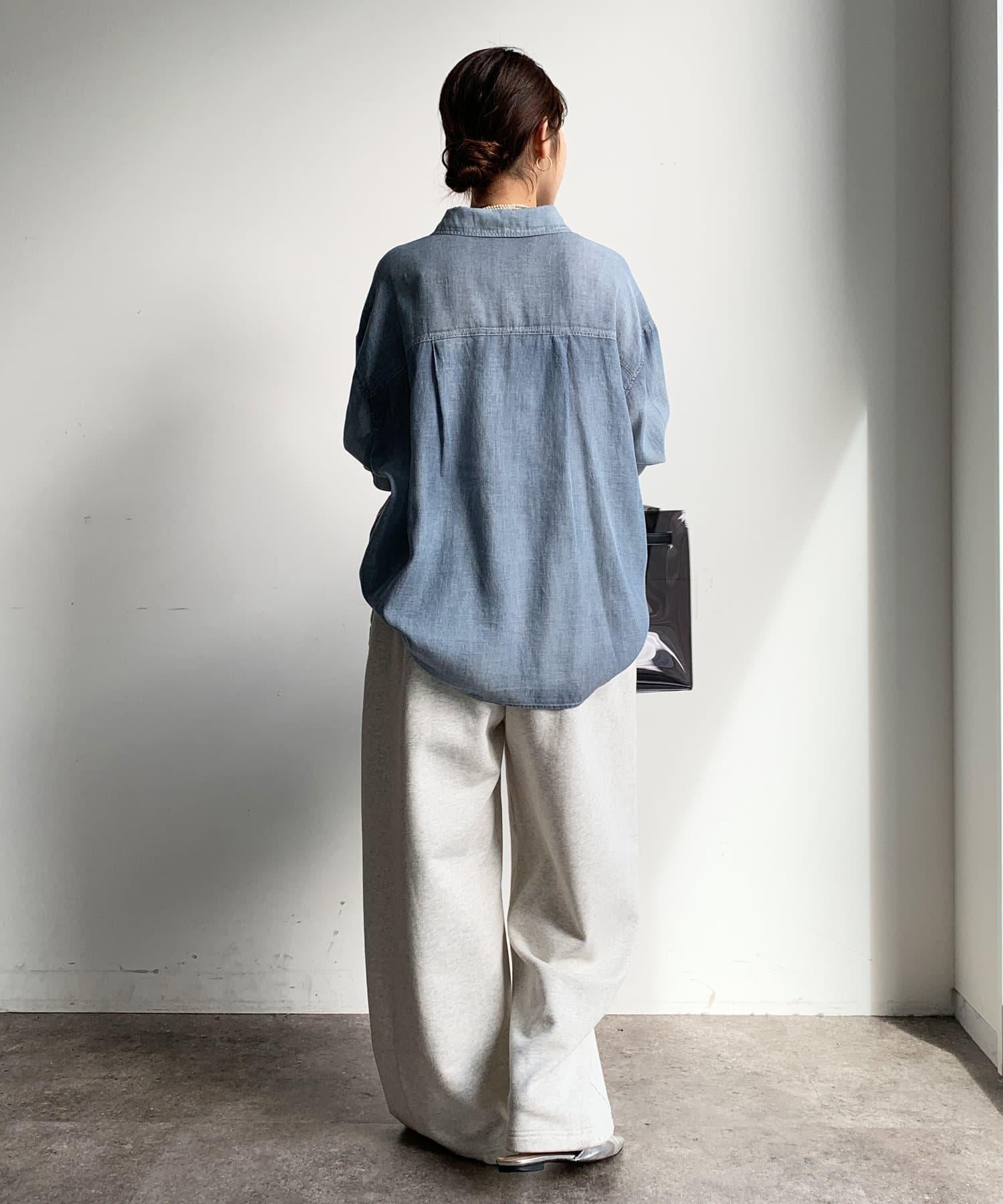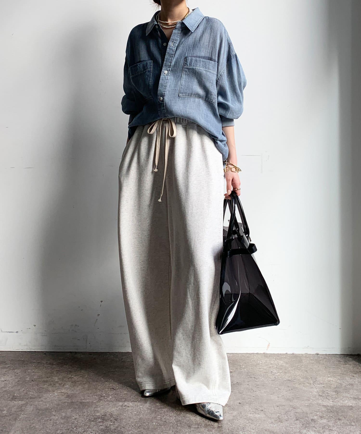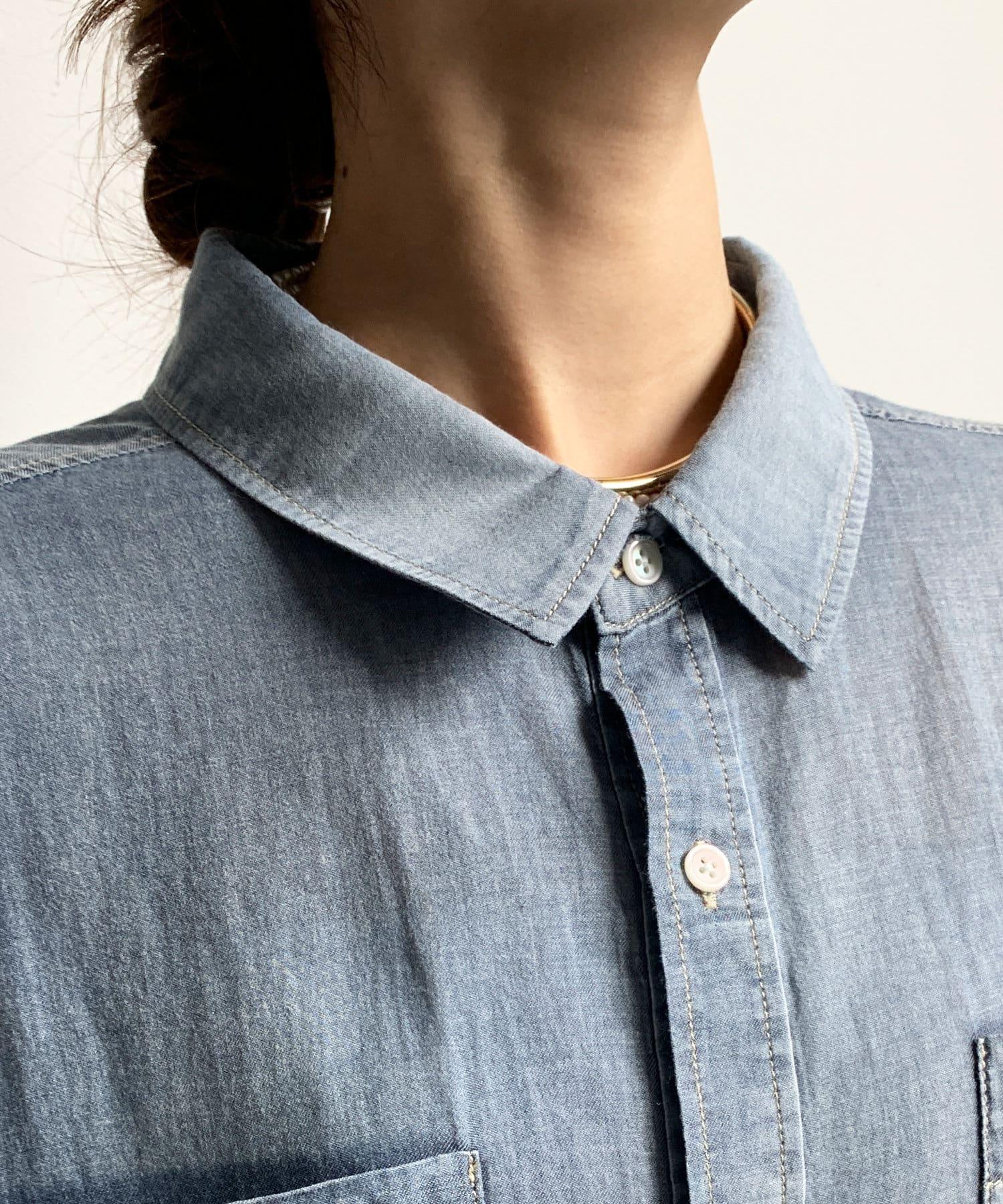 牛仔襯衫採用透視牛仔布料,給人耳目一新的感覺。